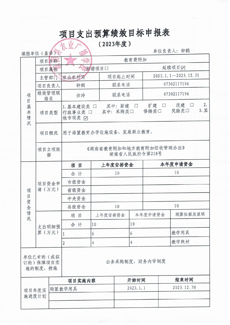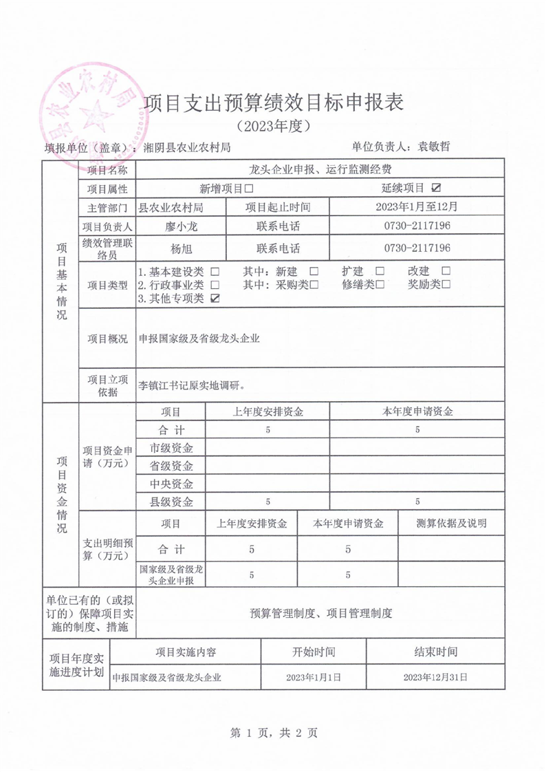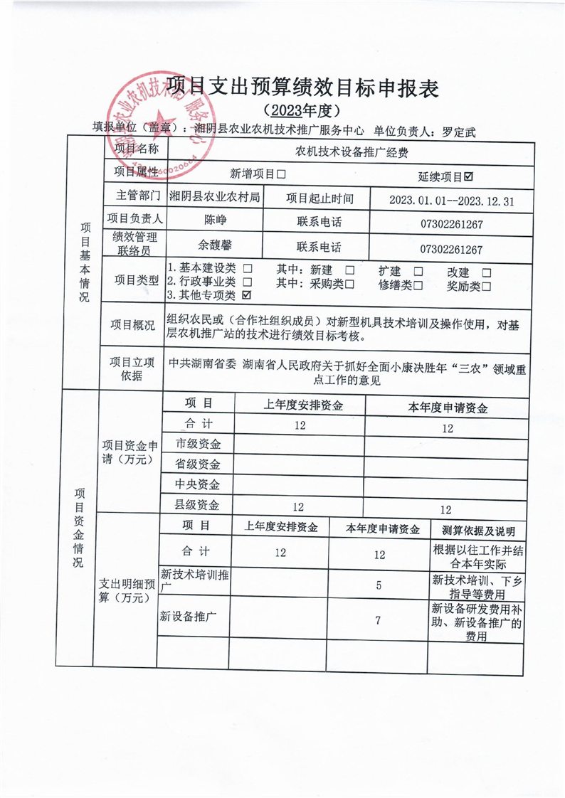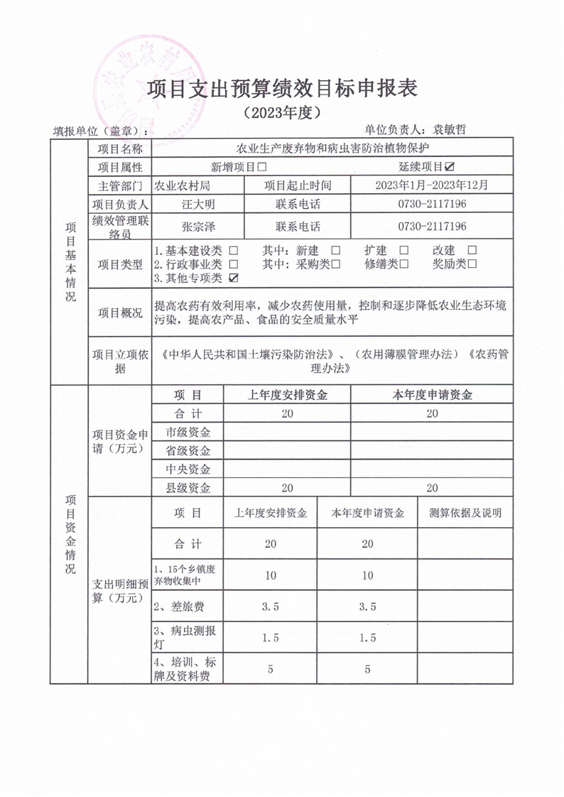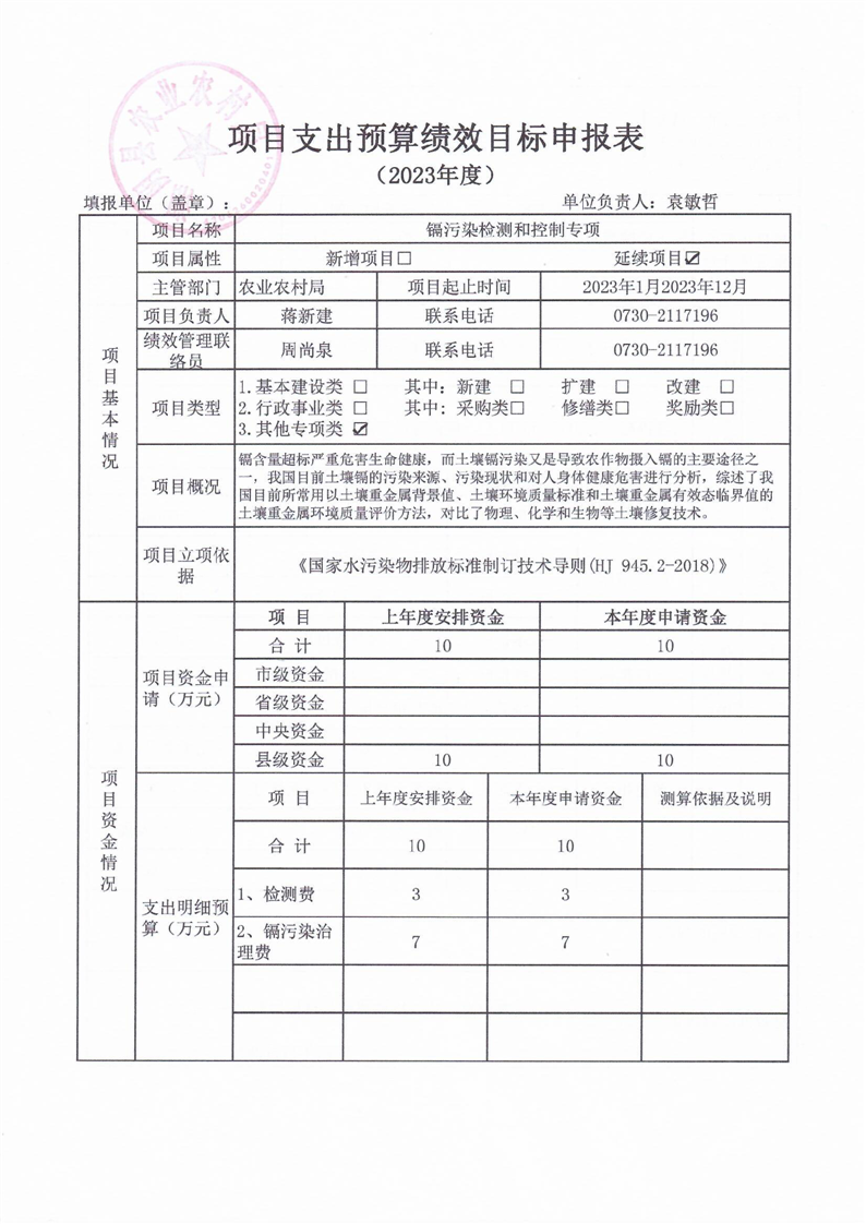 2023年度湘阴县农业农村局预算绩效目标信息公开