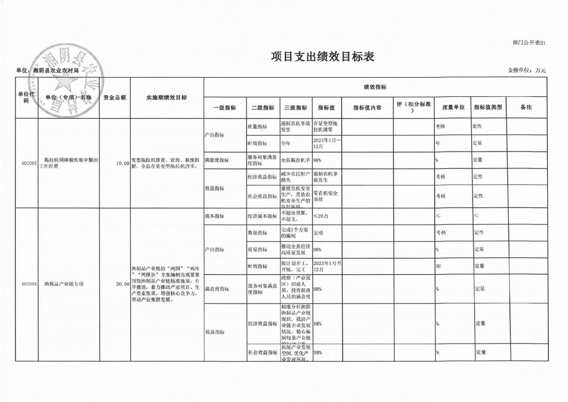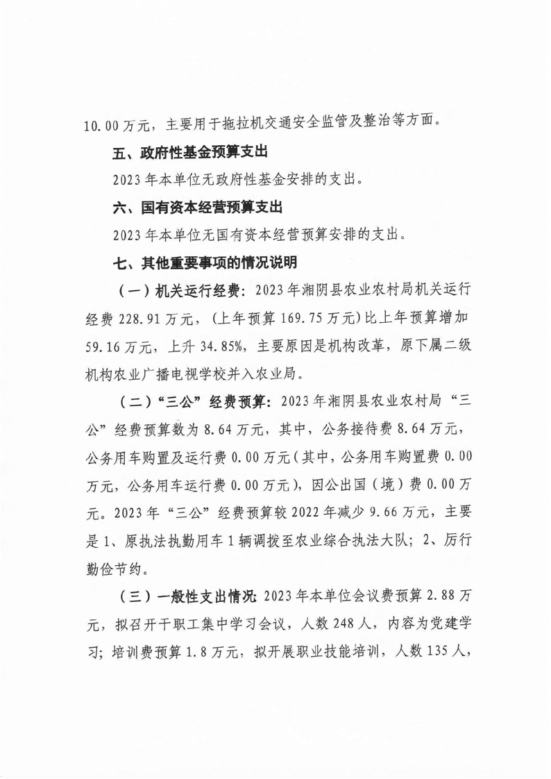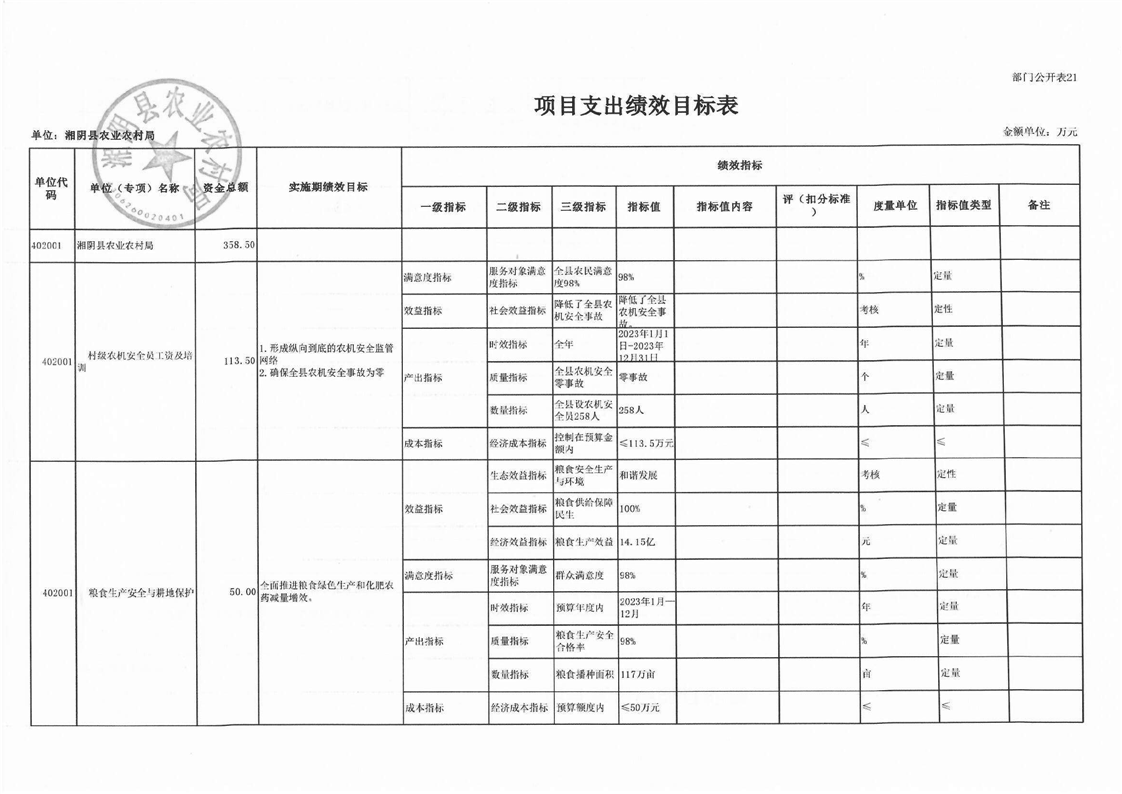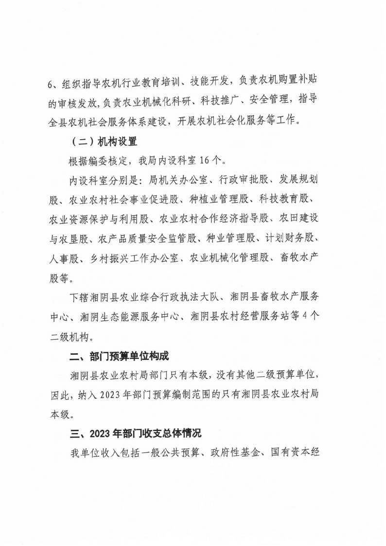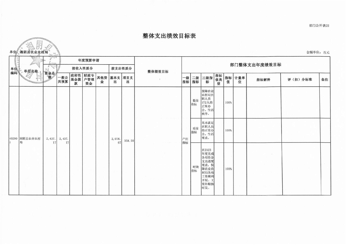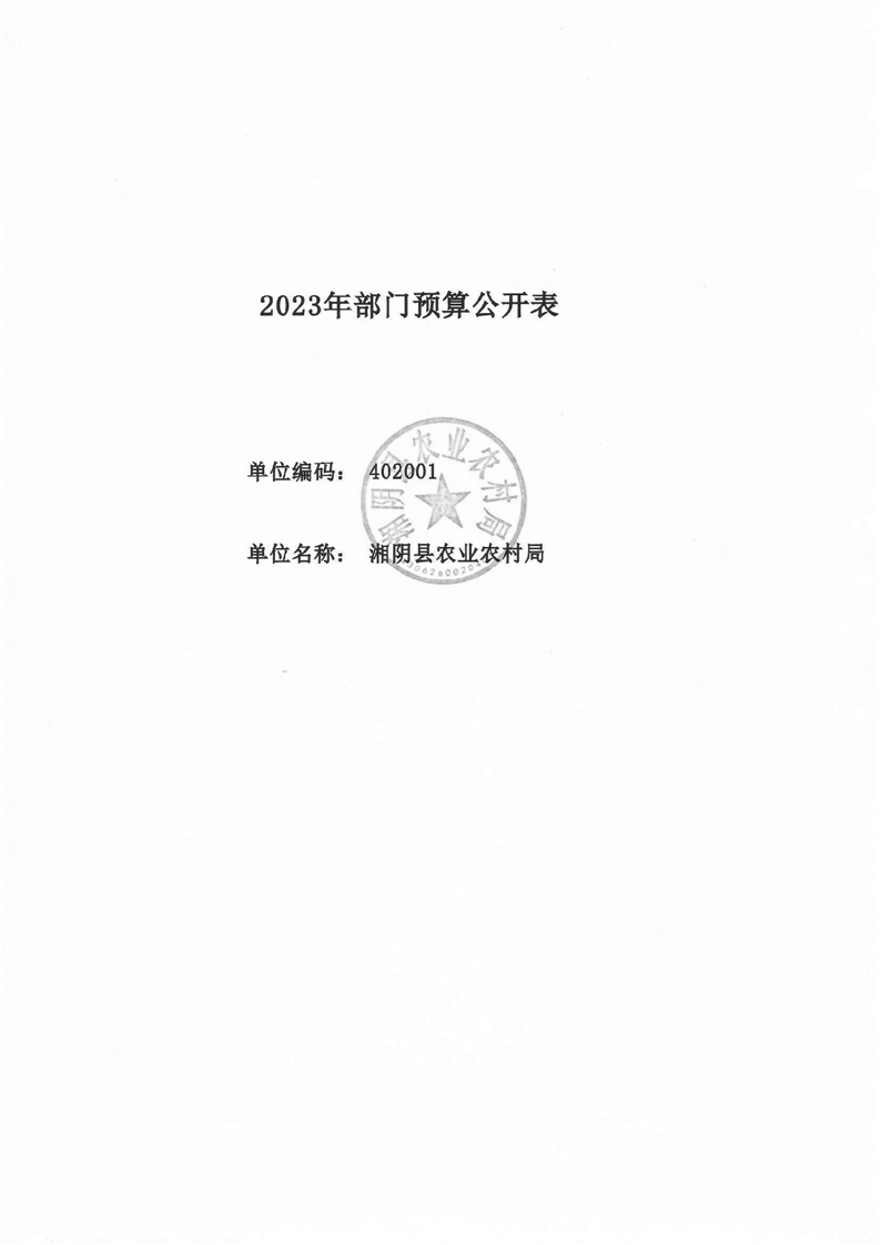 湘阴县农业农村局-2023年度-部门预算公开