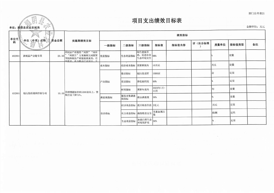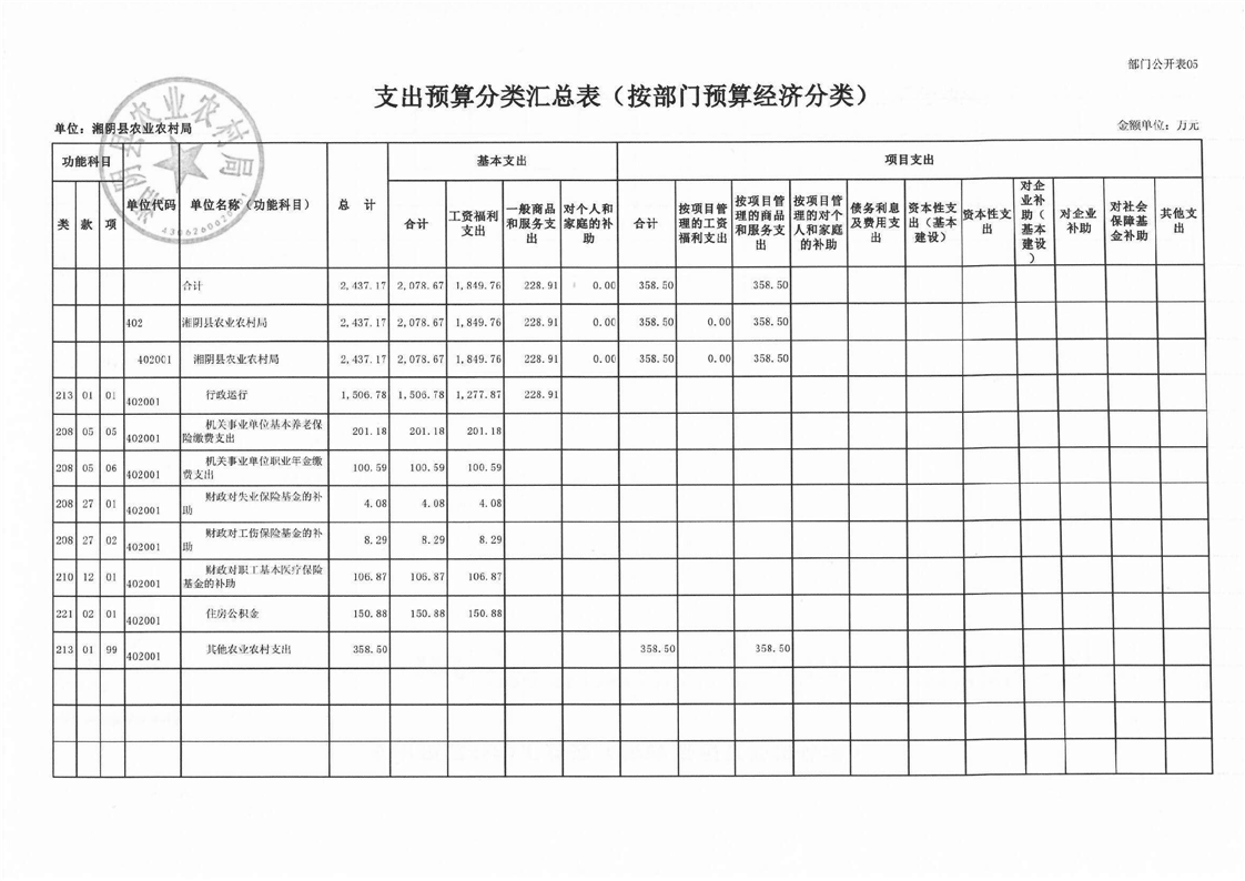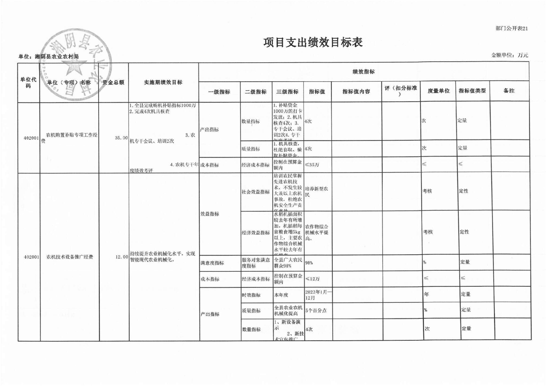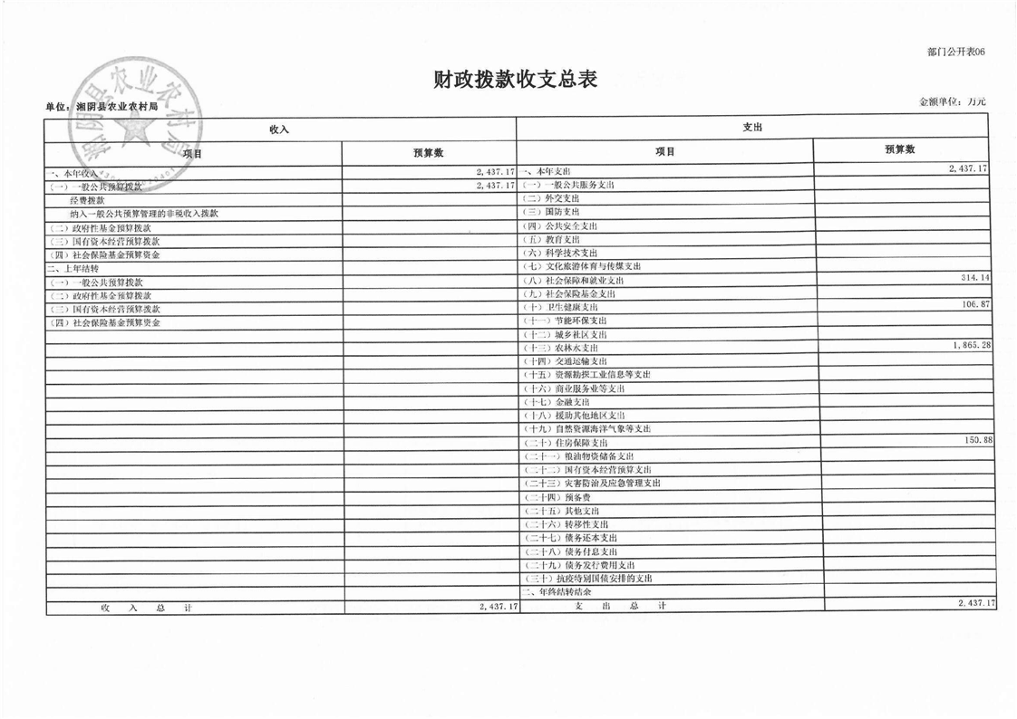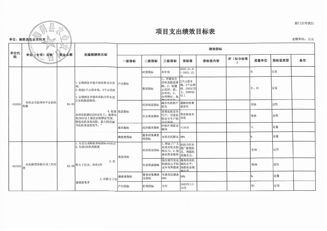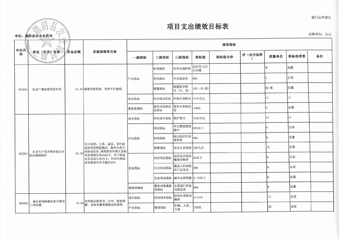湘阴县农业农村局-2023年度-部门预算公开