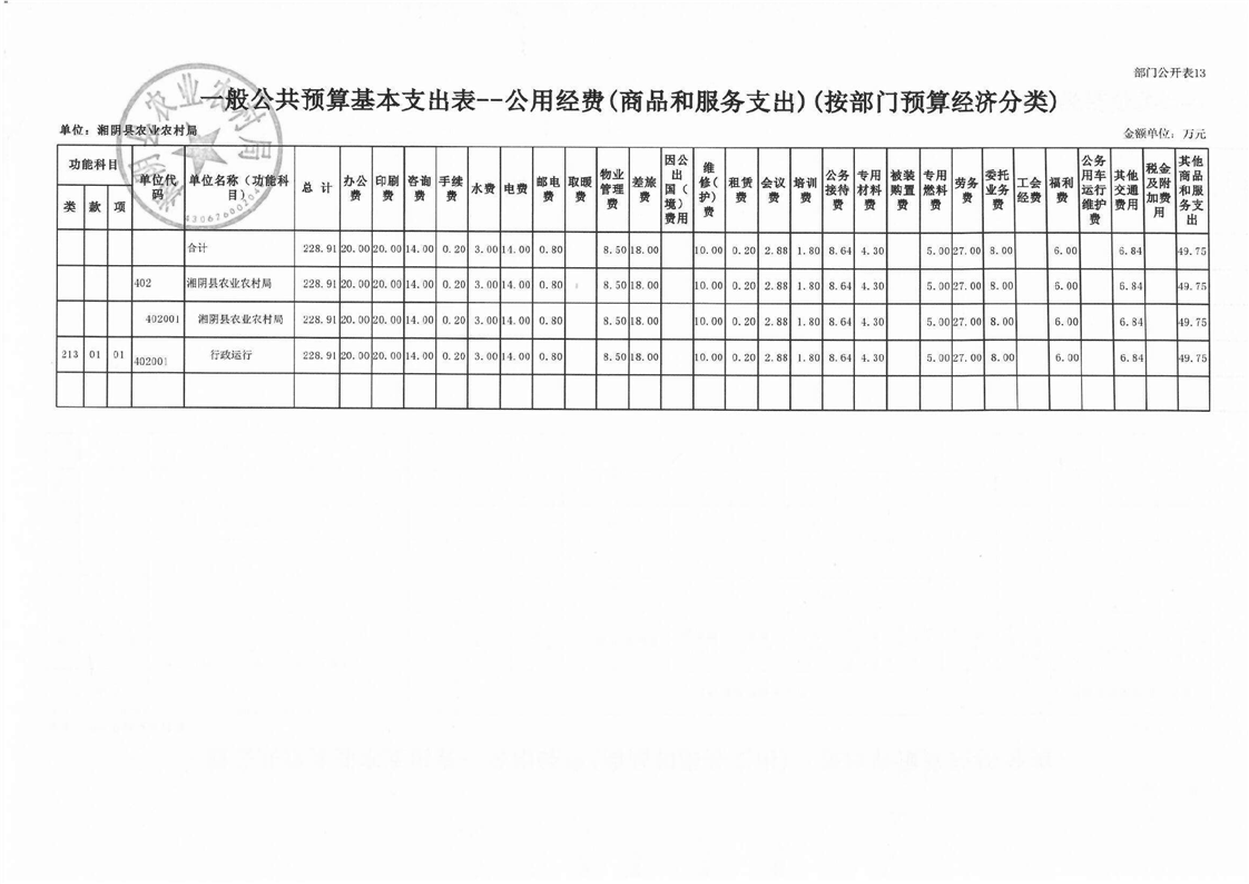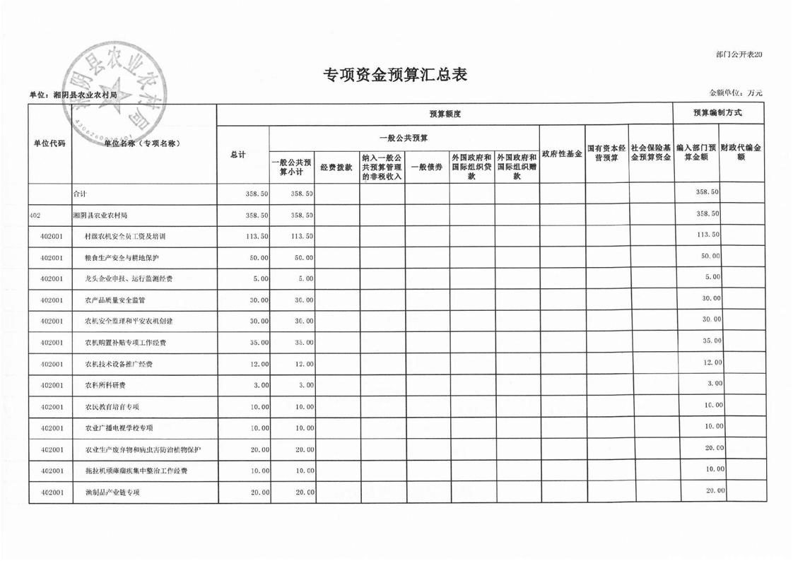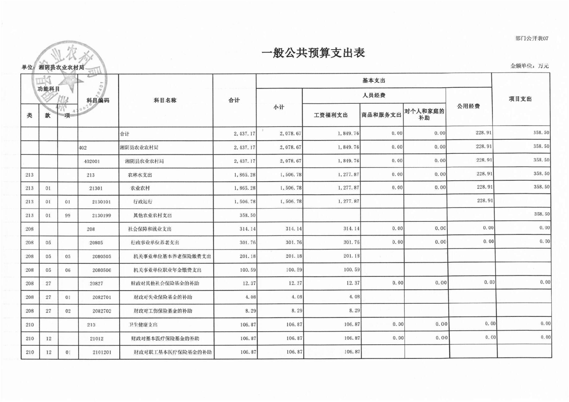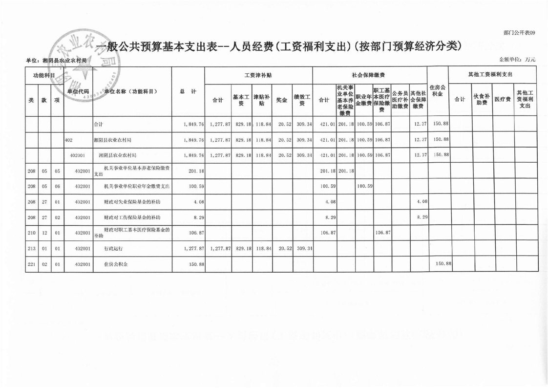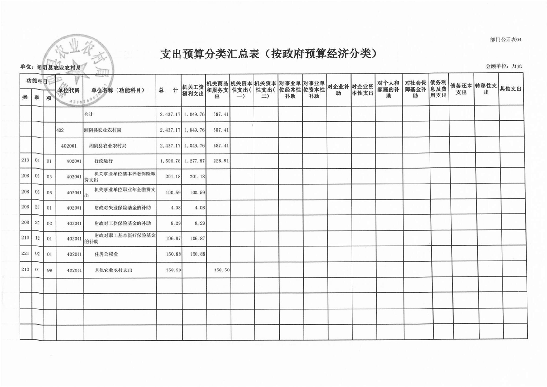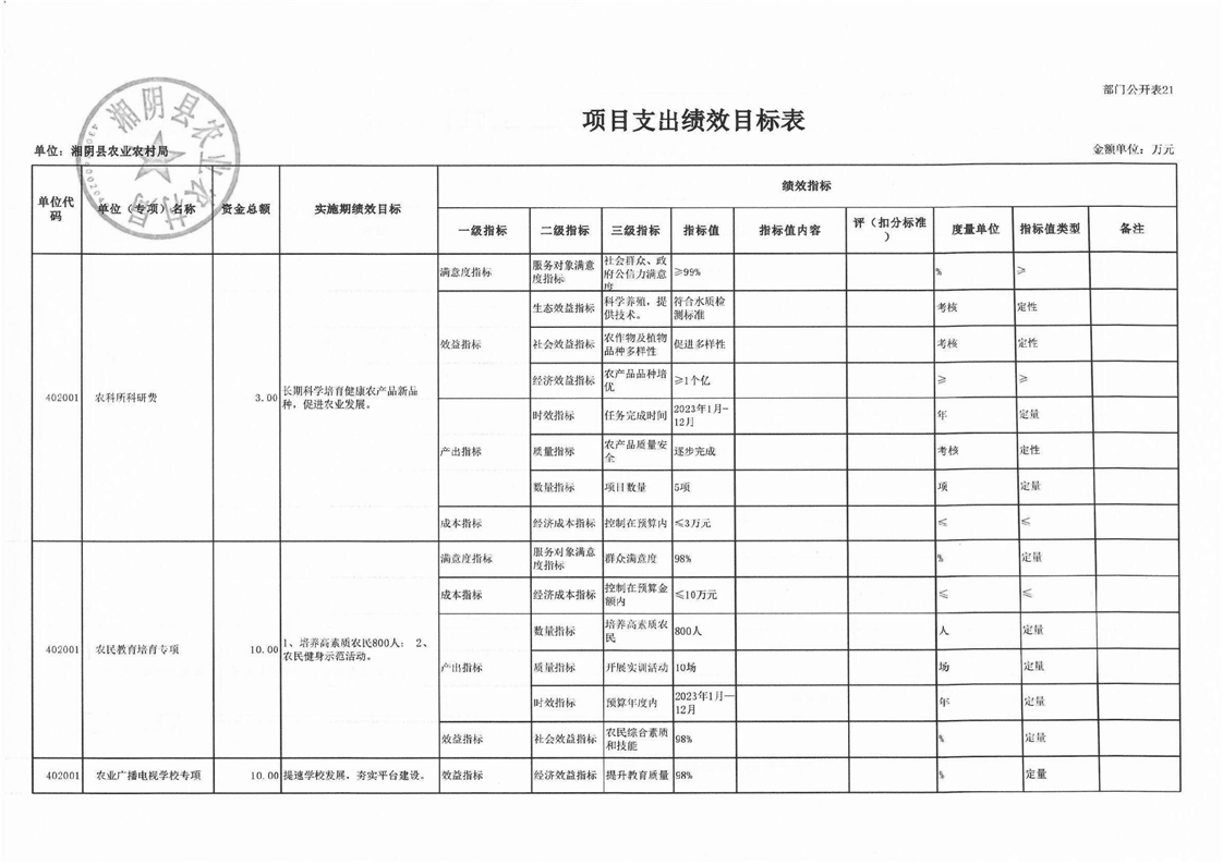 湘阴县农业农村局-2023年度-部门预算公开