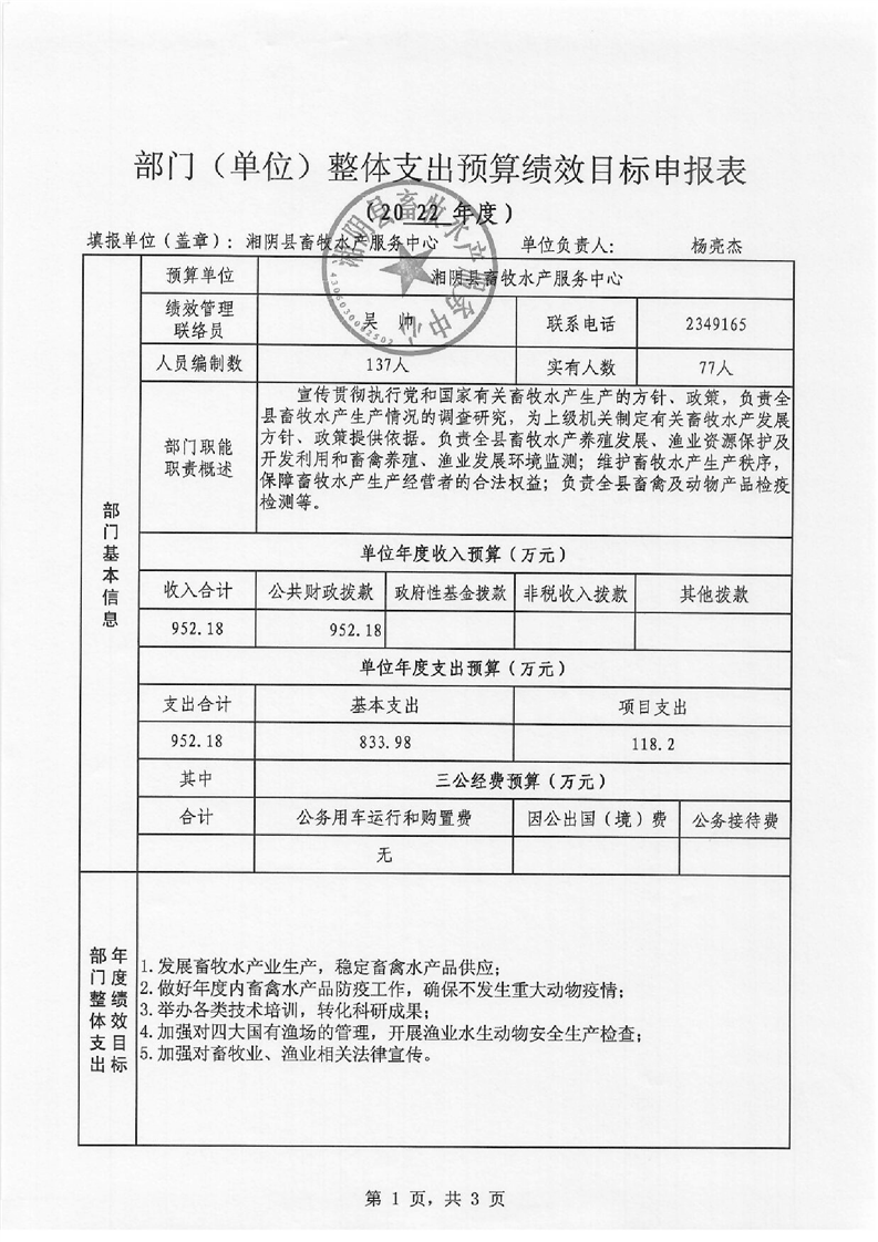 湘阴县畜牧水产服务中心2022年部门预算公开
