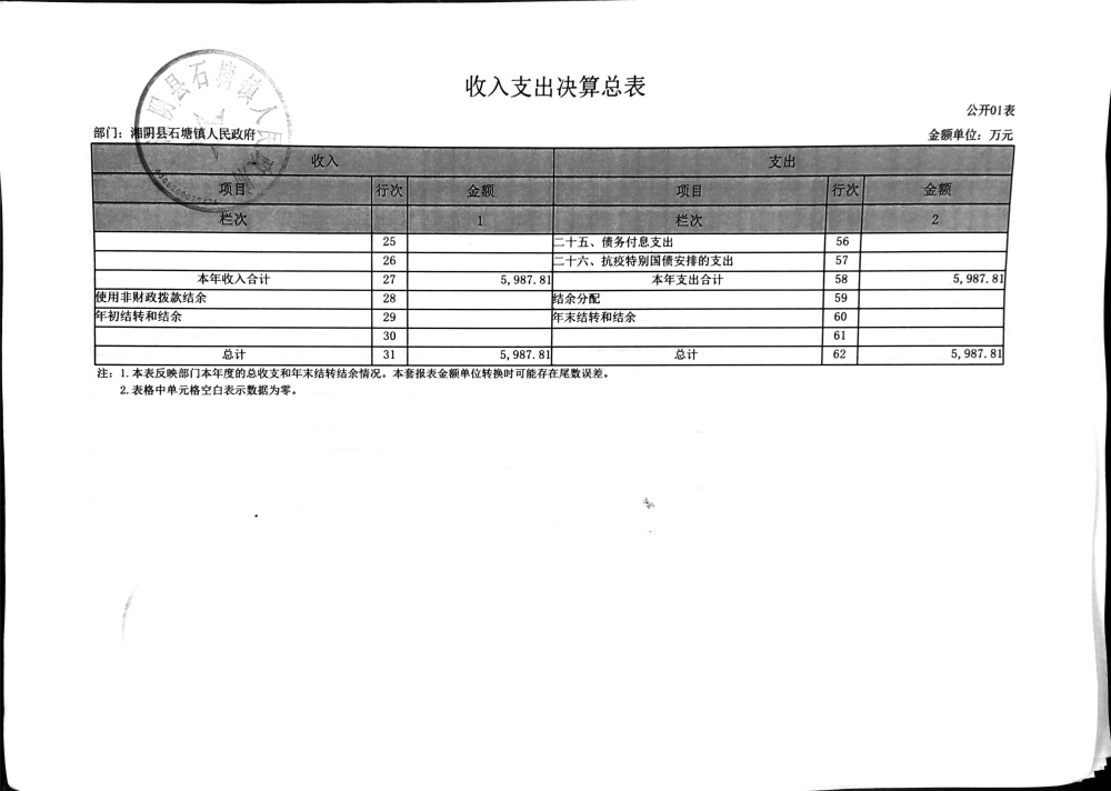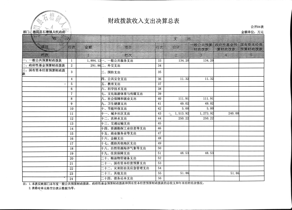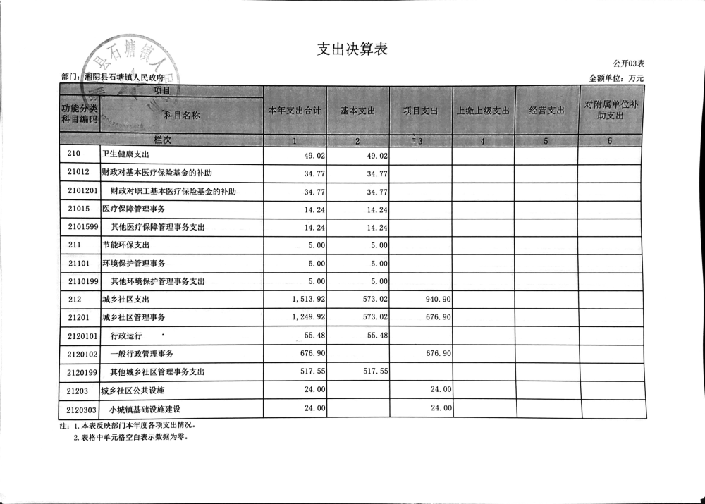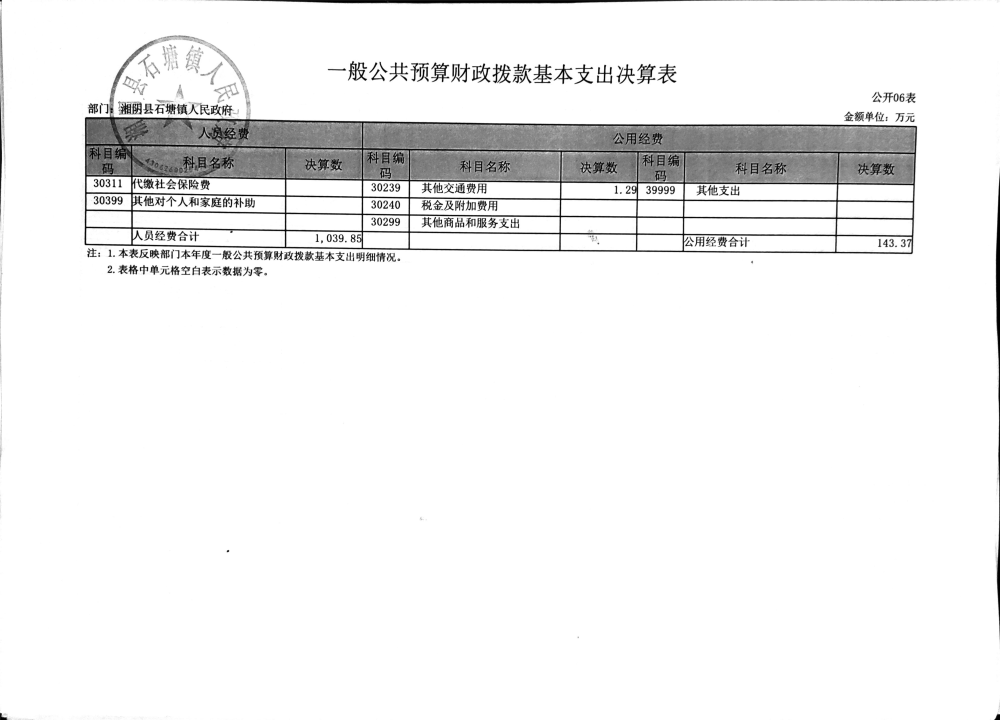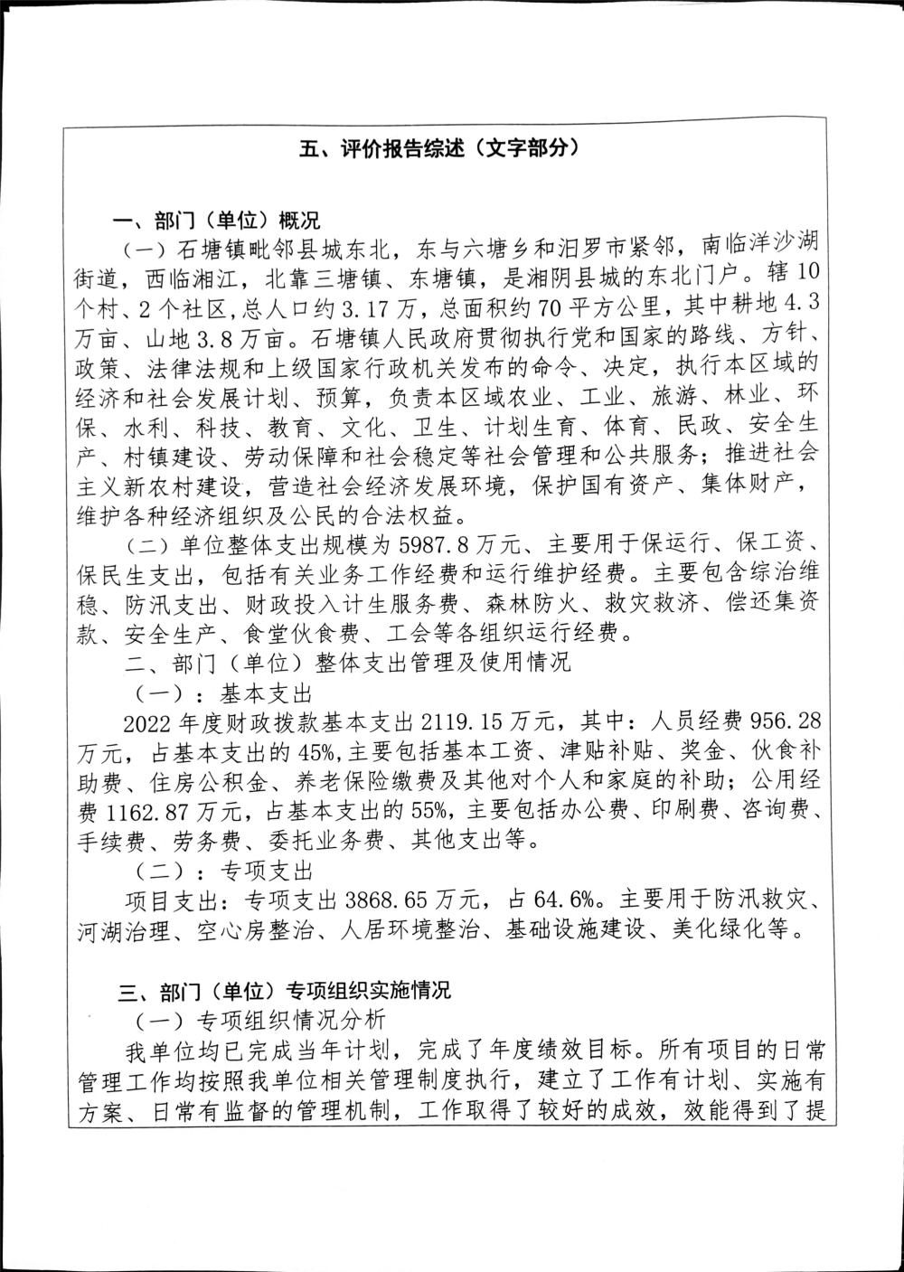湘阴县石塘镇人民政府-2022年度-部门决算