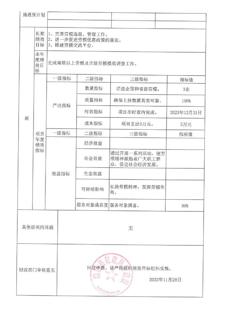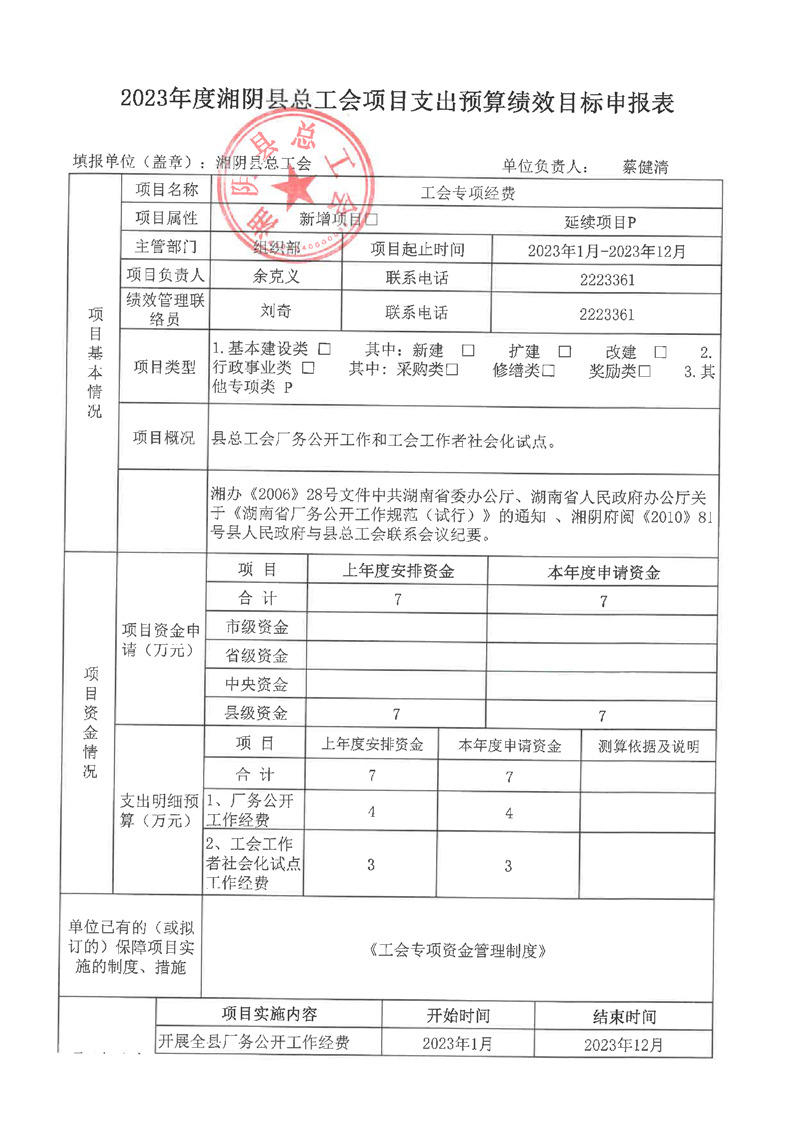 2023年度湘阴县总工会项目支出预算绩效目标申报表