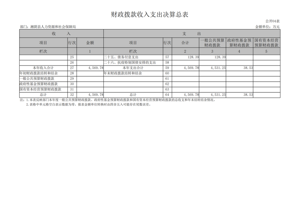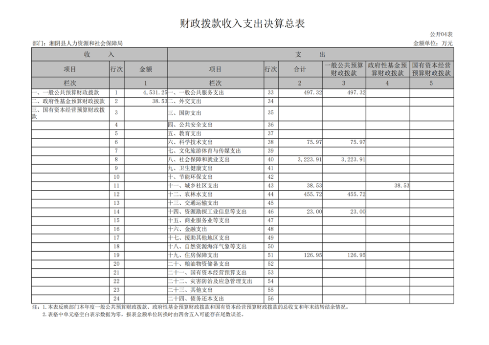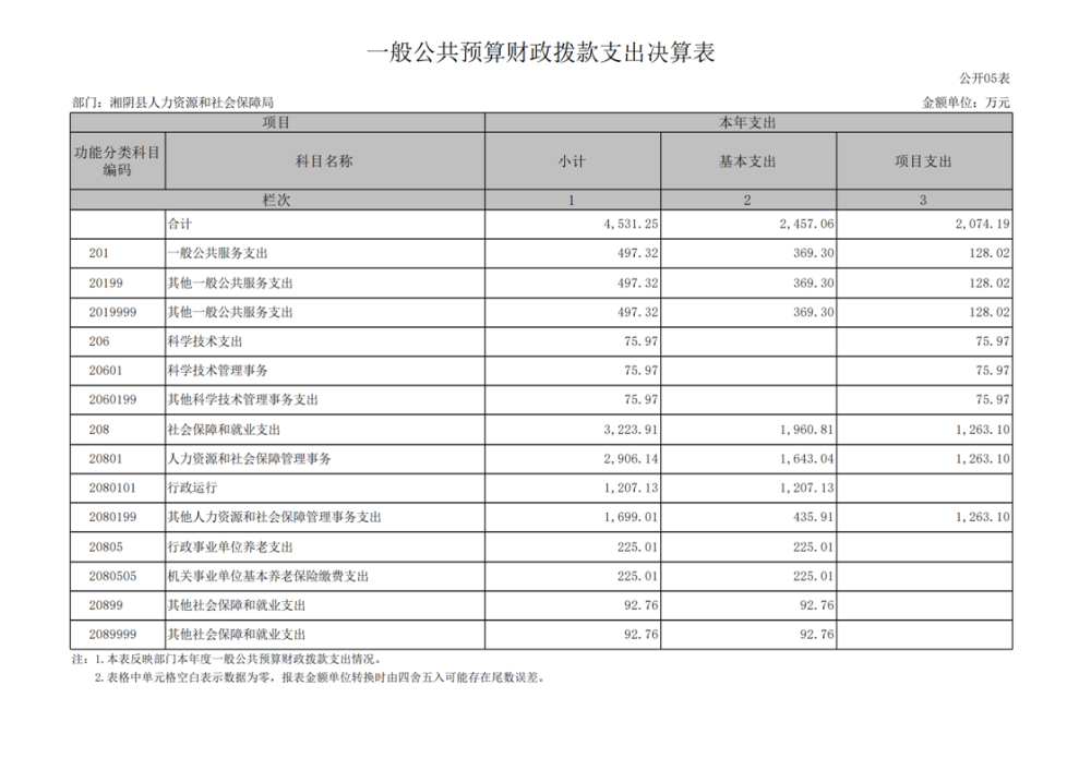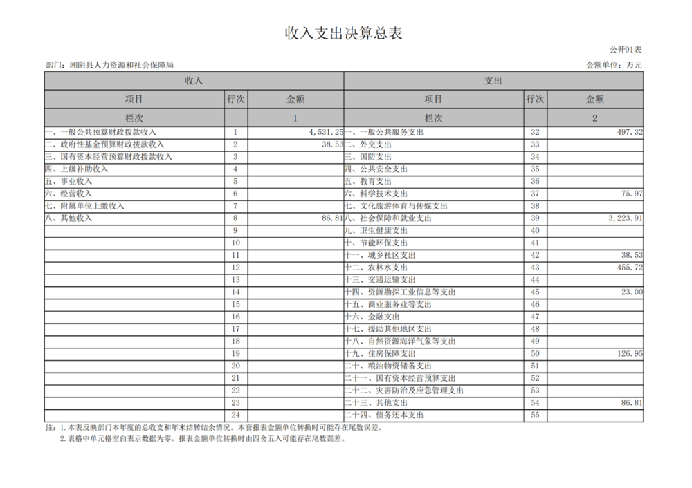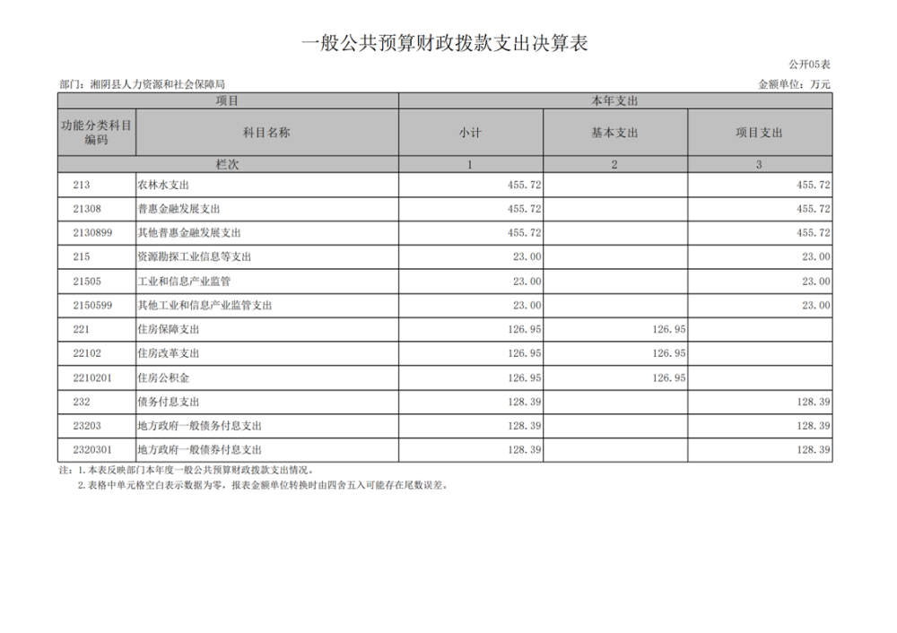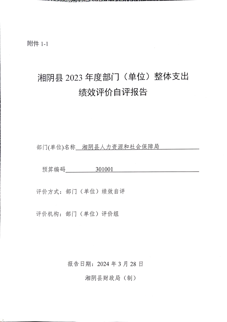 2023年-湘阴县人力资源和社会保障局-部门决算公开