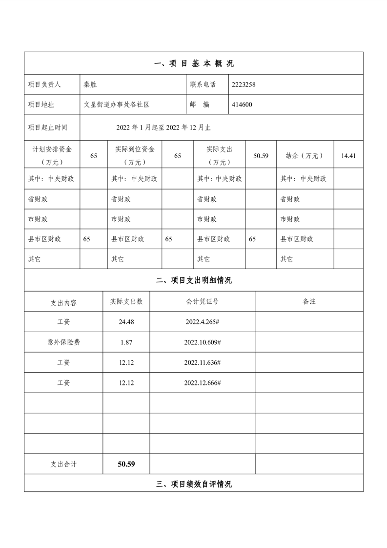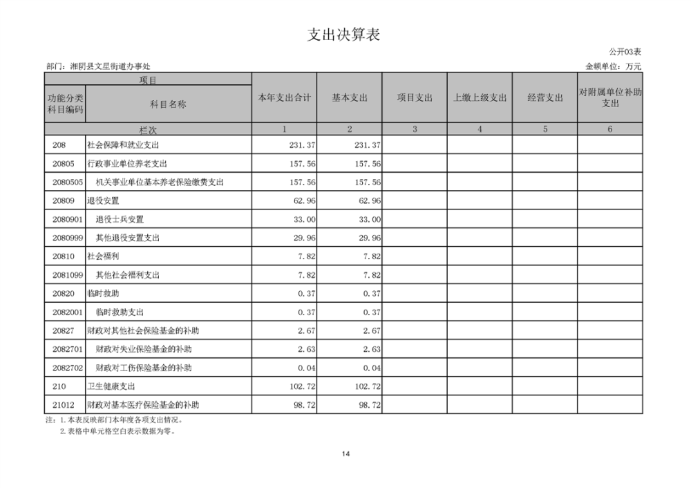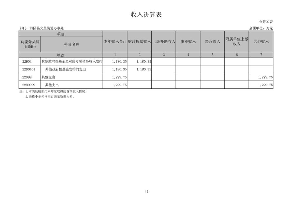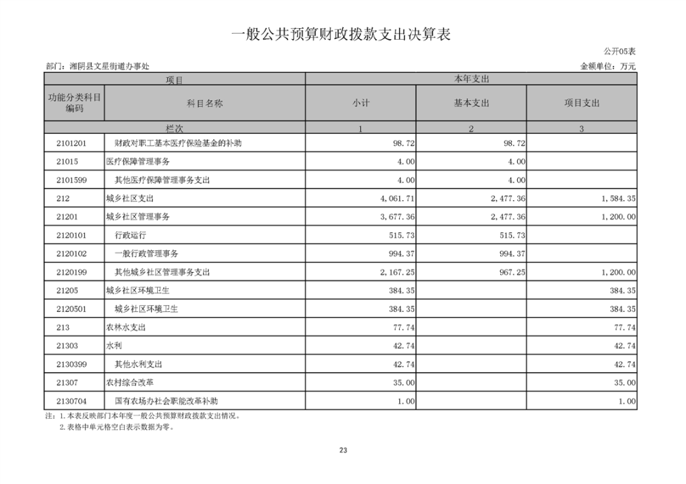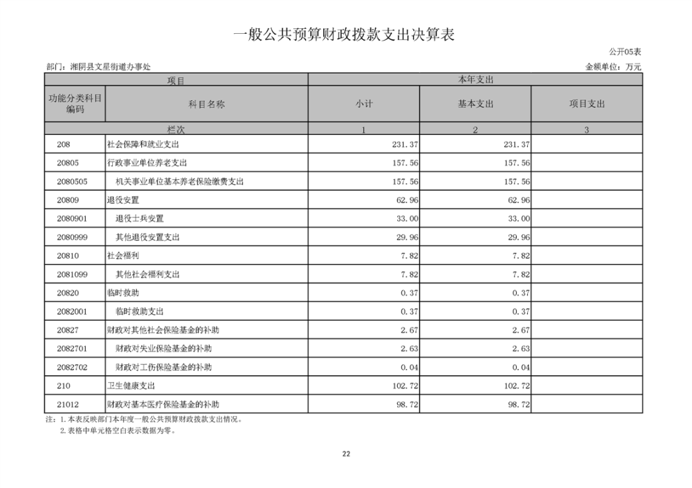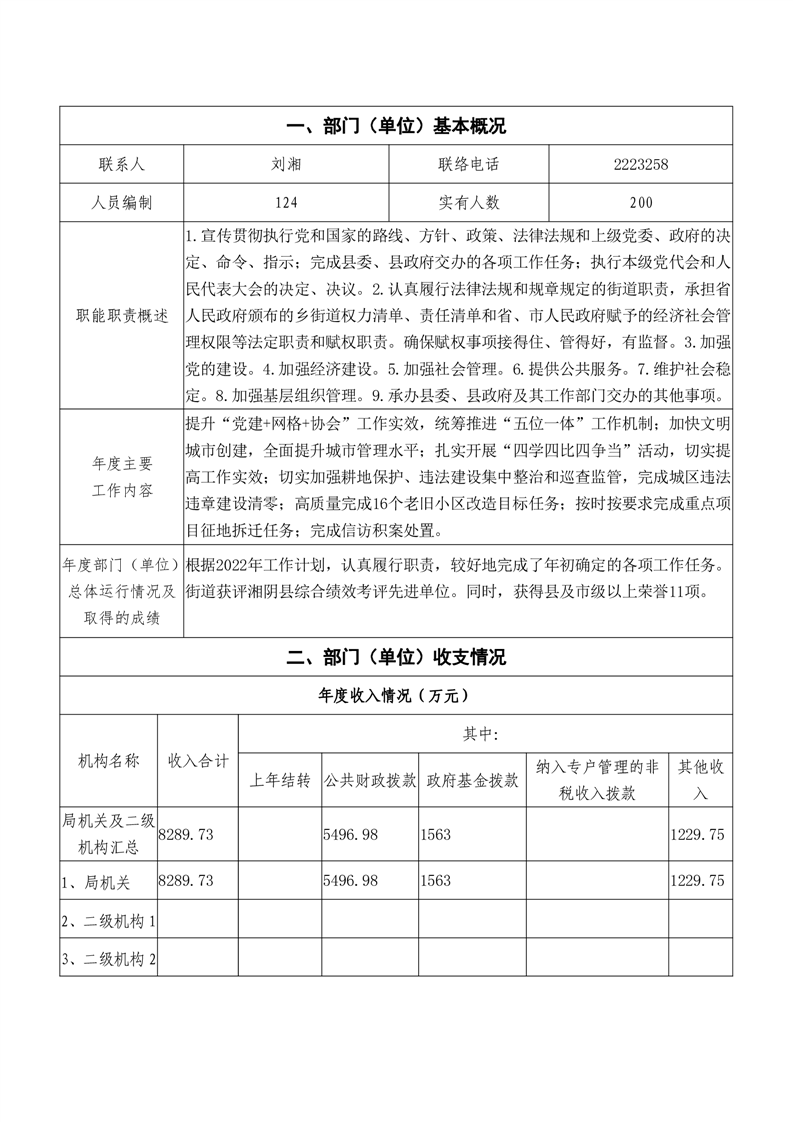 湘阴县文星街道办事处-2022年度-决算公开