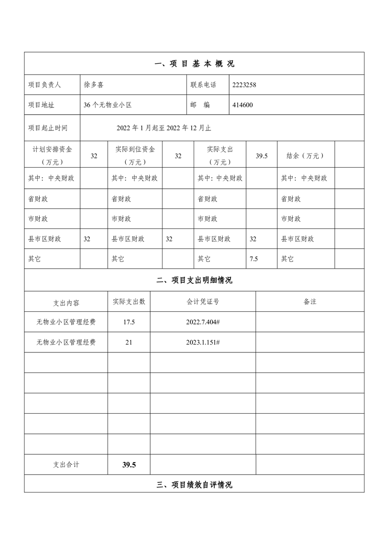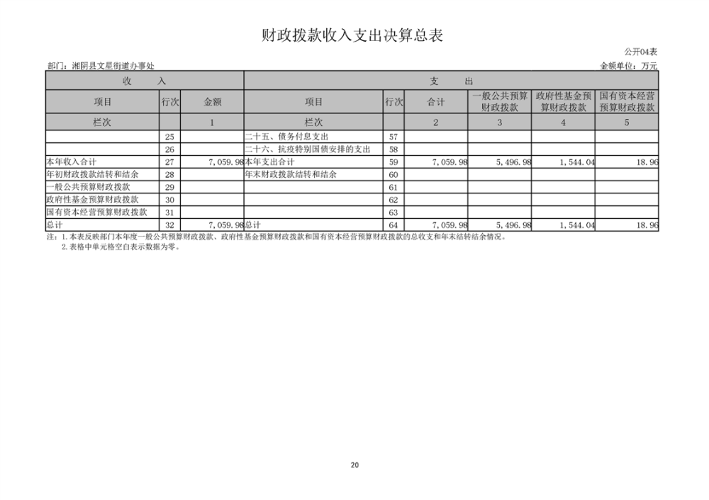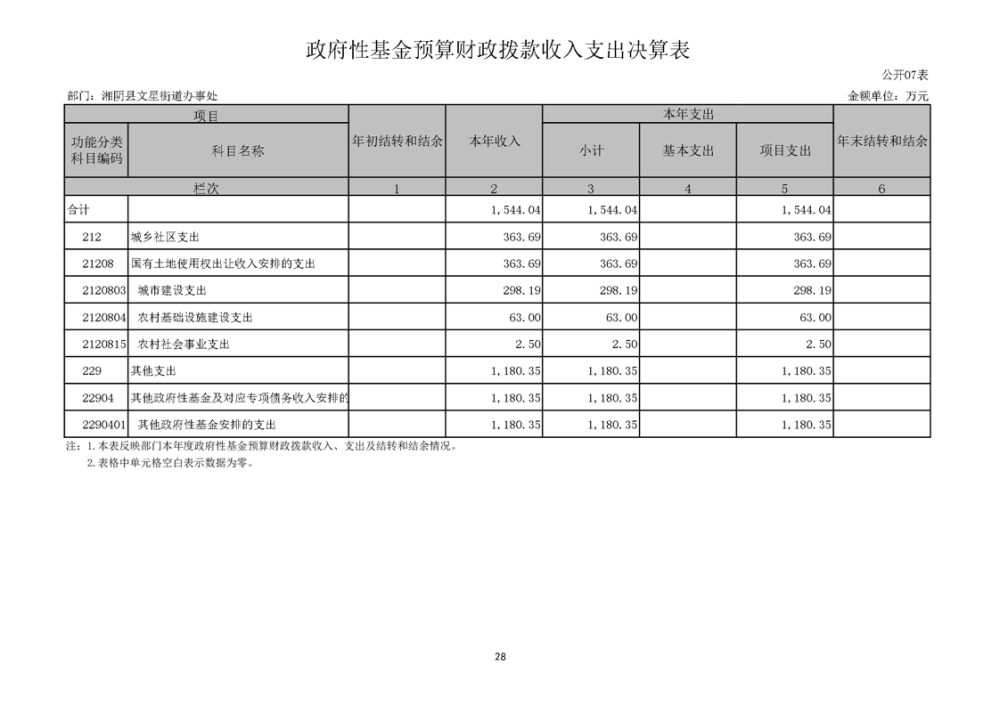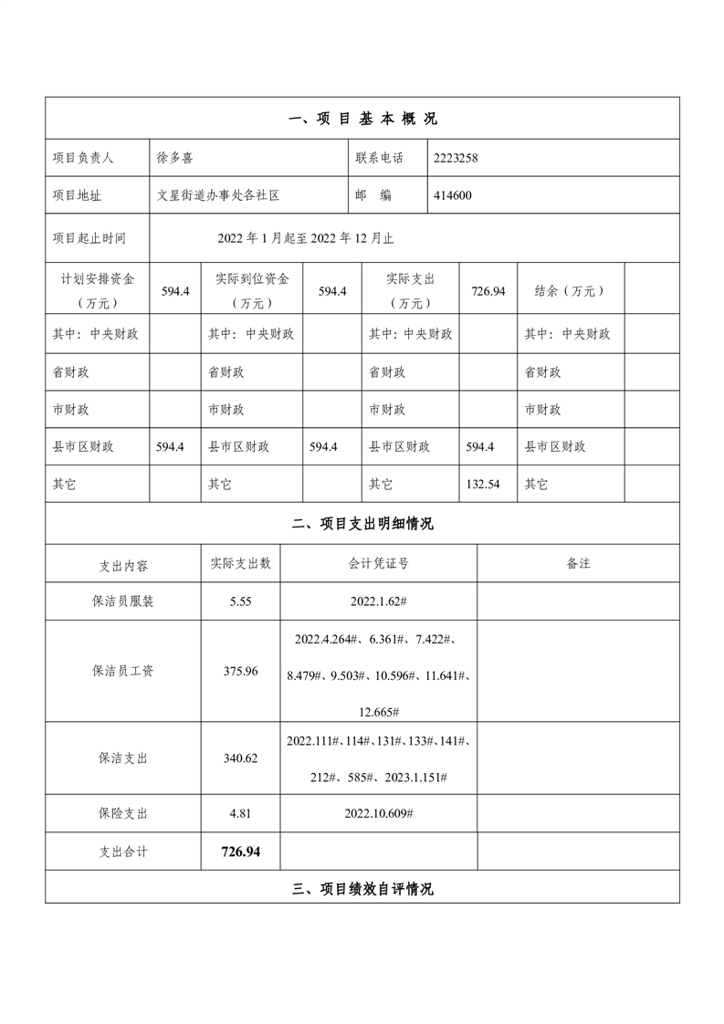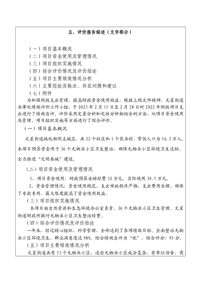 湘阴县文星街道办事处-2022年度-决算公开