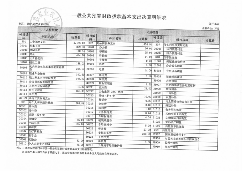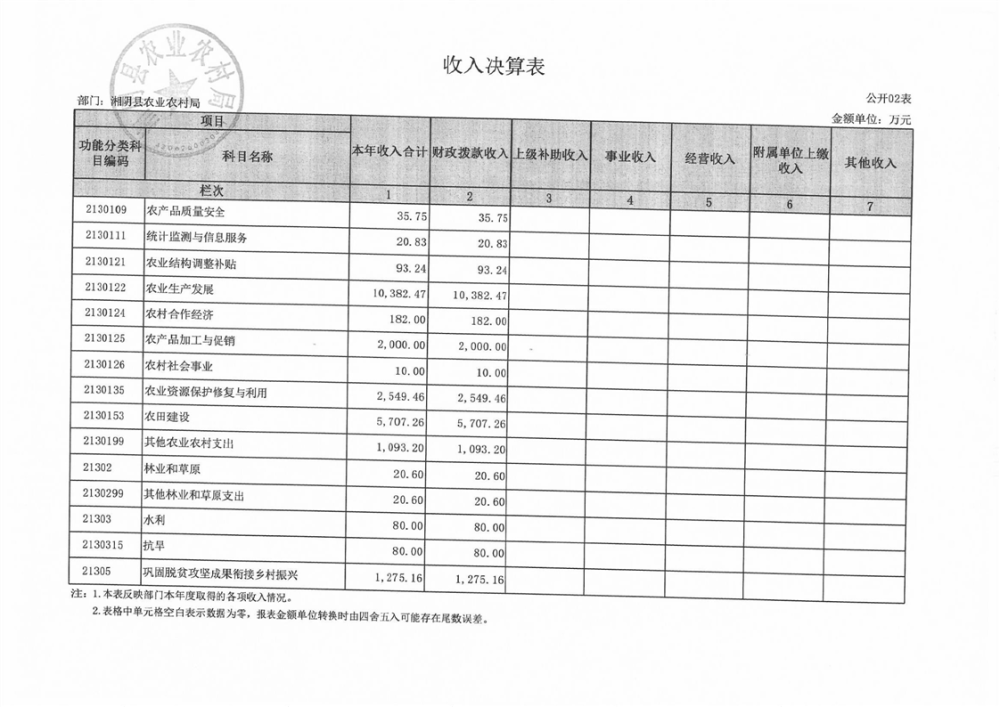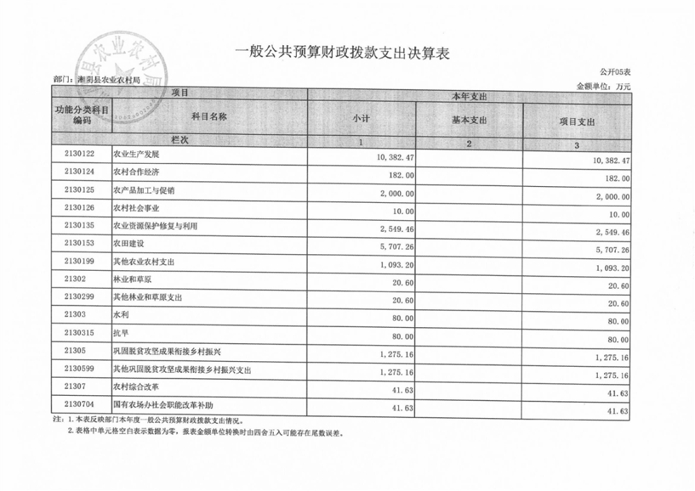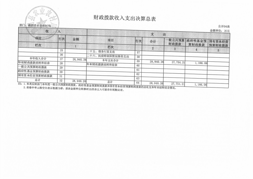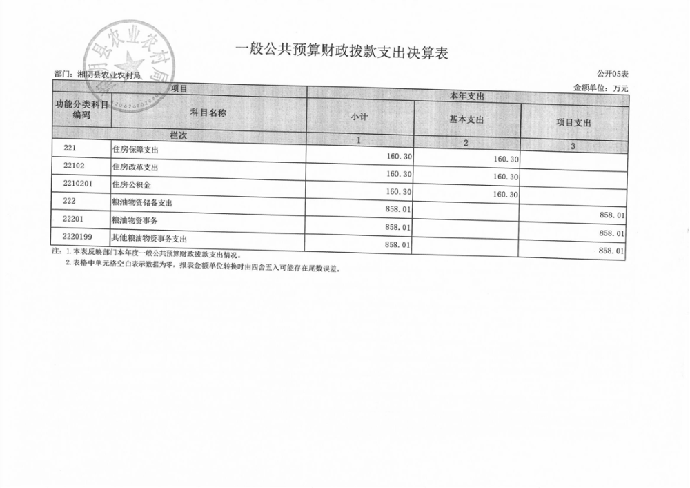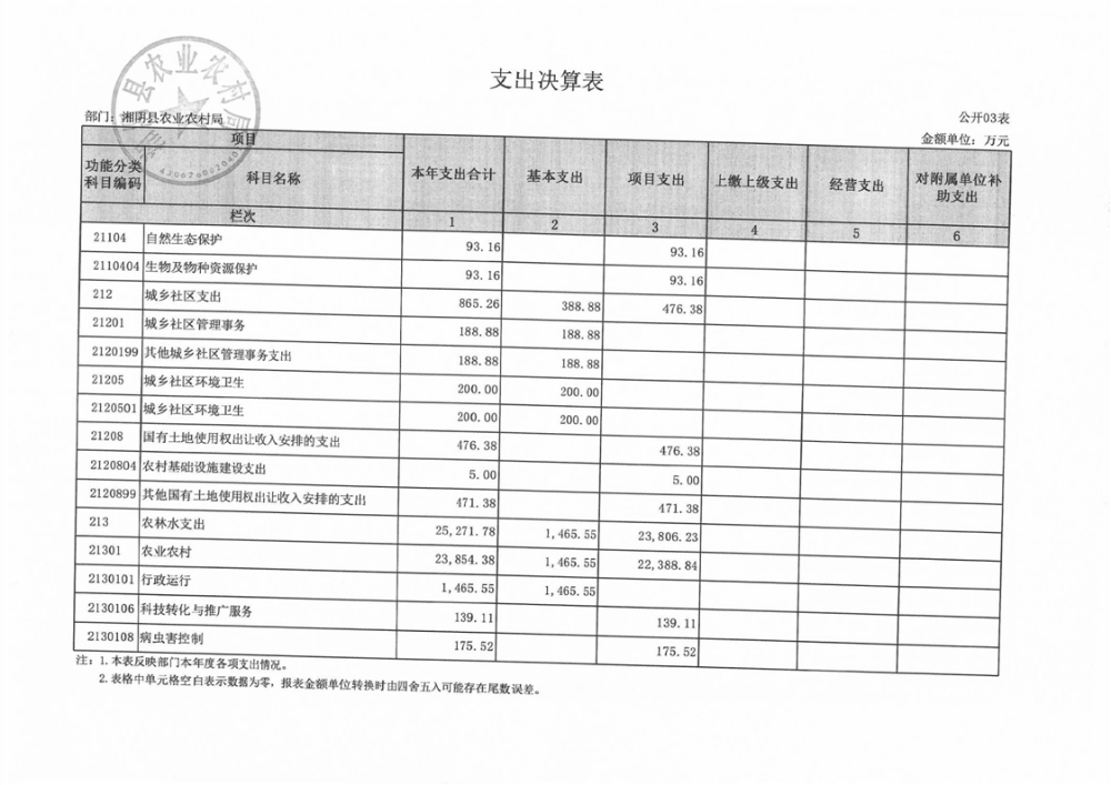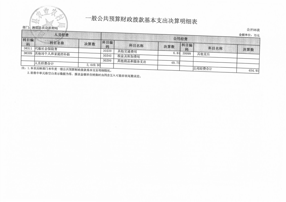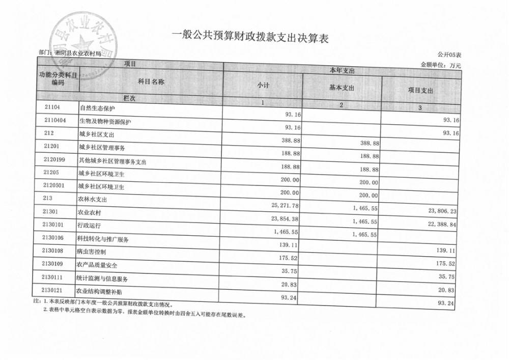 2023年-湘阴县农业农村局-部门决算