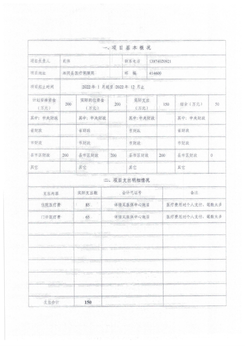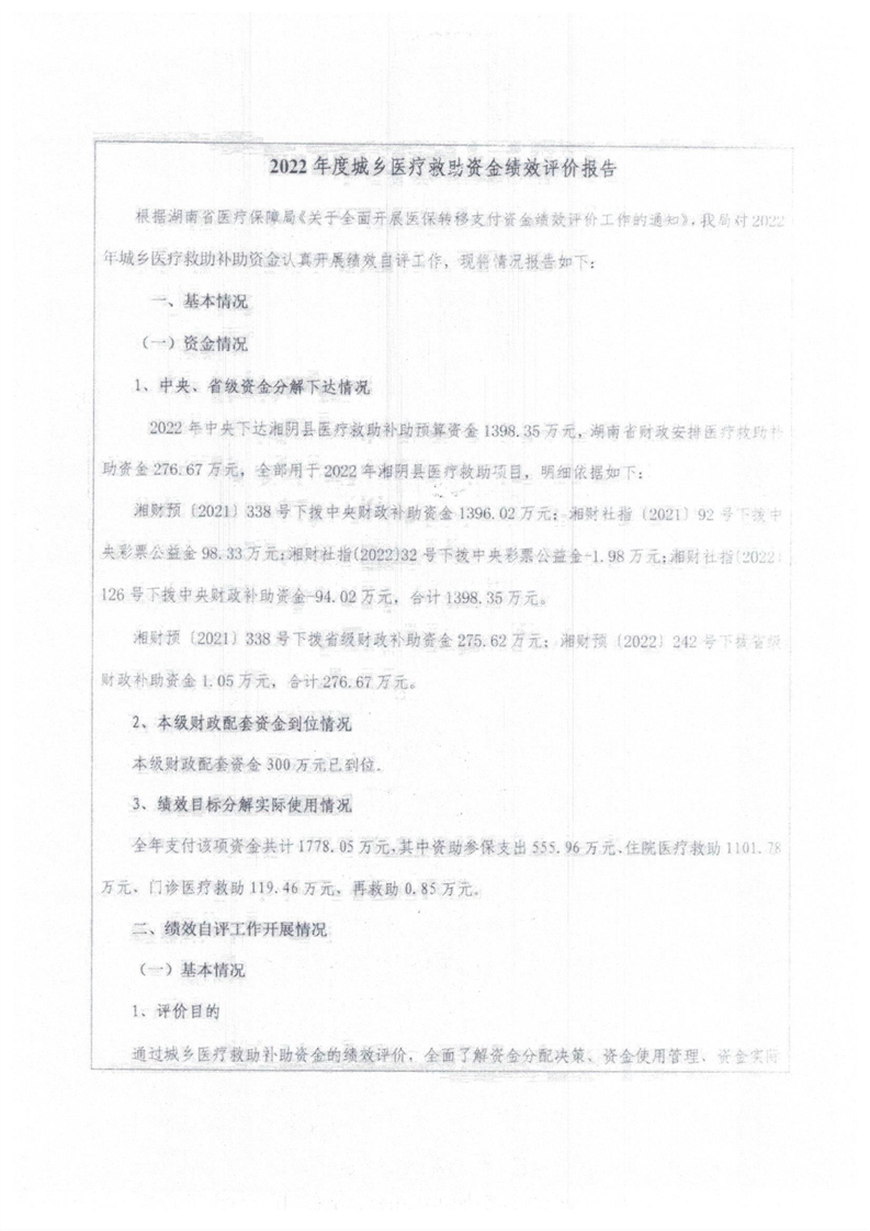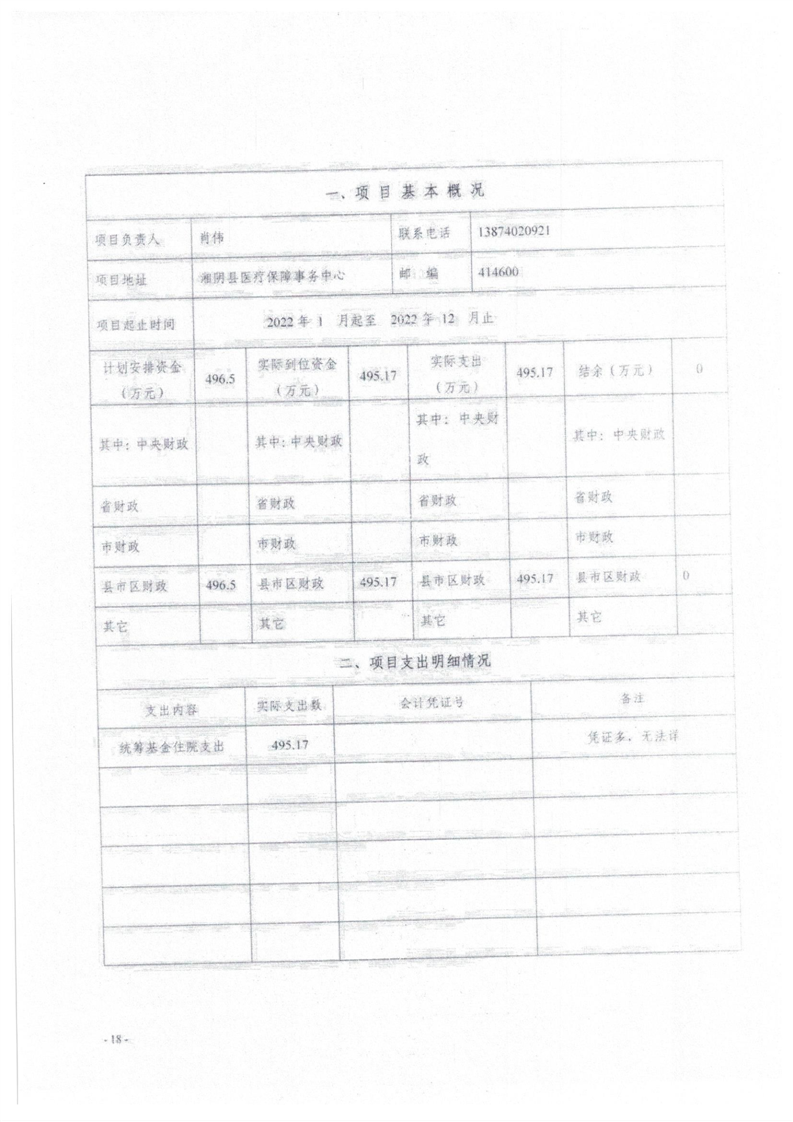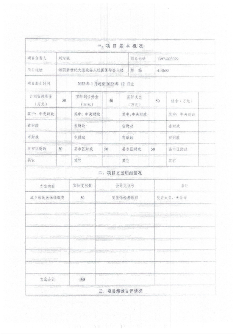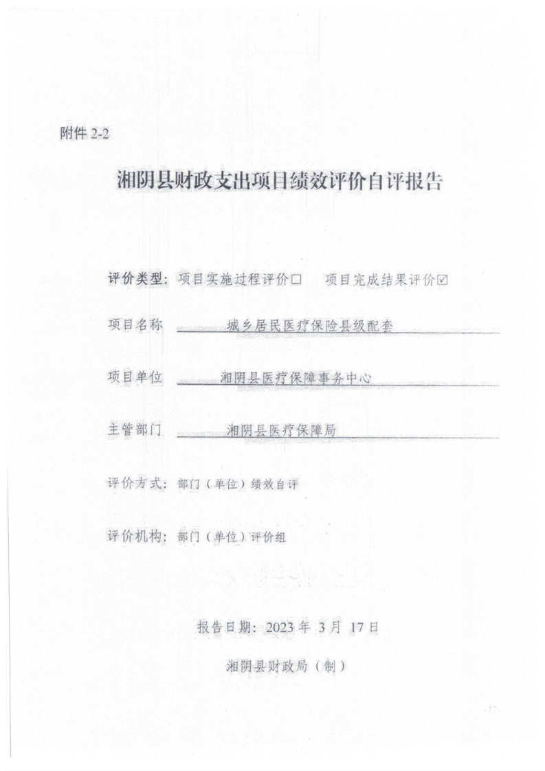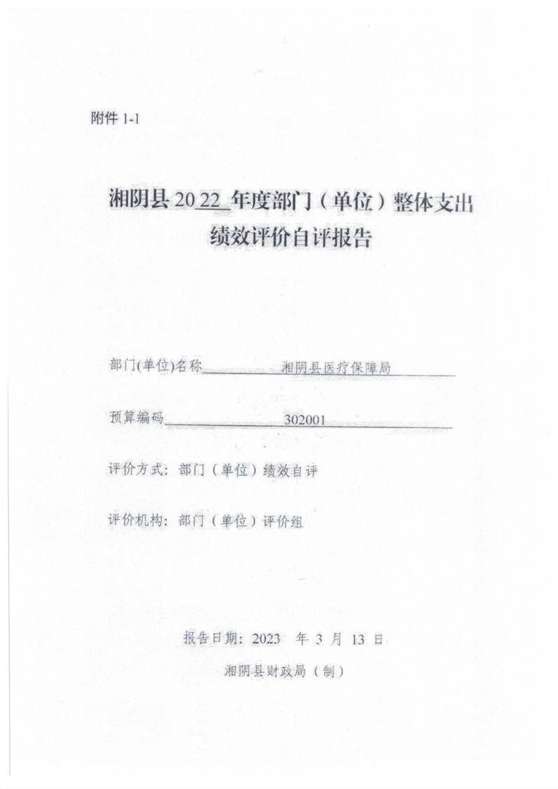 2022年度湘阴县医疗保障局部门决算及附件