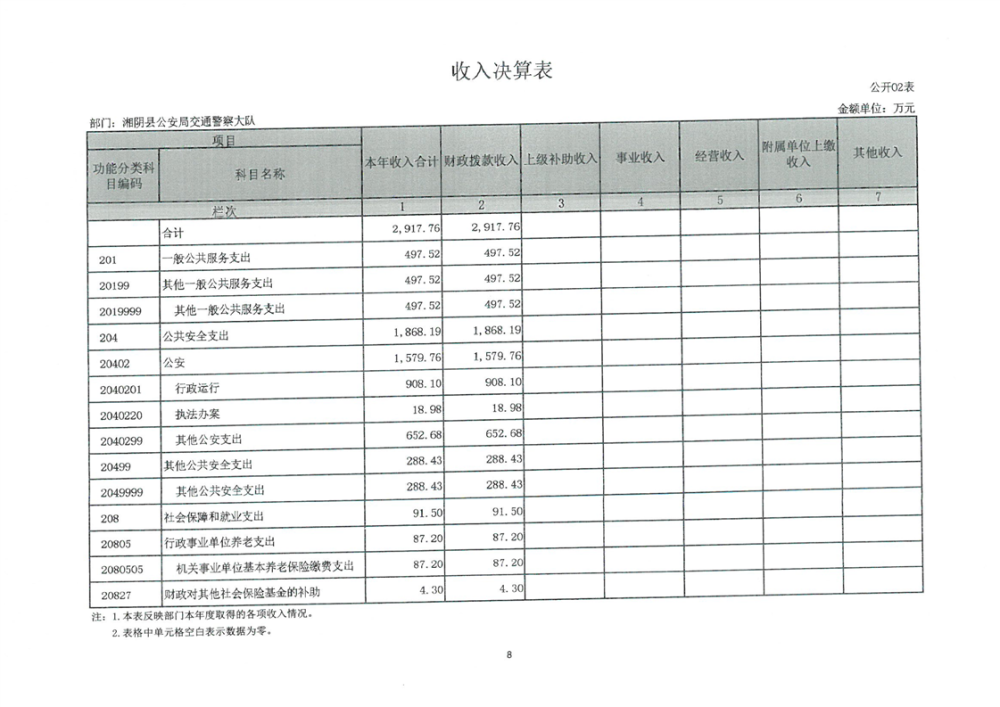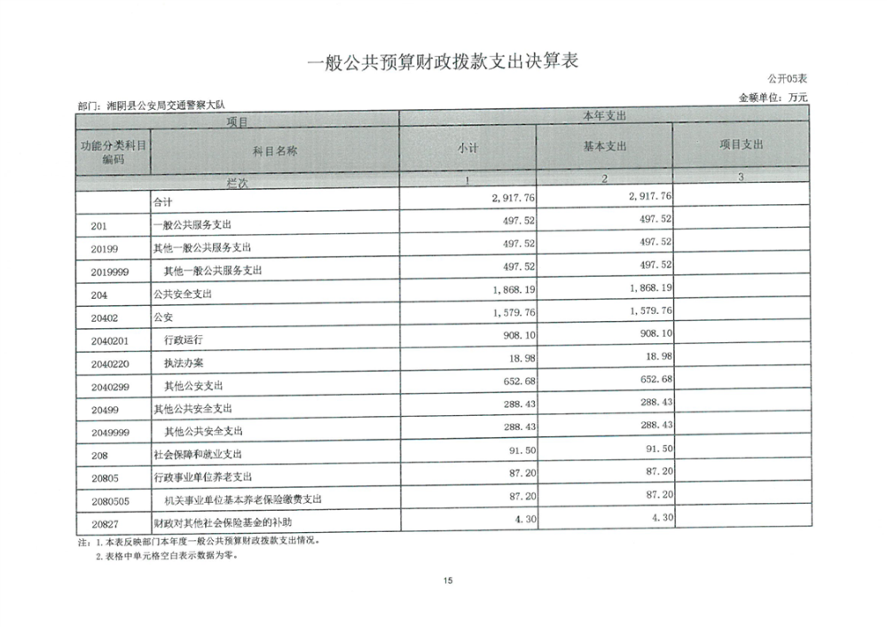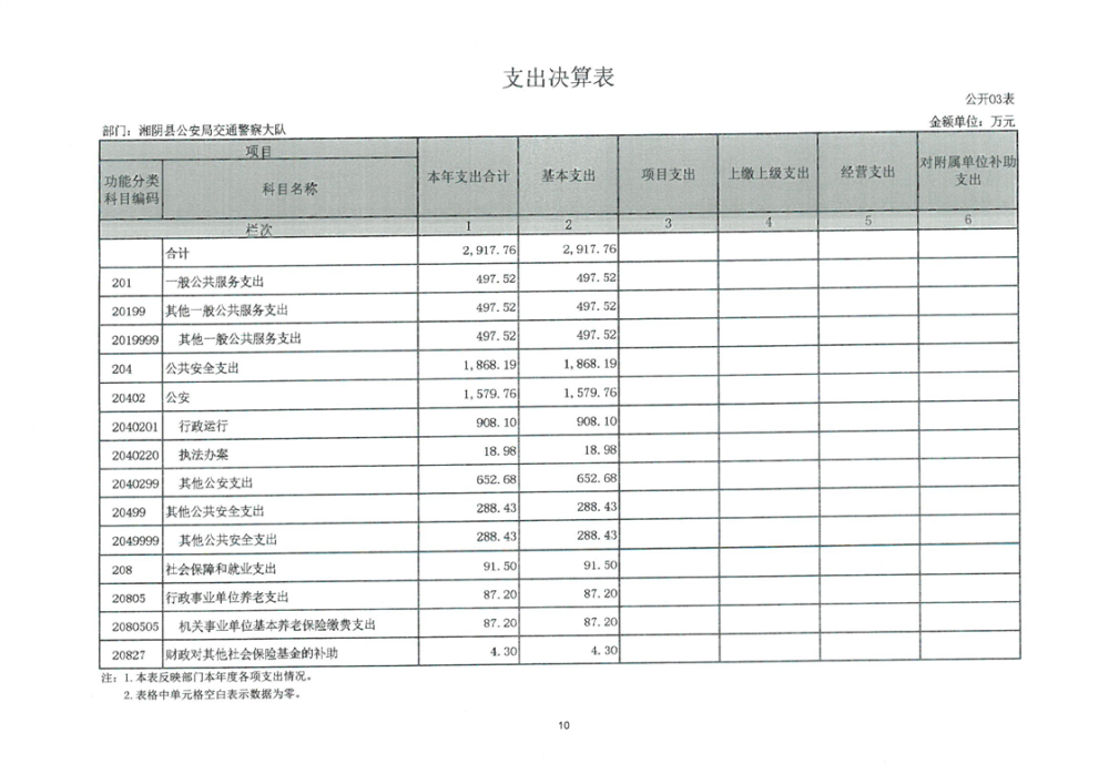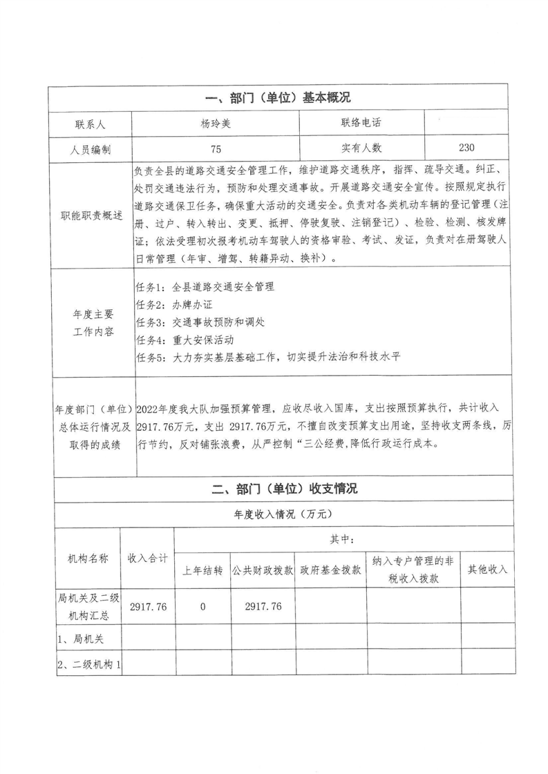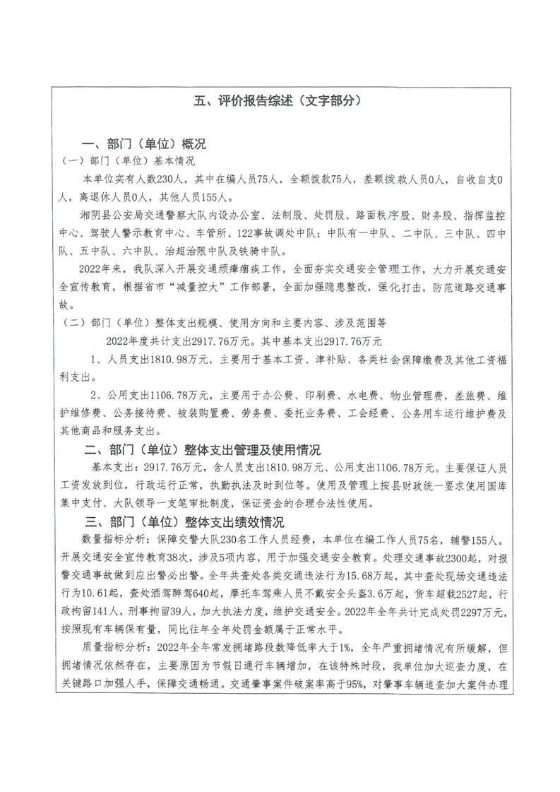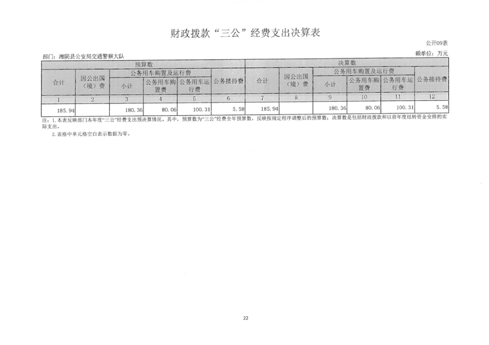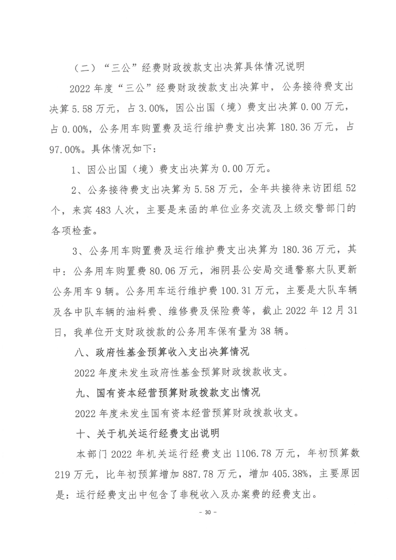 湘阴县公安局交通警察大队-2022年-部门决算公开