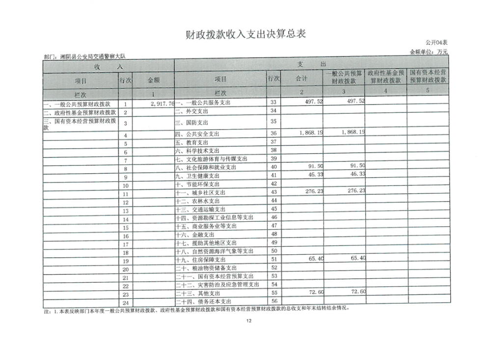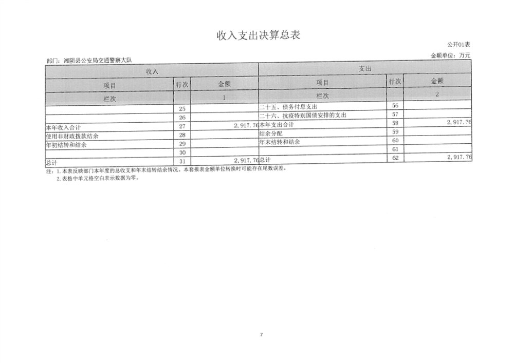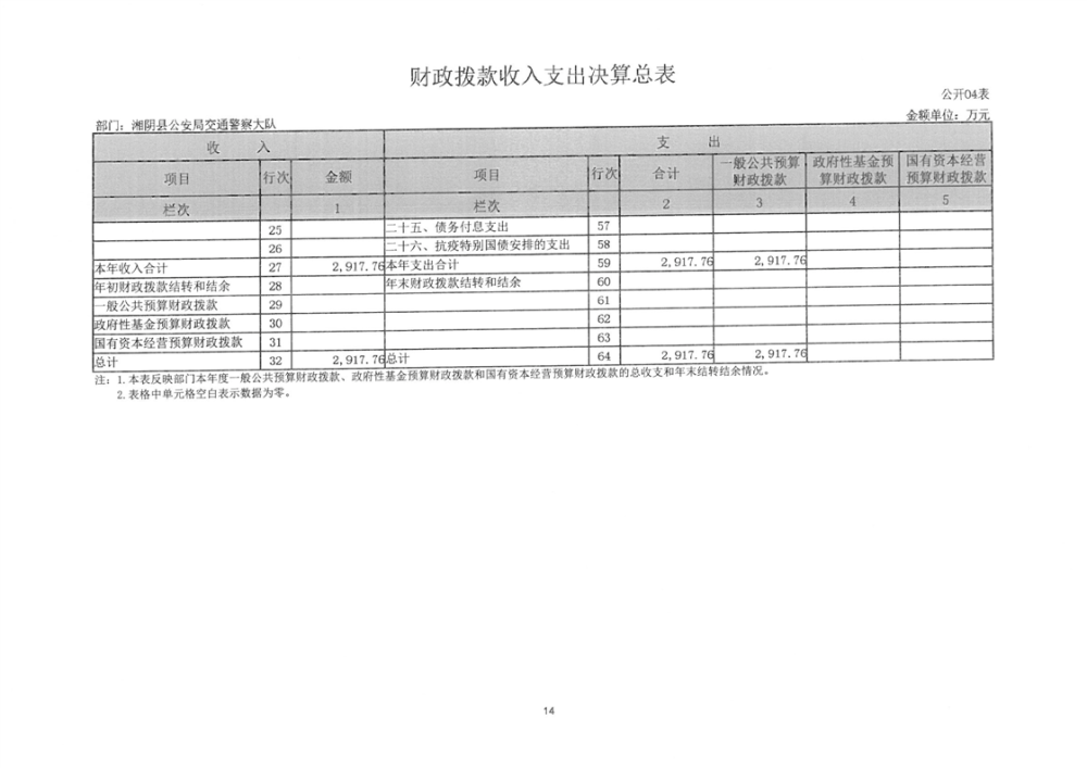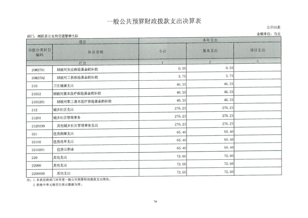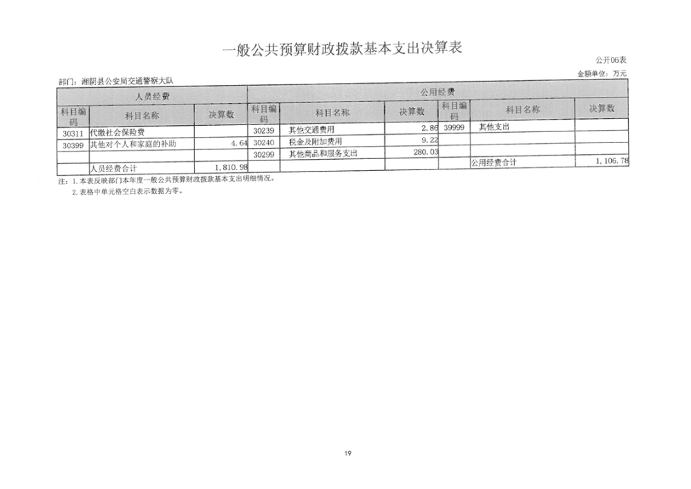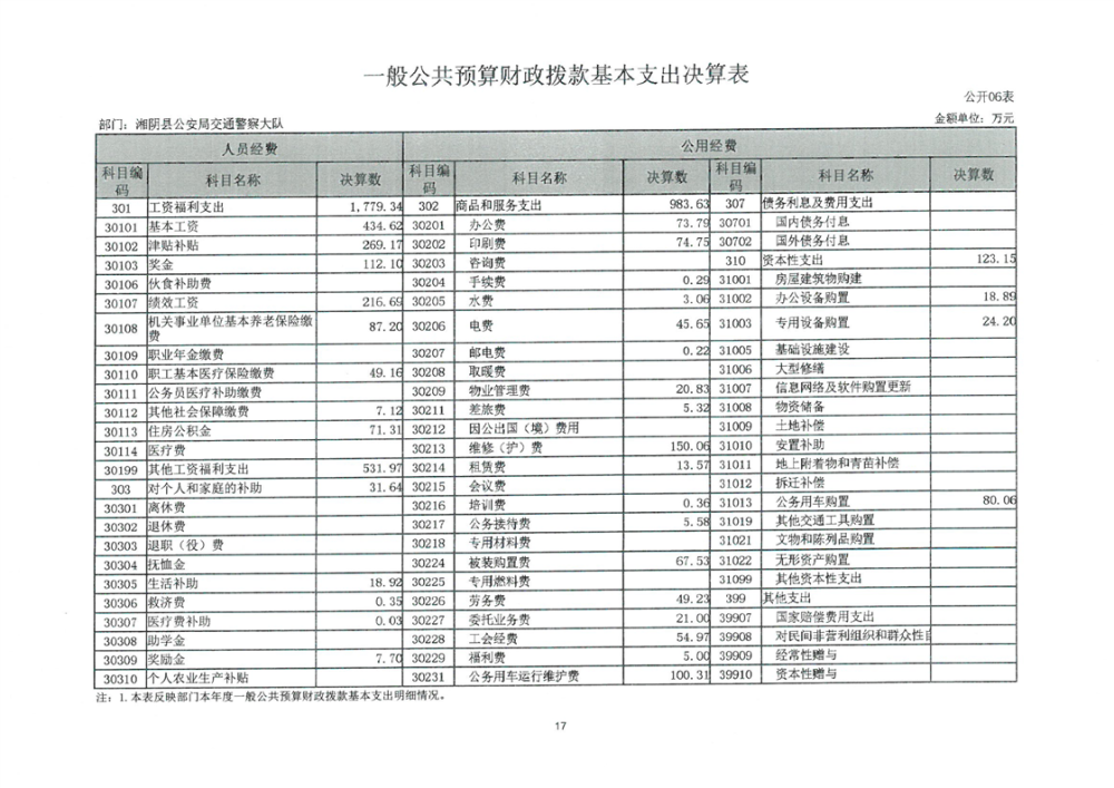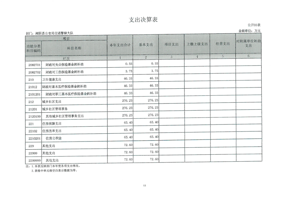 湘阴县公安局交通警察大队-2022年-部门决算公开