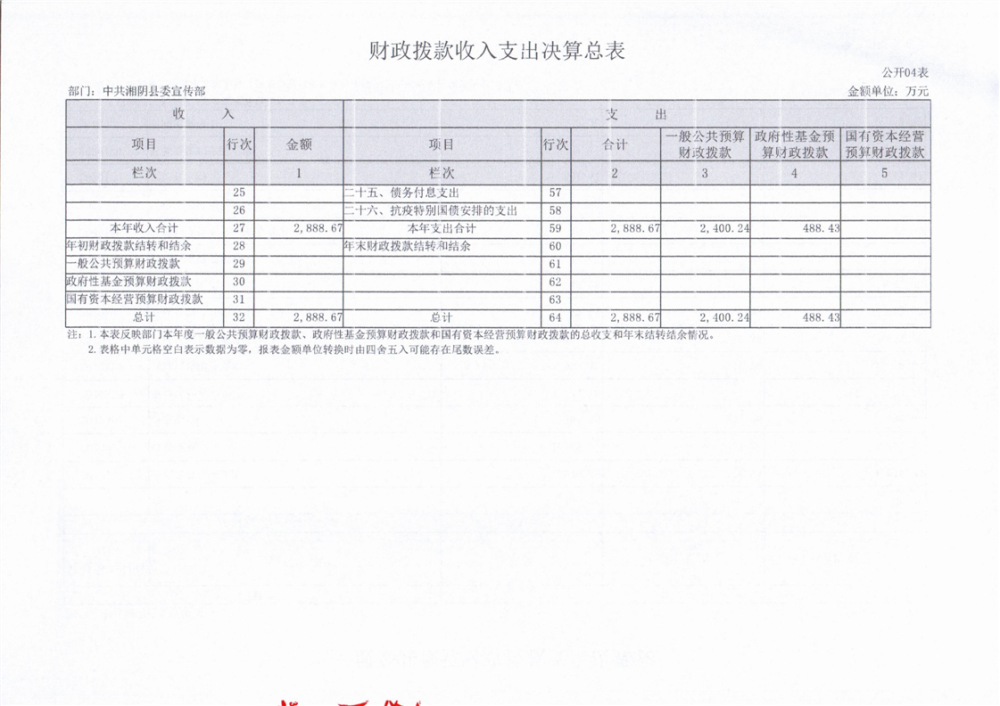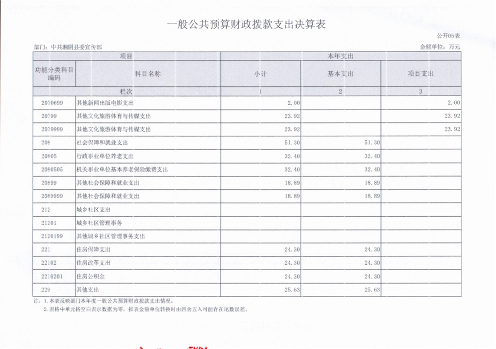 2023年-中共湘阴县委宣传部-决算公开
