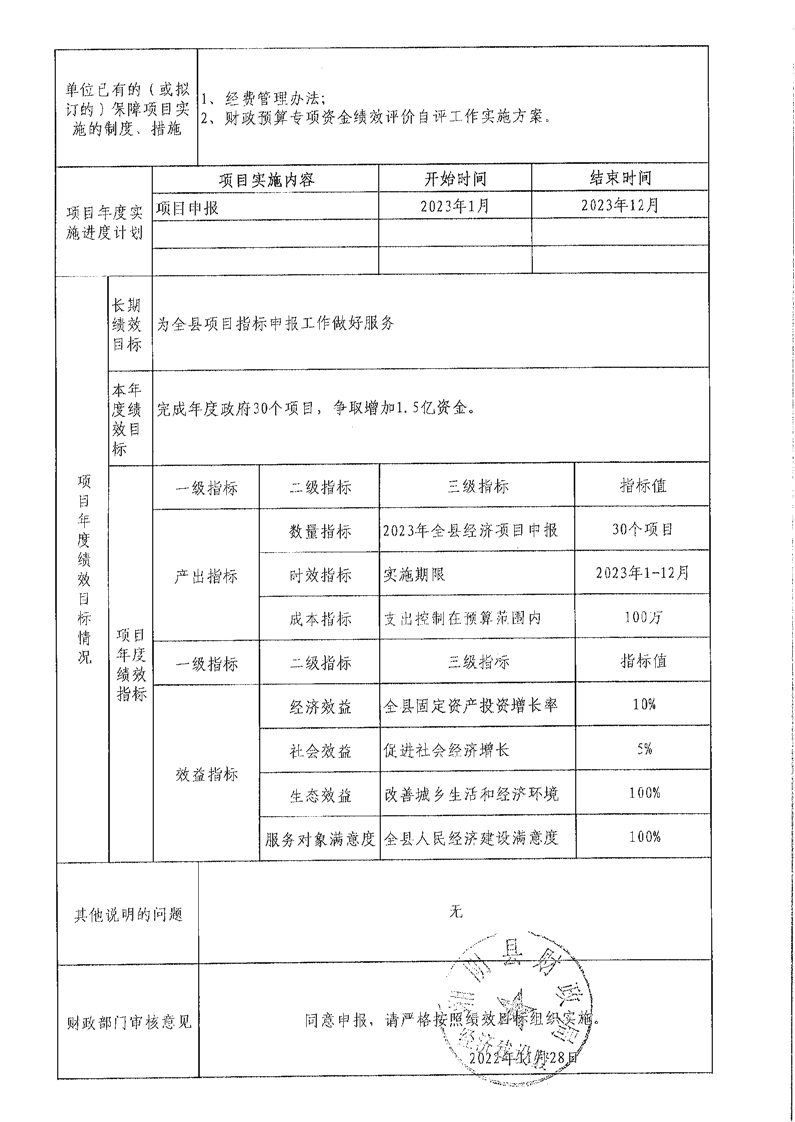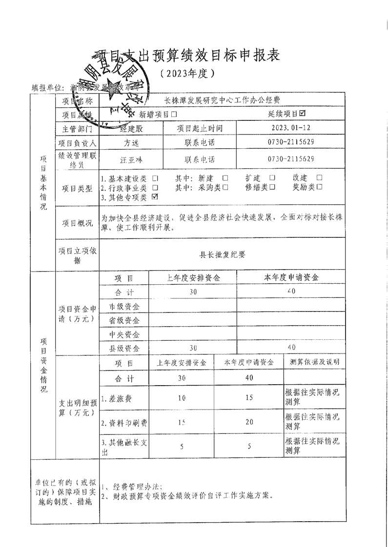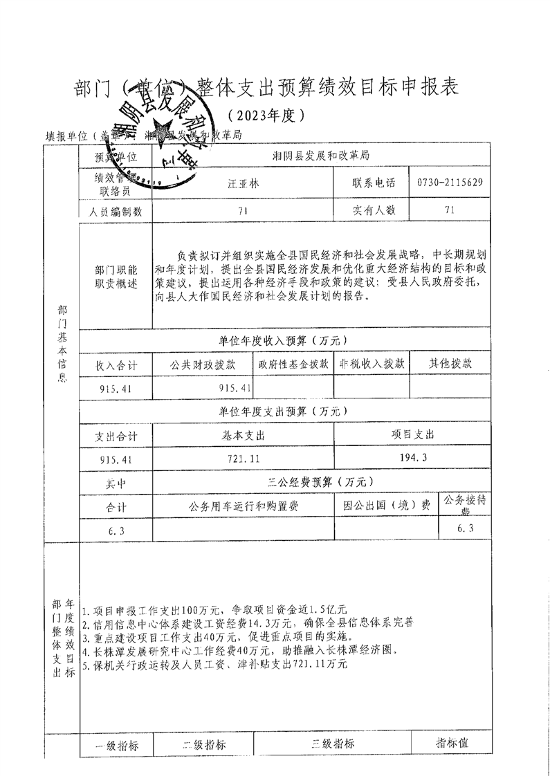 2023年湘阴县发展和改革局整体支出预算目标申报表