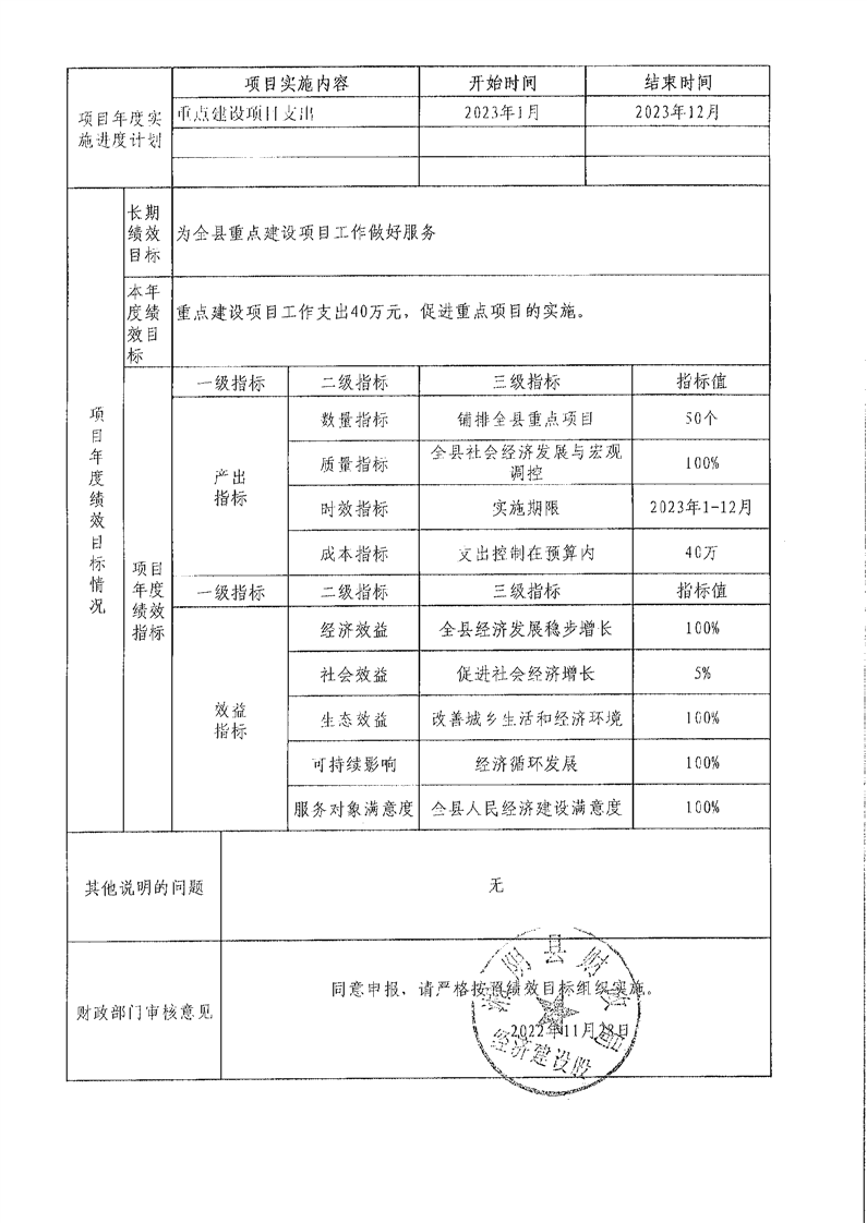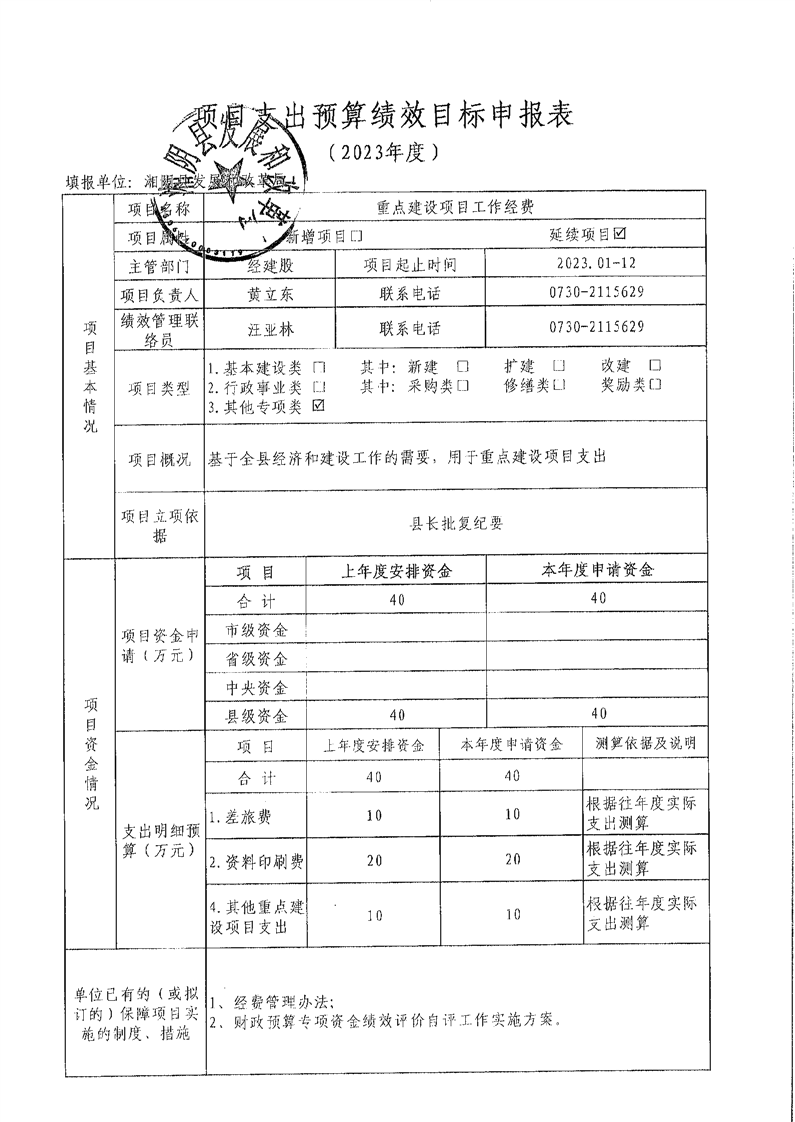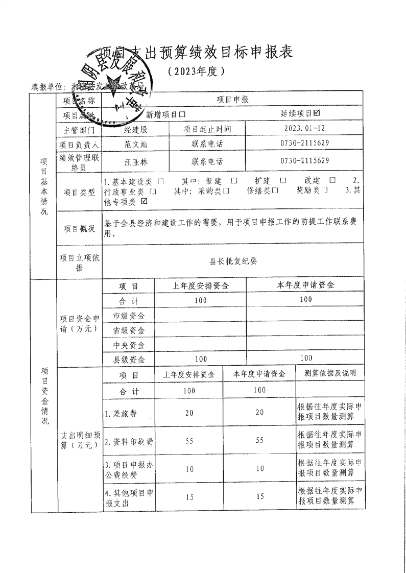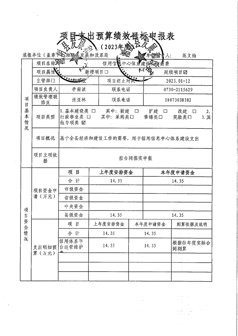 2023年湘阴县发展和改革局整体支出预算目标申报表