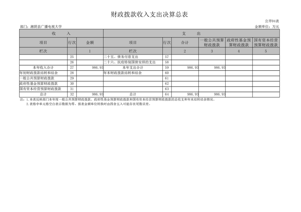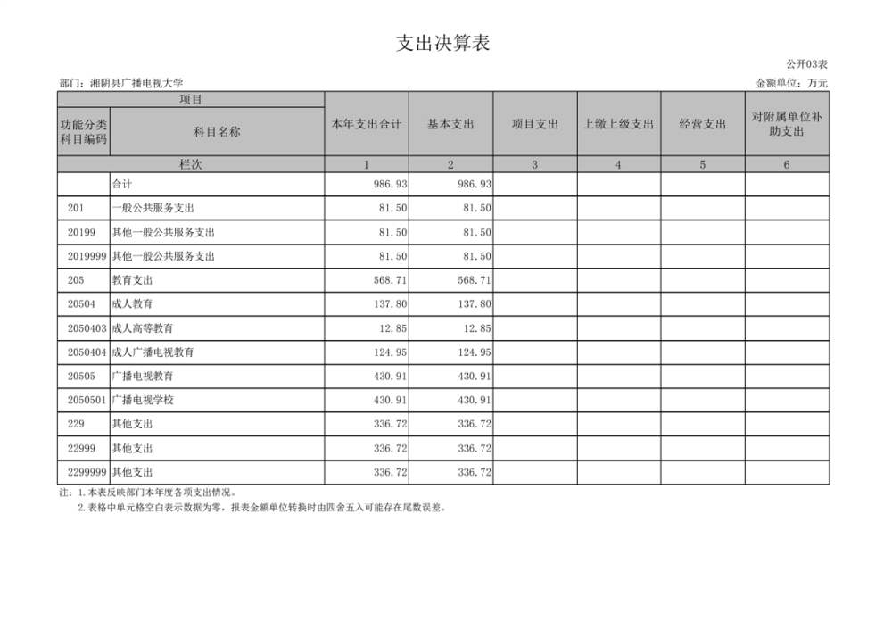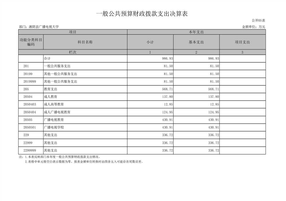2023年-湘阴县广播电视大学-部门决算公开