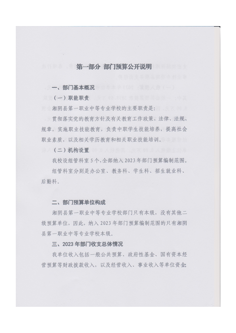 湘阴县第一职业中等专业学校-2023年度-部门预算公开