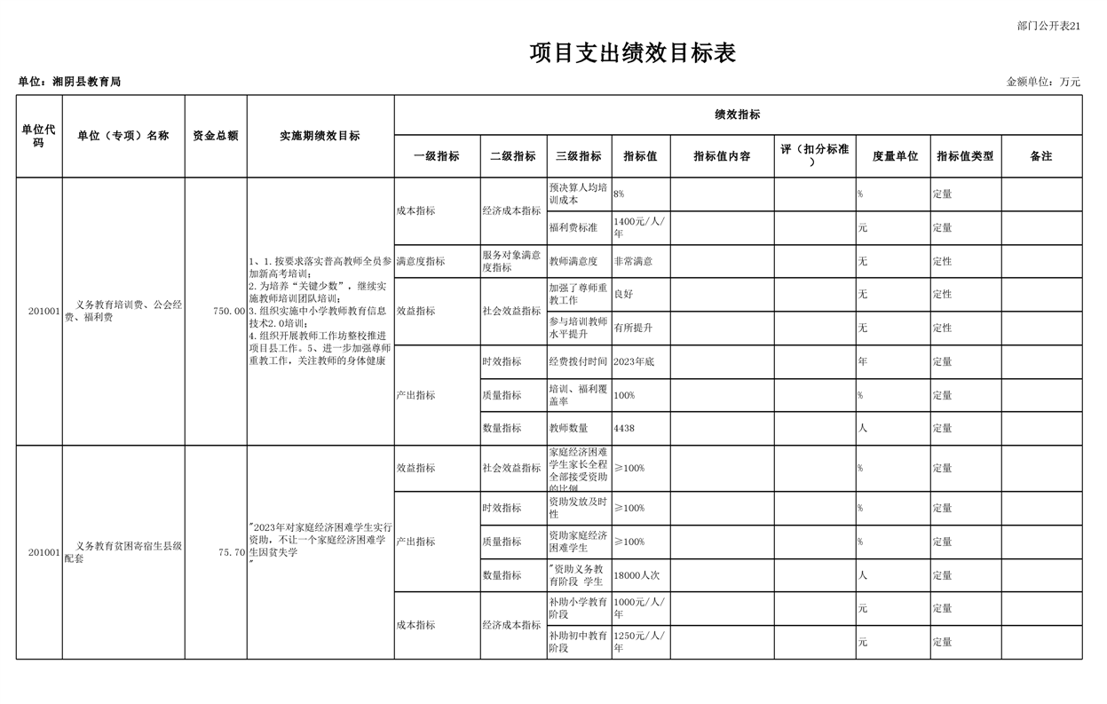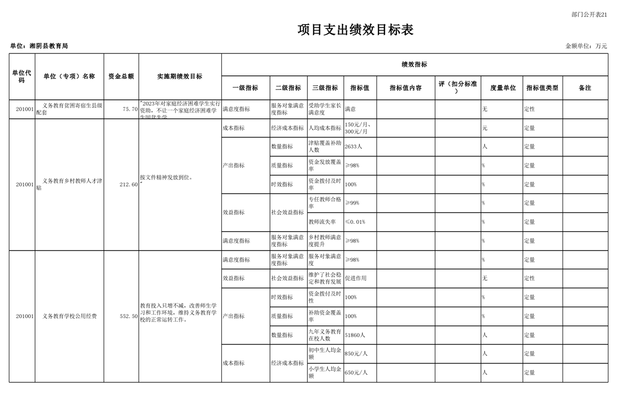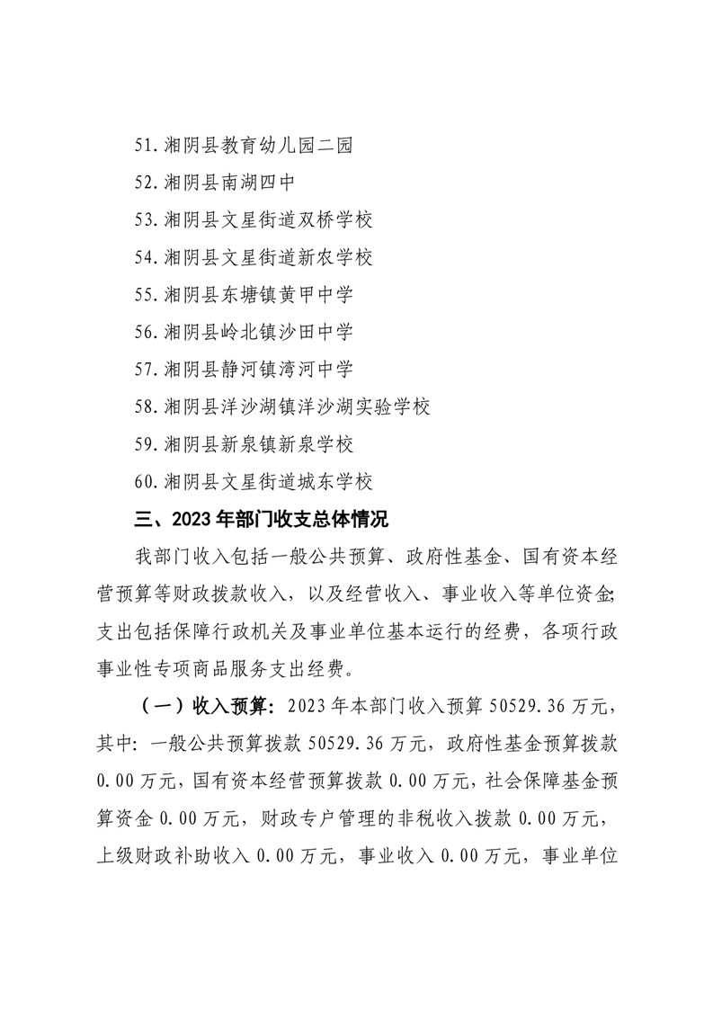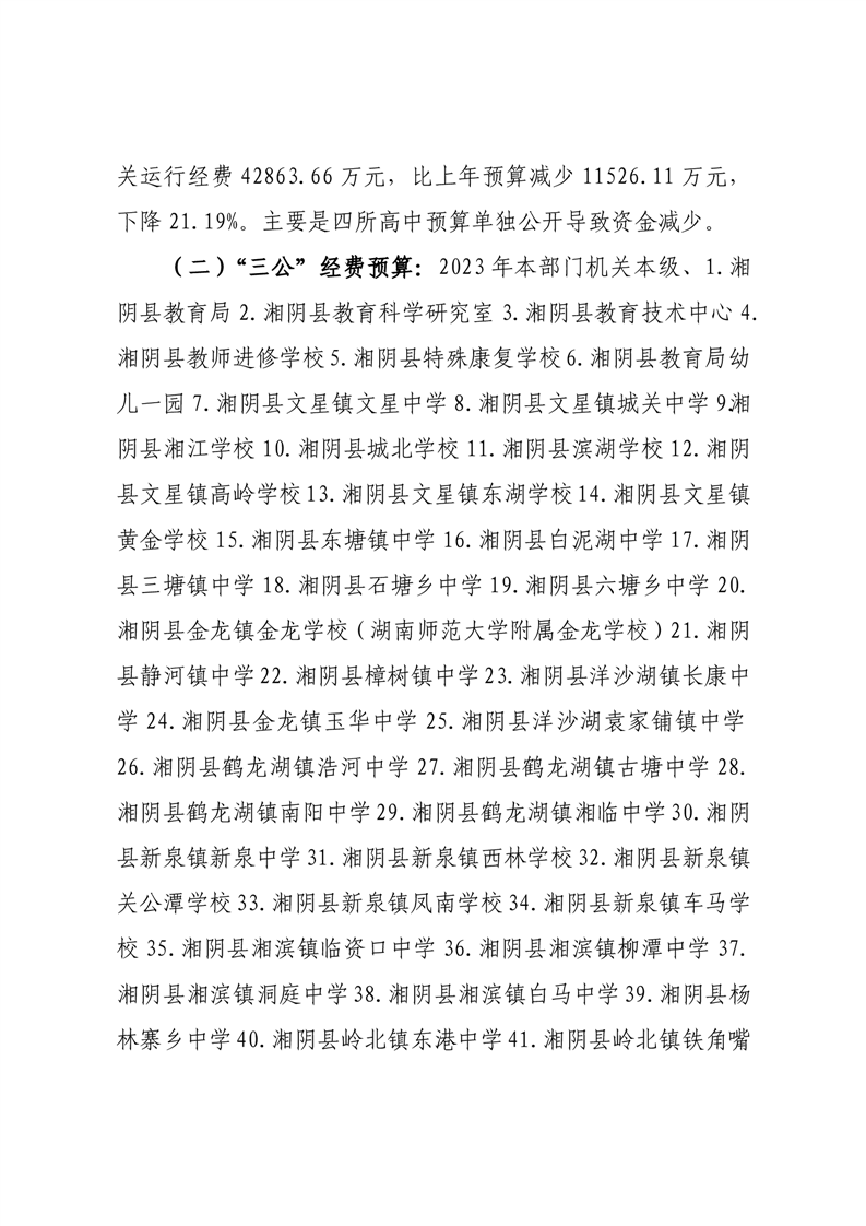 湘阴县教育局2023年部门预算