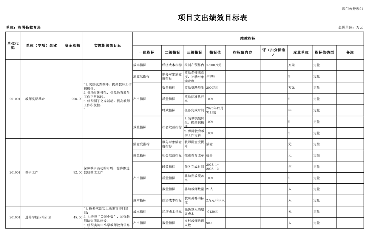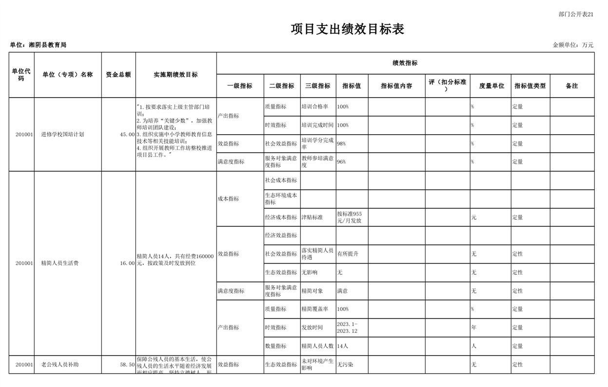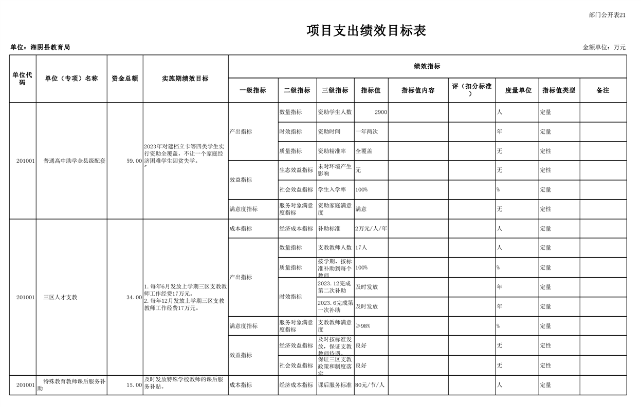 湘阴县教育局2023年部门预算