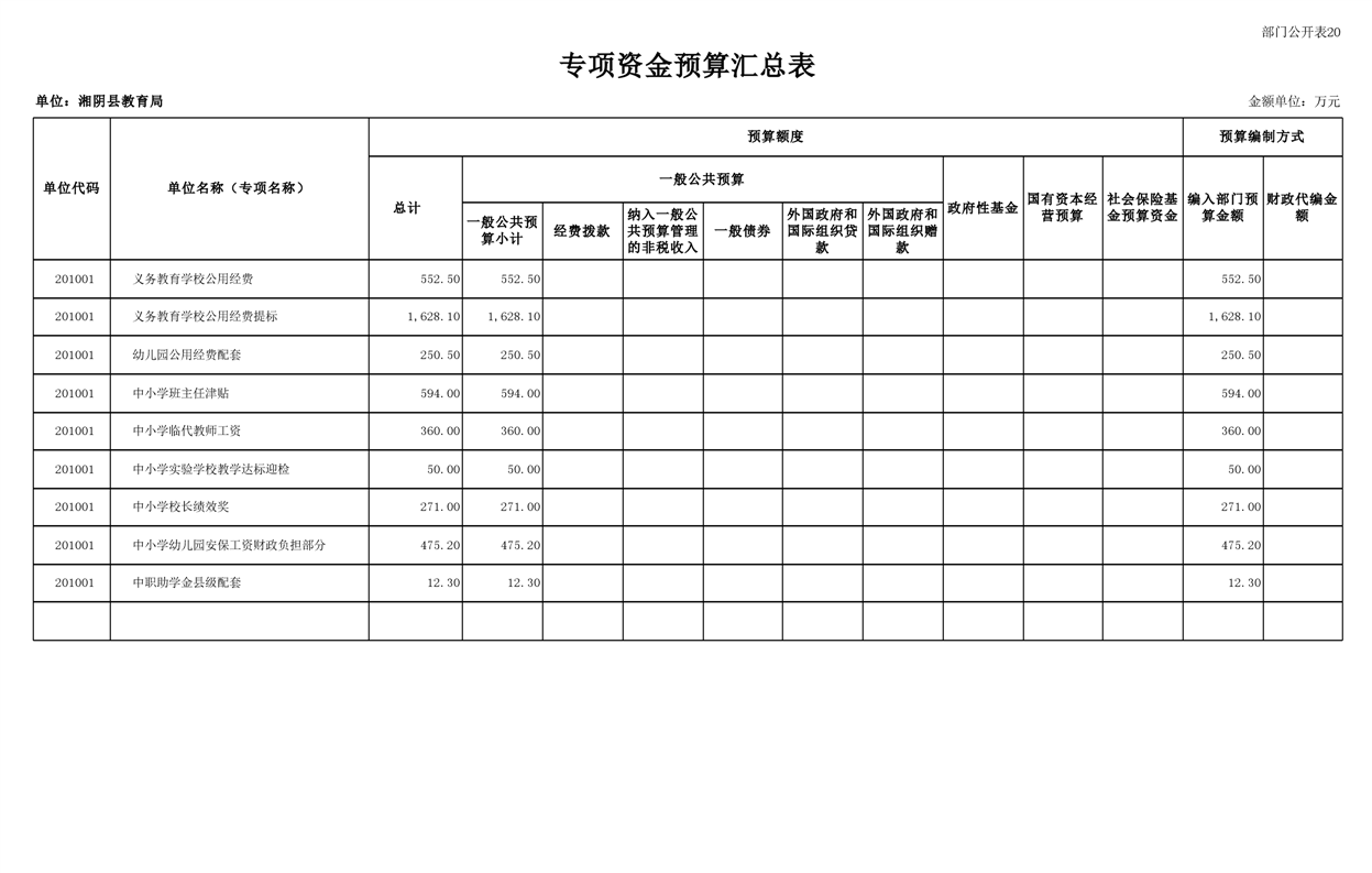 | 公开主体 | 湘阴县财政局 | ||