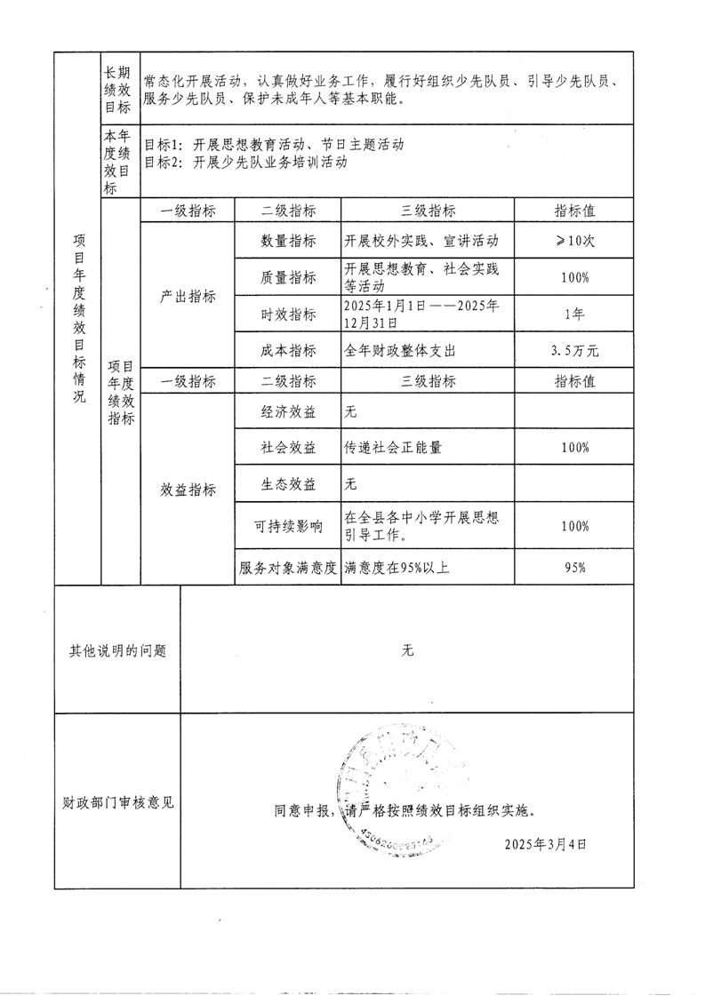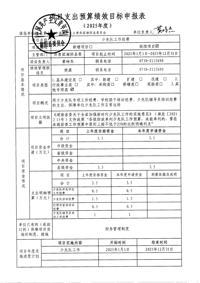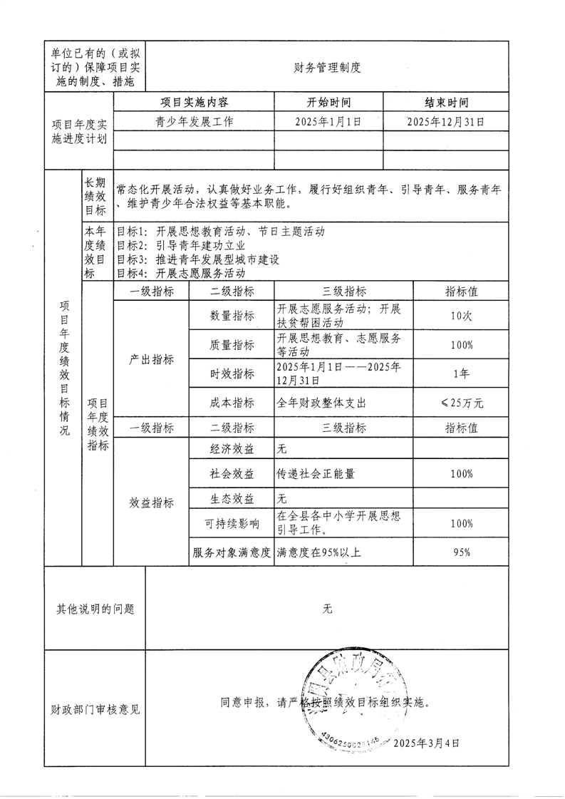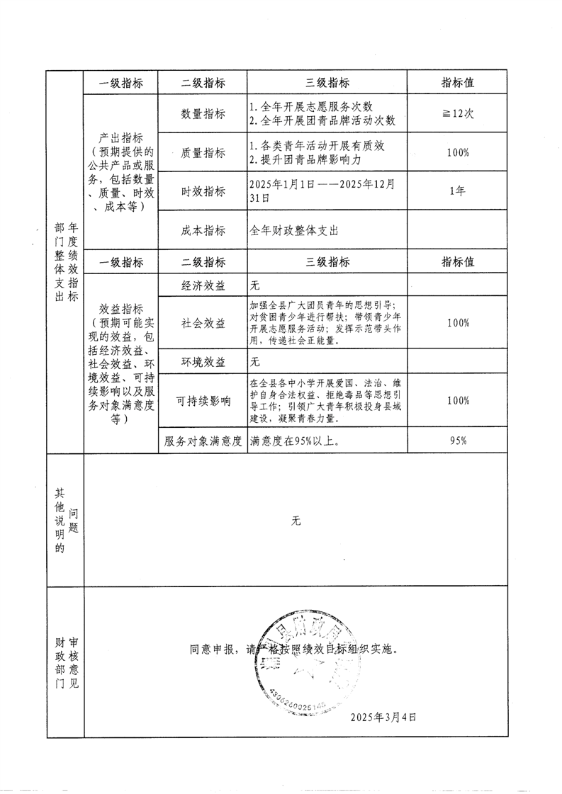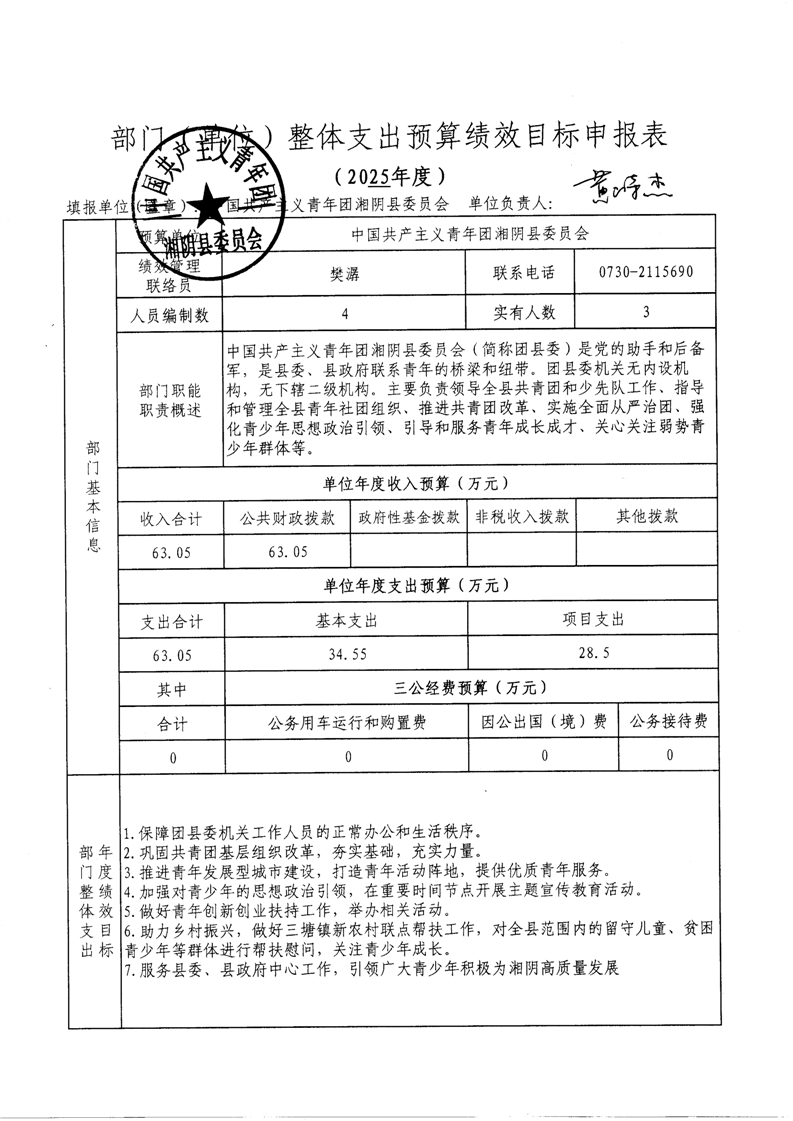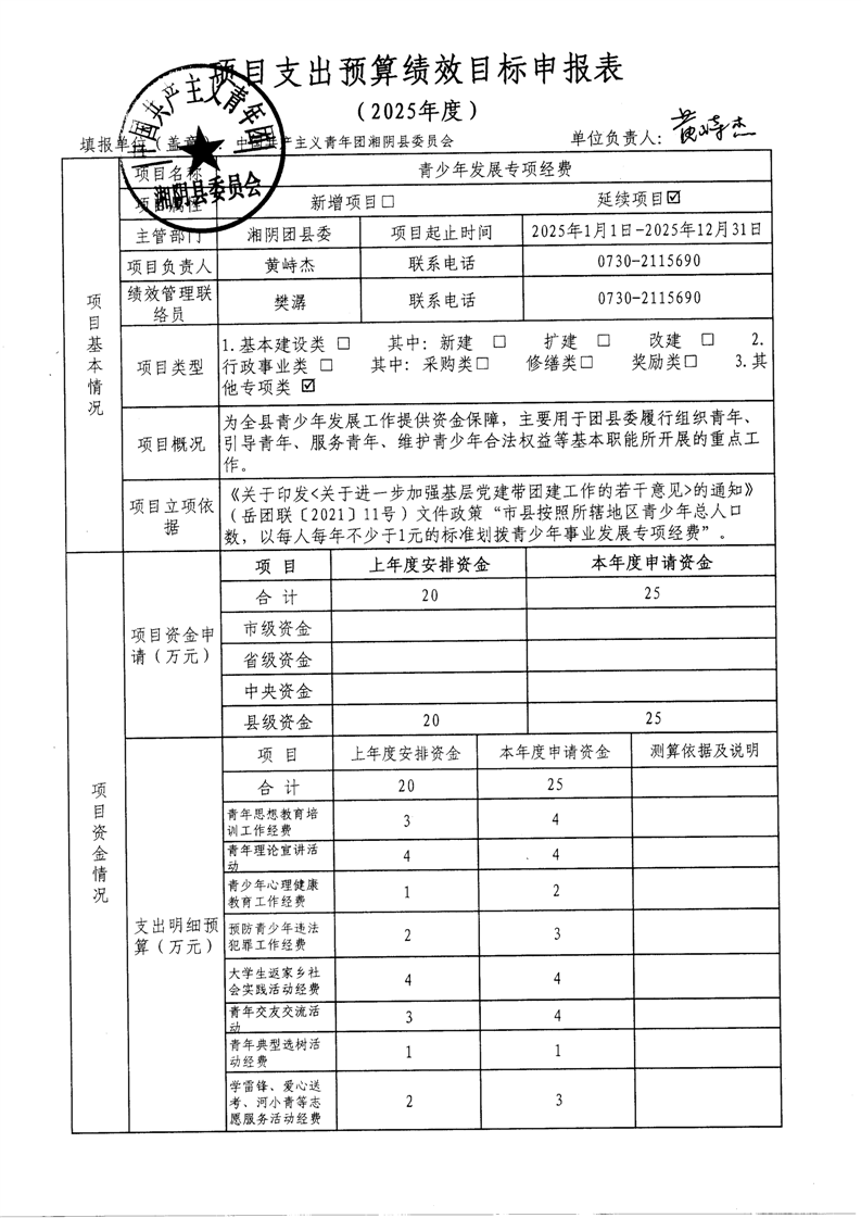 2025年-中国共产主义青年团湘阴县委员会-整体、项目预算绩效目标申报表