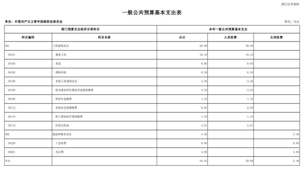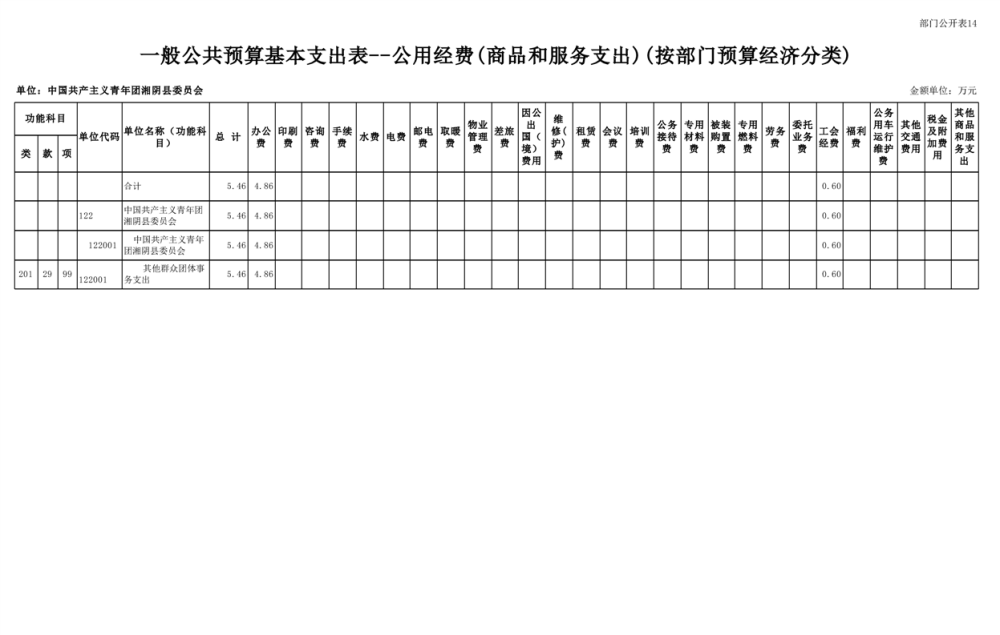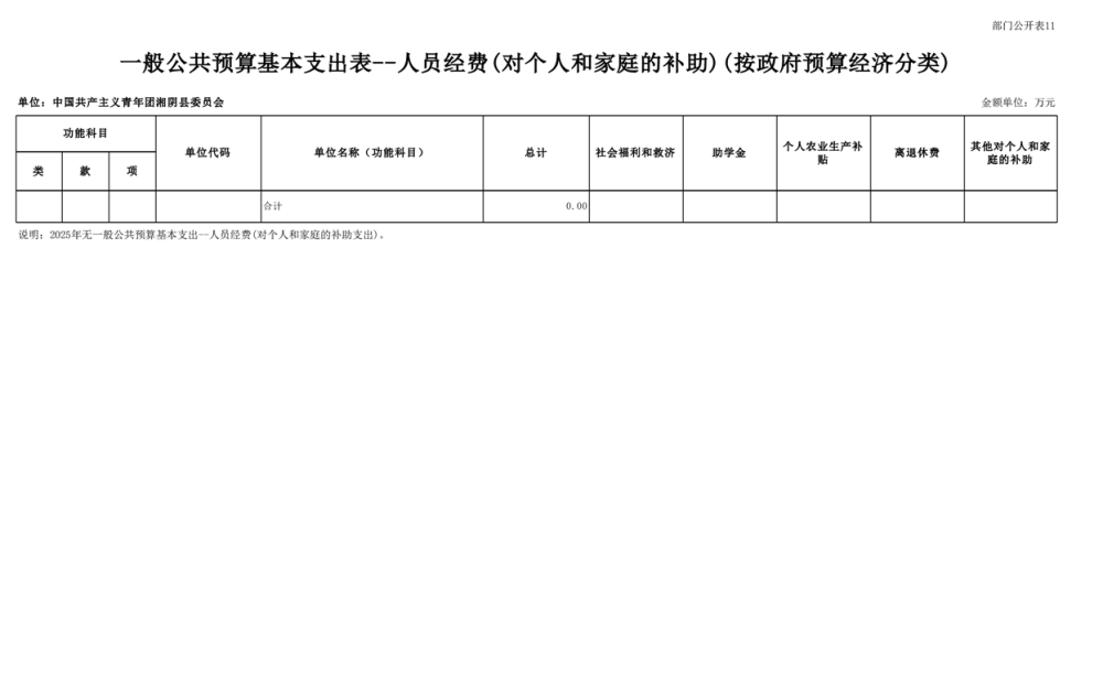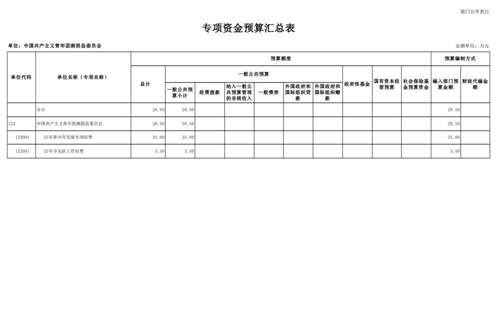 2025年-中国共产主义青年团湘阴县委员会-预算公开