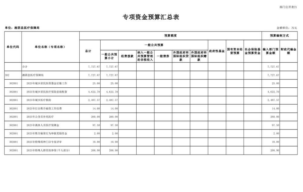 2025年-湘阴县医疗保障局-部门预算