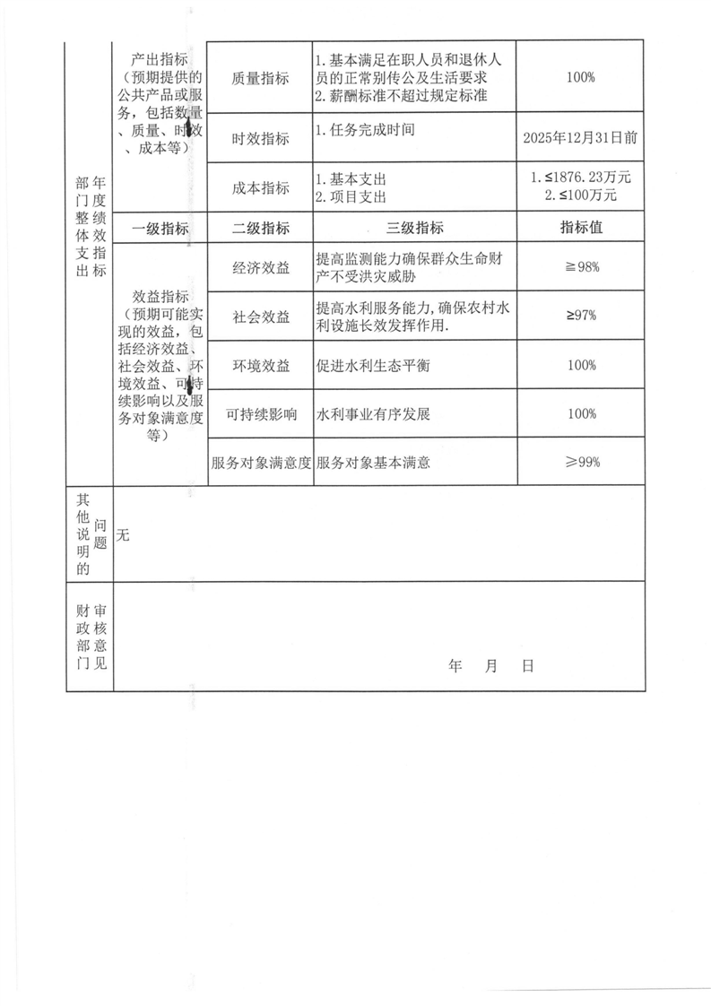 2025年-湘阴县水利局-整体支出预算绩效目标申报表公开