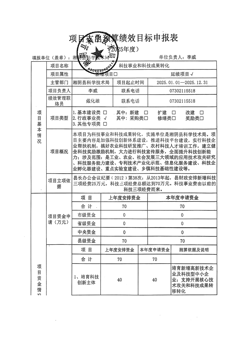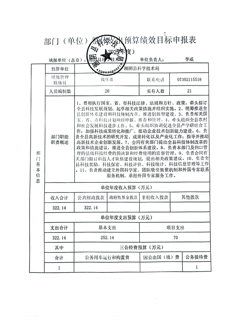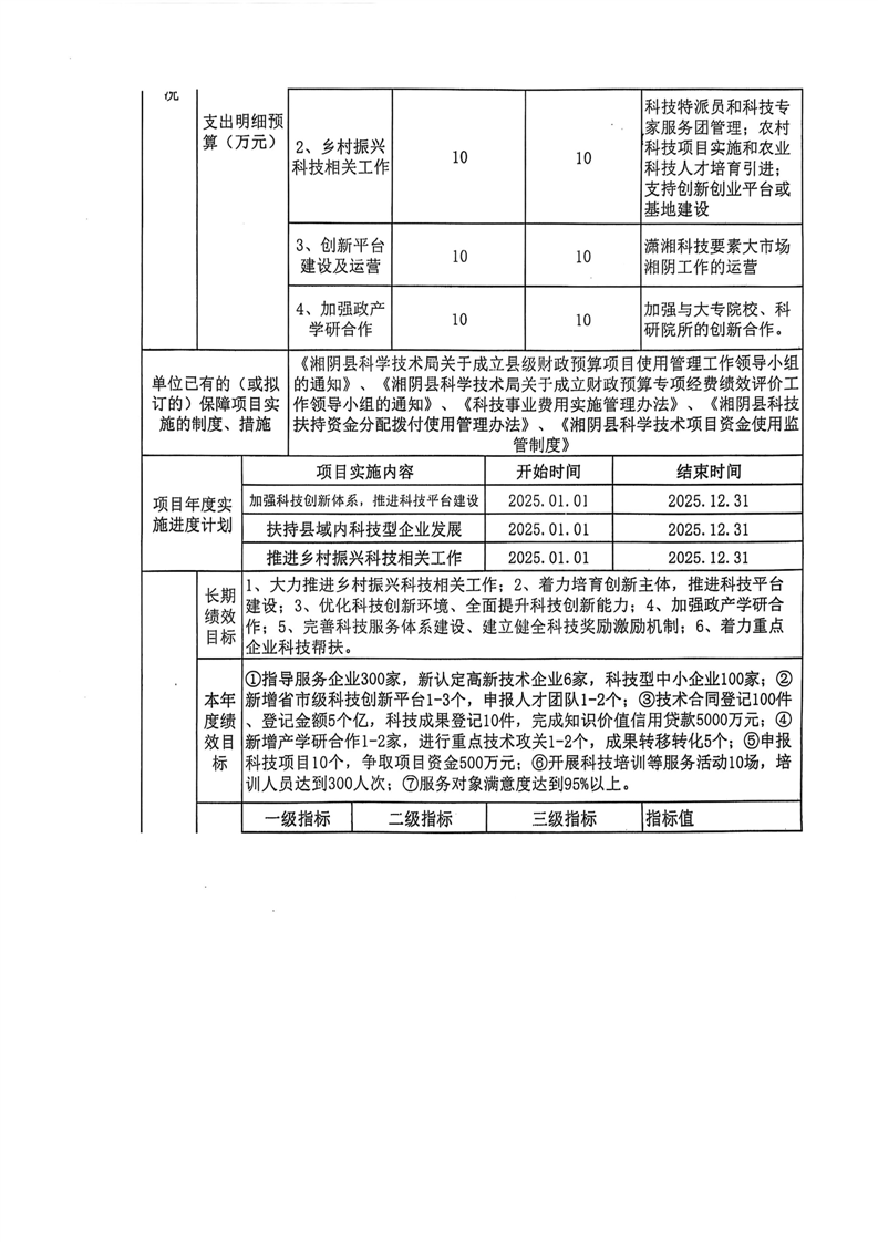2025年-湘阴县科学技术局-整体及项目支出预算绩效公开