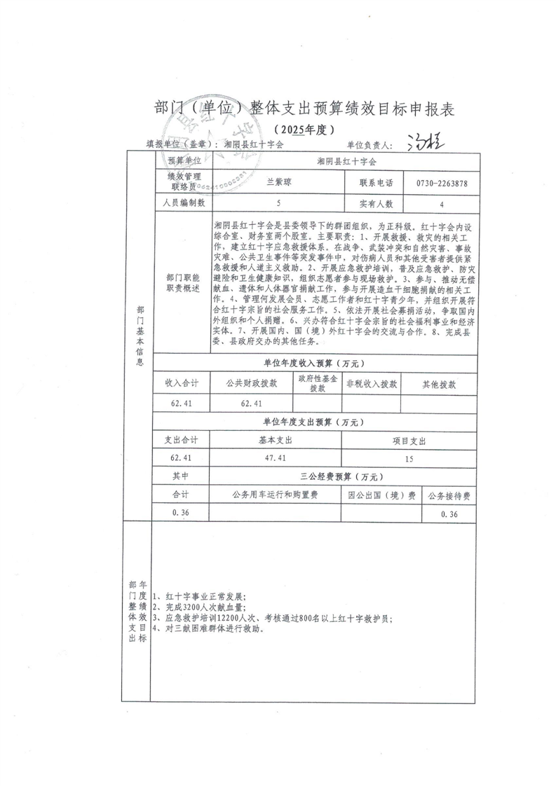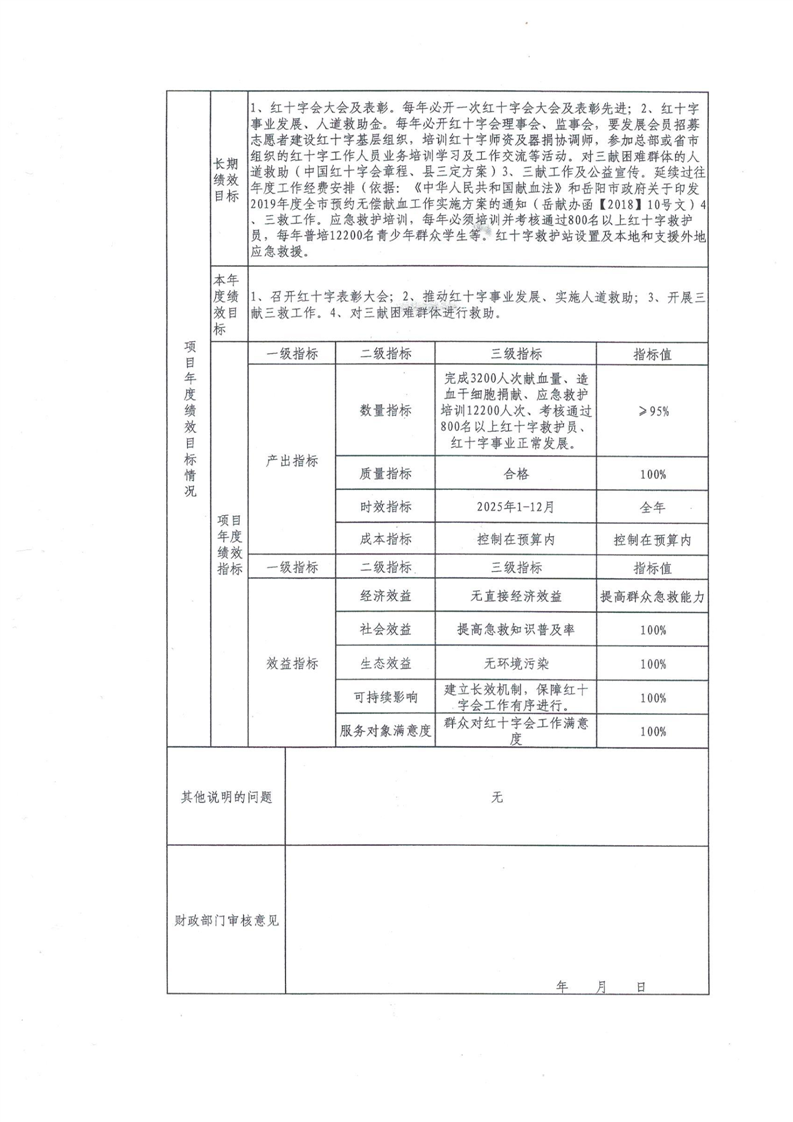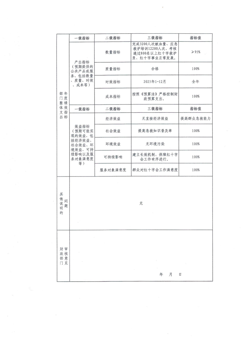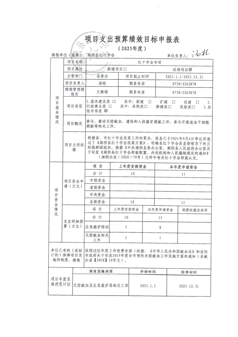 2025年-湘阴县红十字会-整体、项目支出预算绩效目标申报表