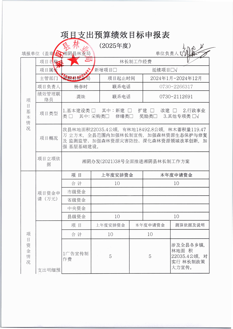 2025年-湘阴县林业局-绩效申报