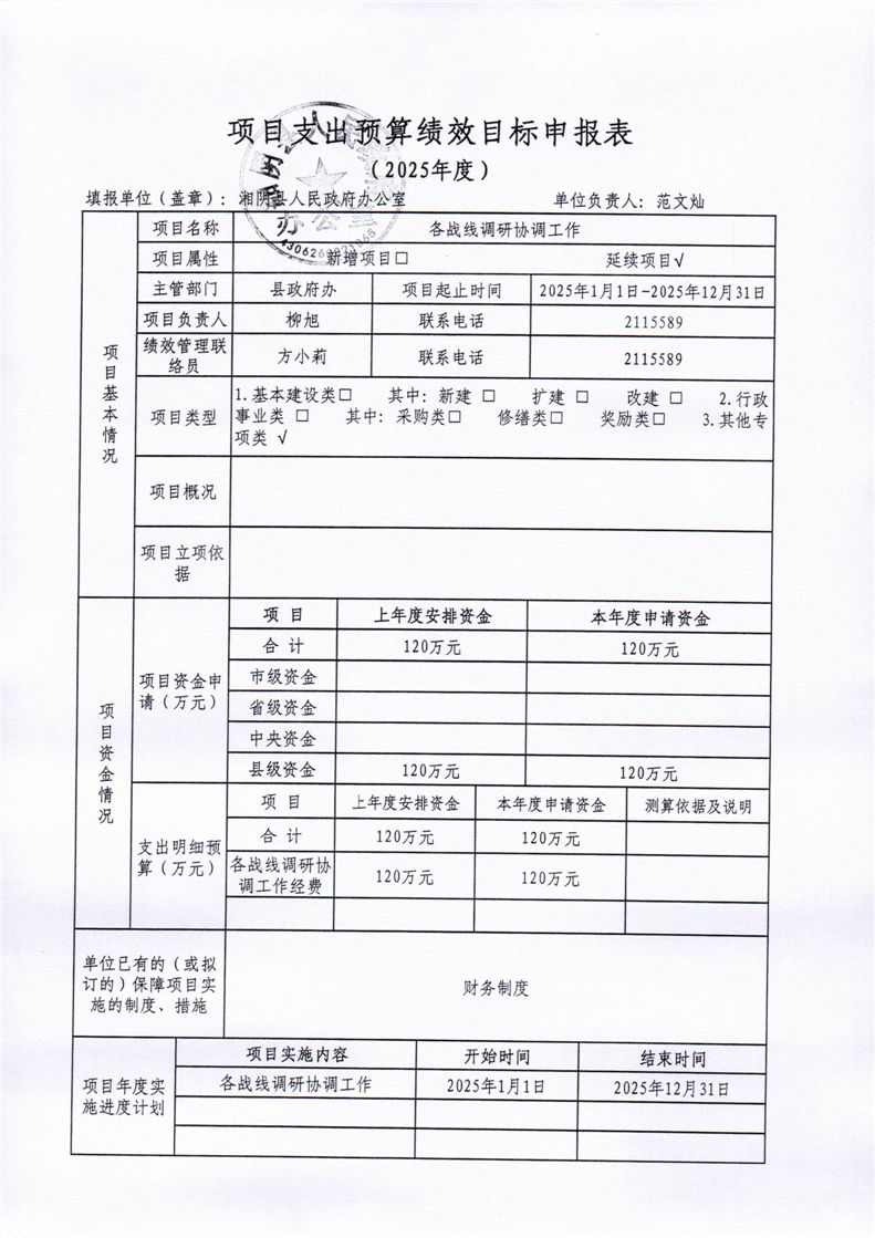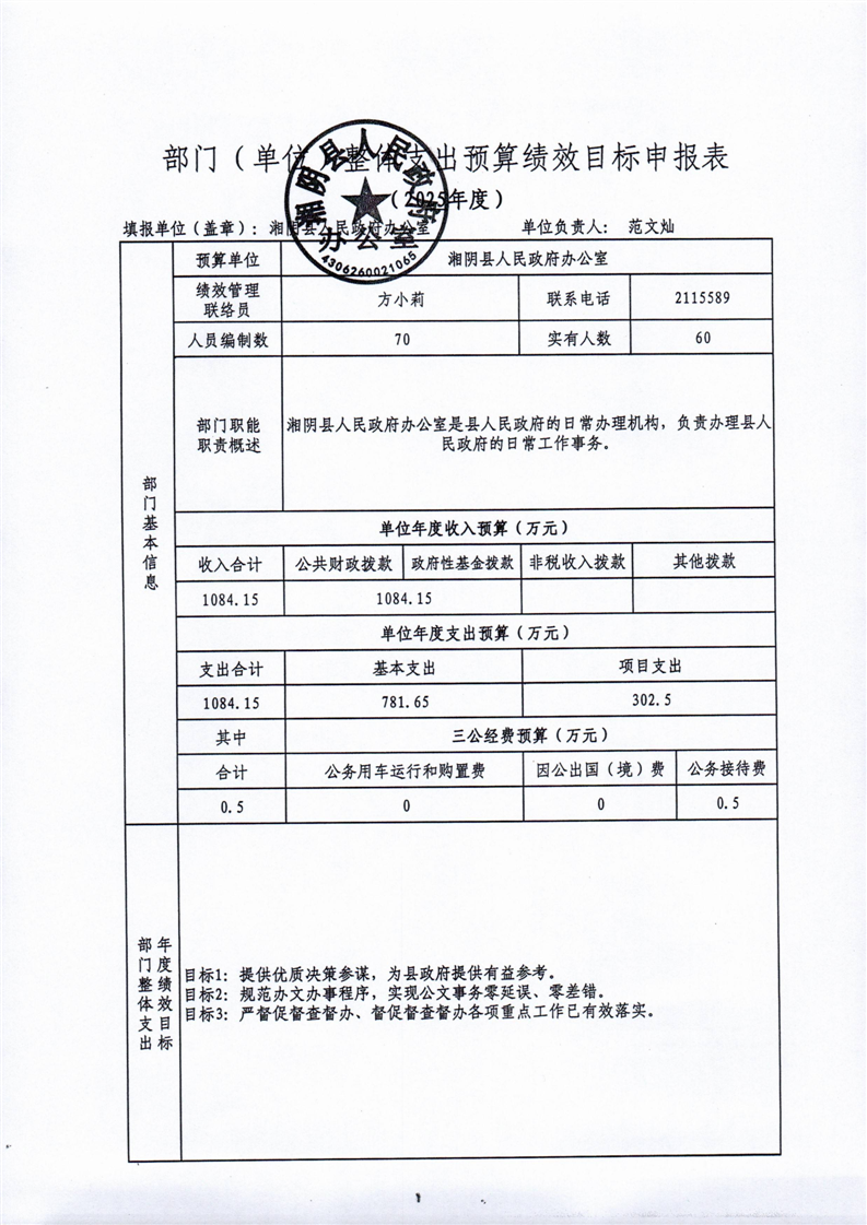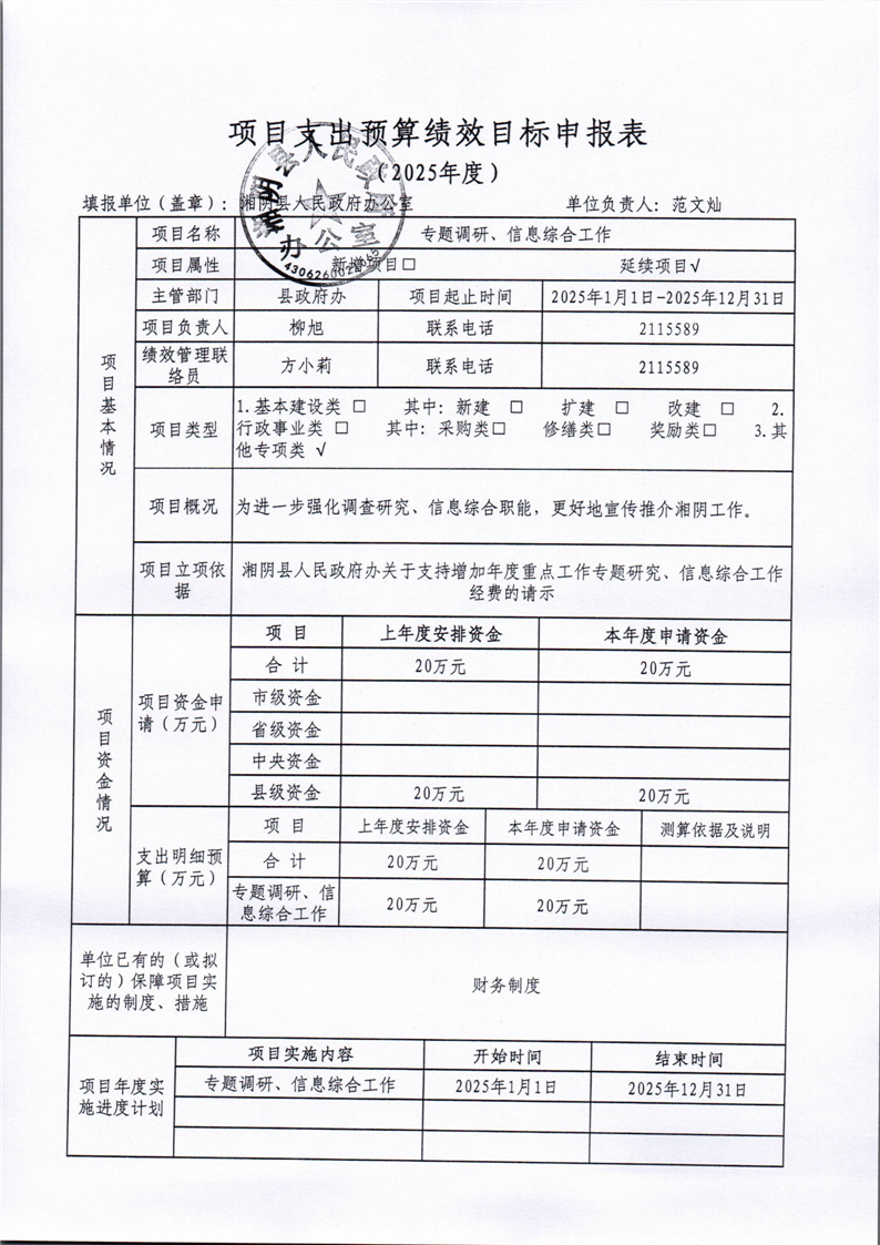 2025年-湘阴县人民政府办公室-预算绩效公开