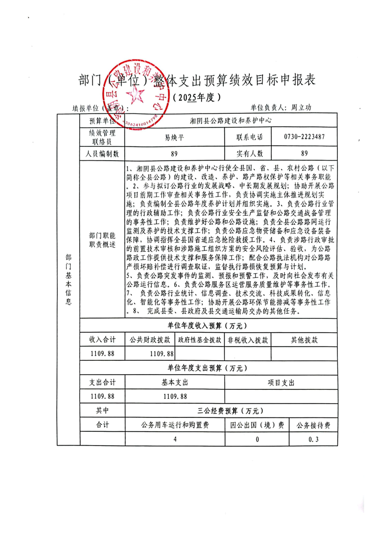 2025年-湘阴县公路建设和养护中心-预算绩效公开
