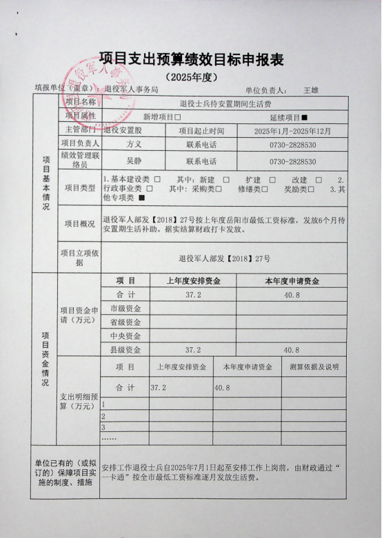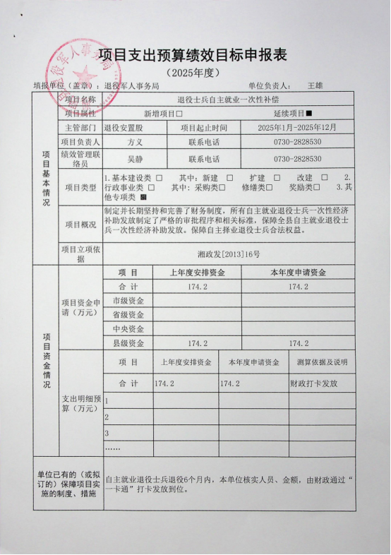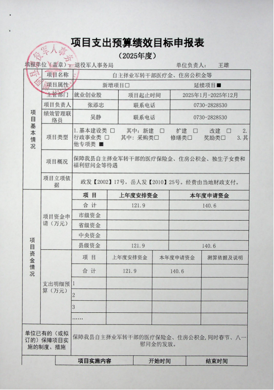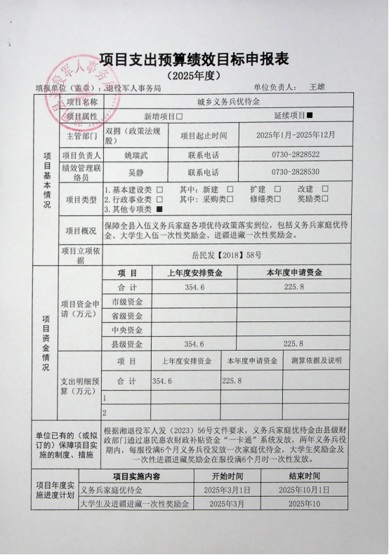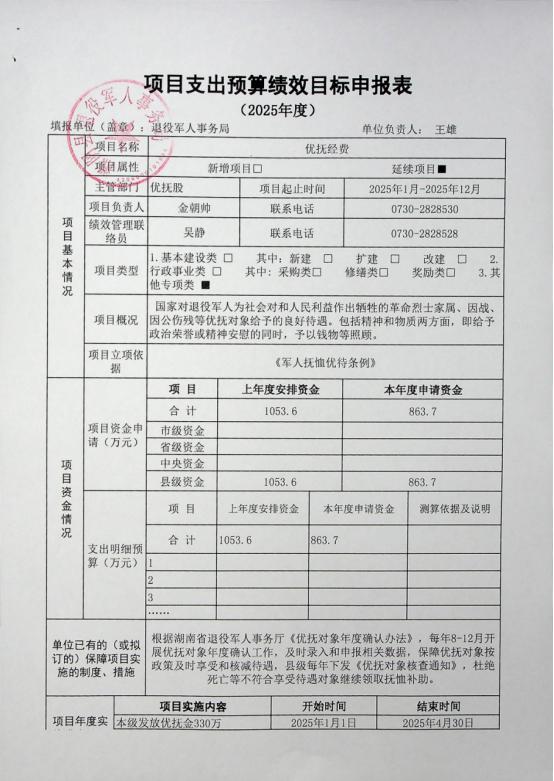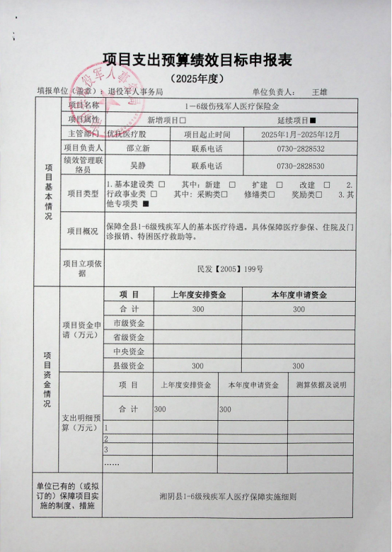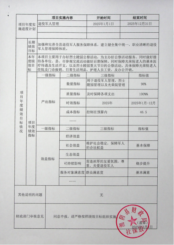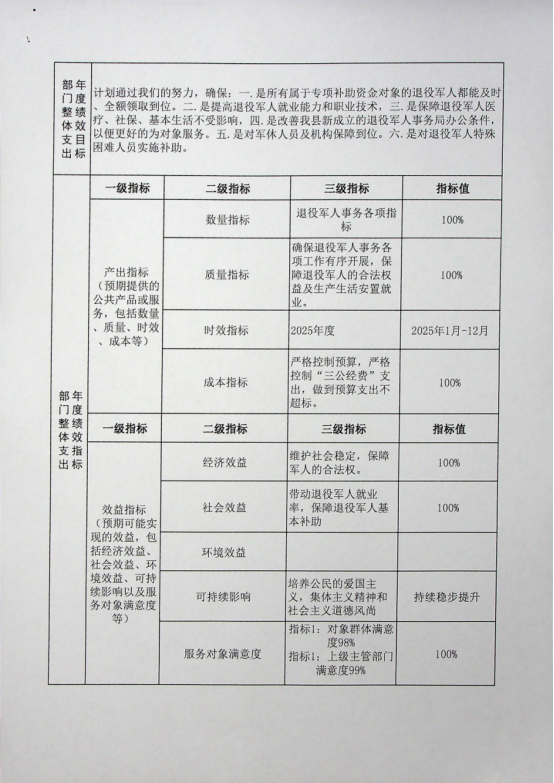 2025年-湘阴县退役军人事务局-预算绩效目标申报表