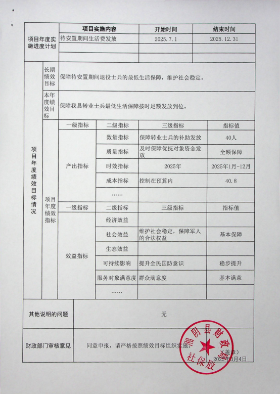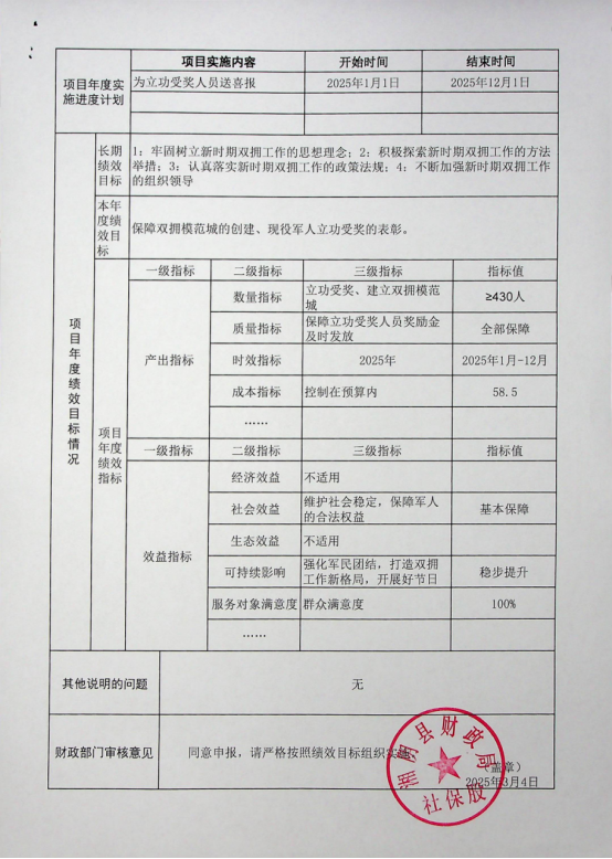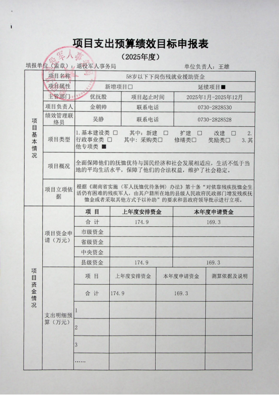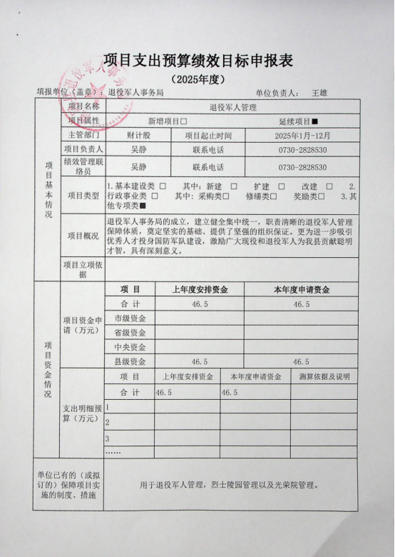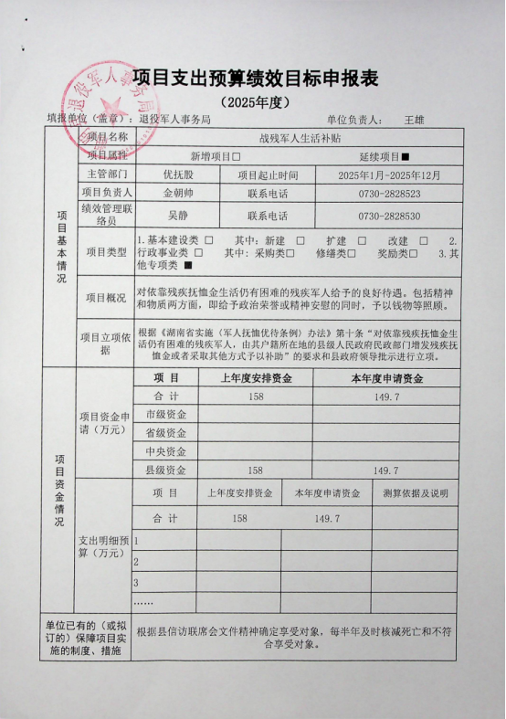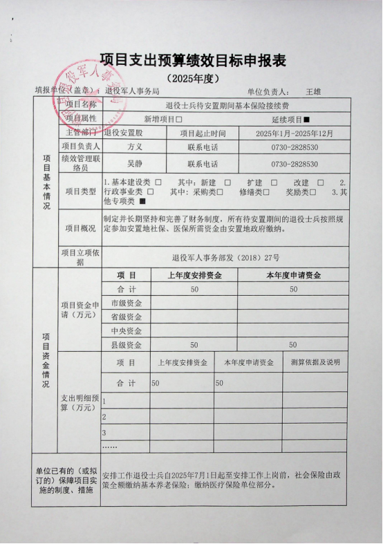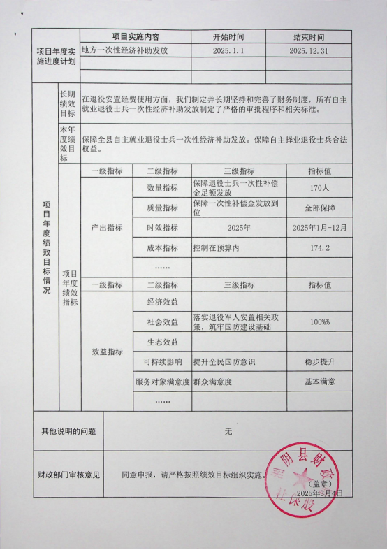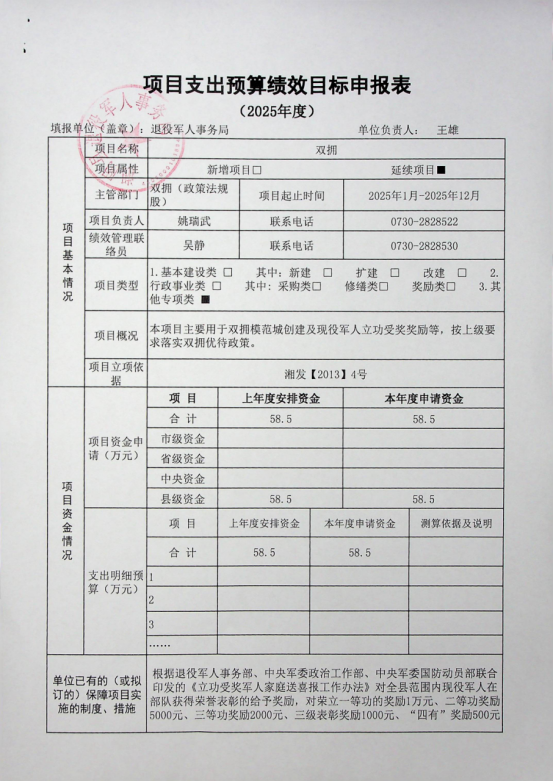 2025年-湘阴县退役军人事务局-预算绩效目标申报表