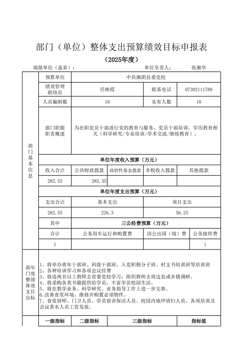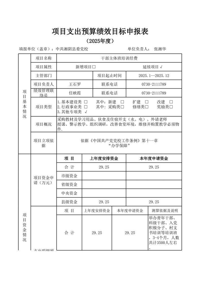 2025年-中共湘阴县委党校-整体及项目支出预算绩效公开