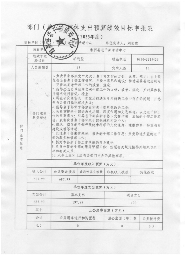 2025年-老干部活动中心-整体支出预算绩效目标申报表