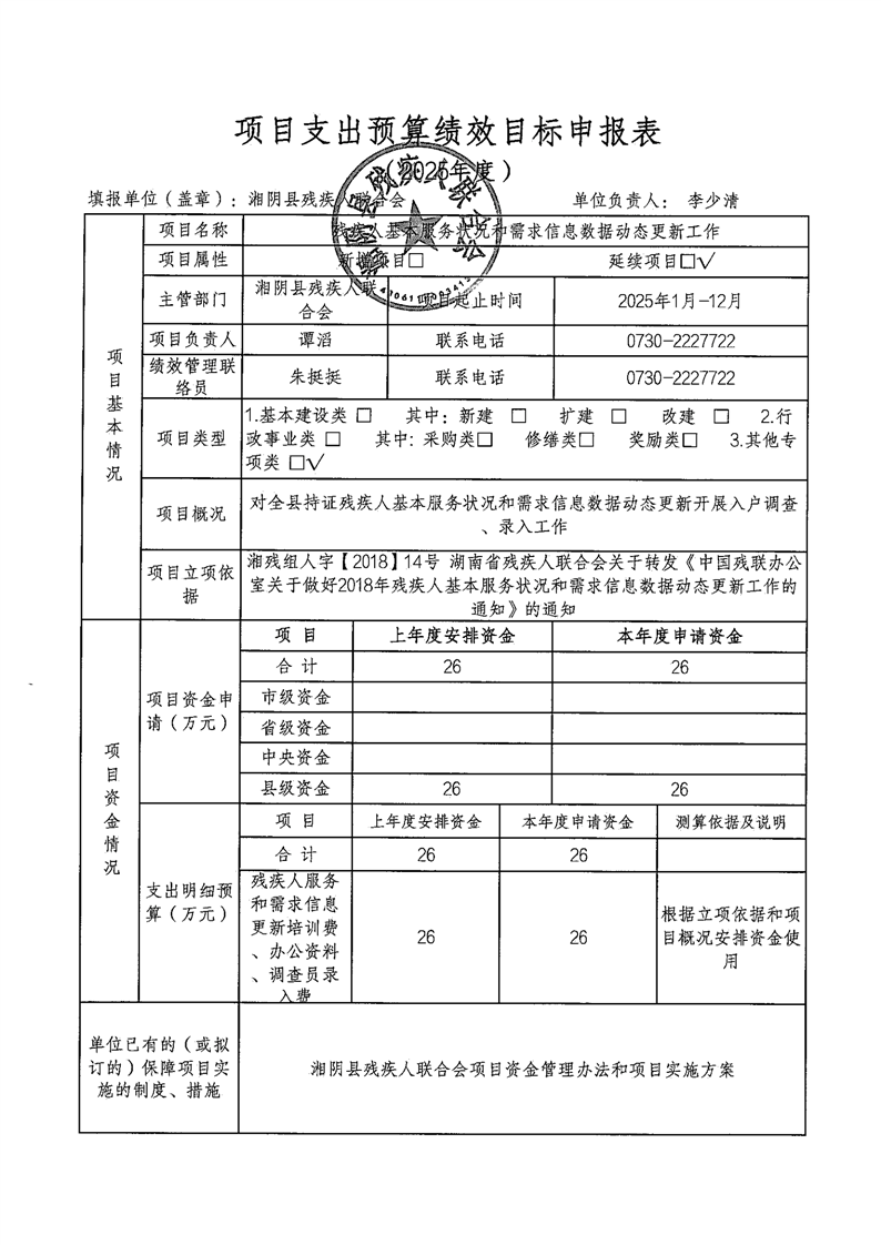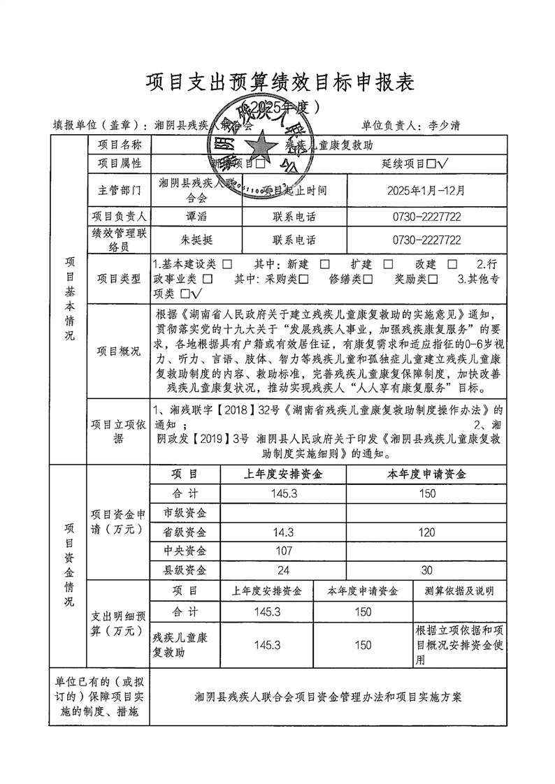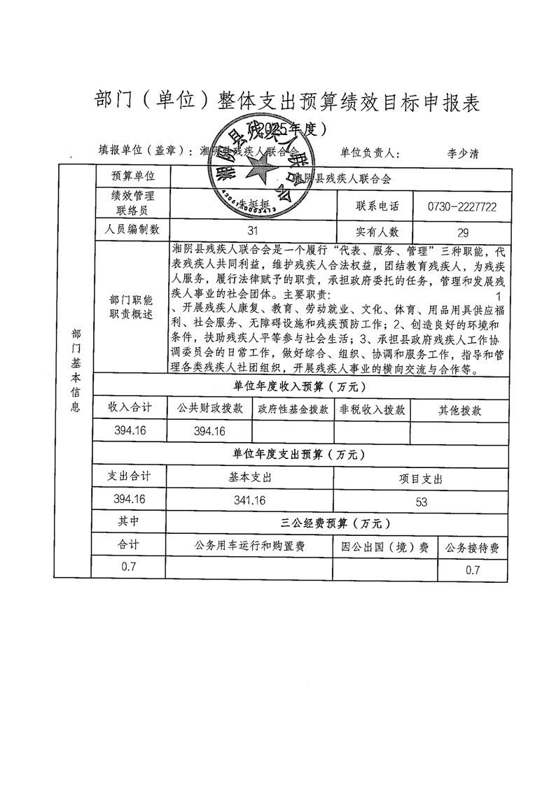2025年-湘阴县残疾人联合会-预算绩效公开