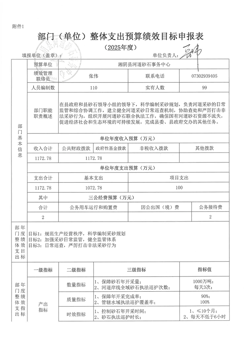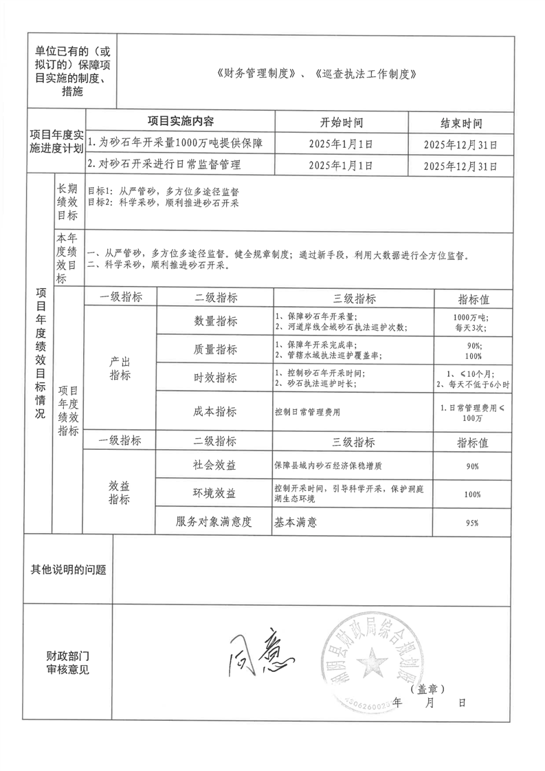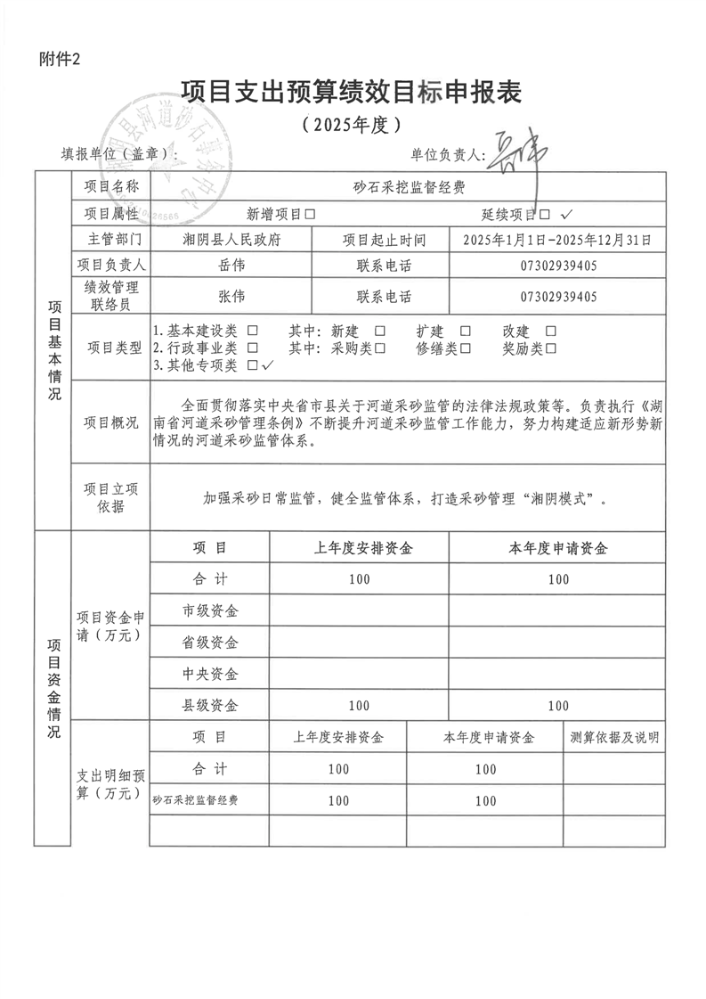 2025年-湘阴县河道砂石事务中心-绩效目标申报表公开