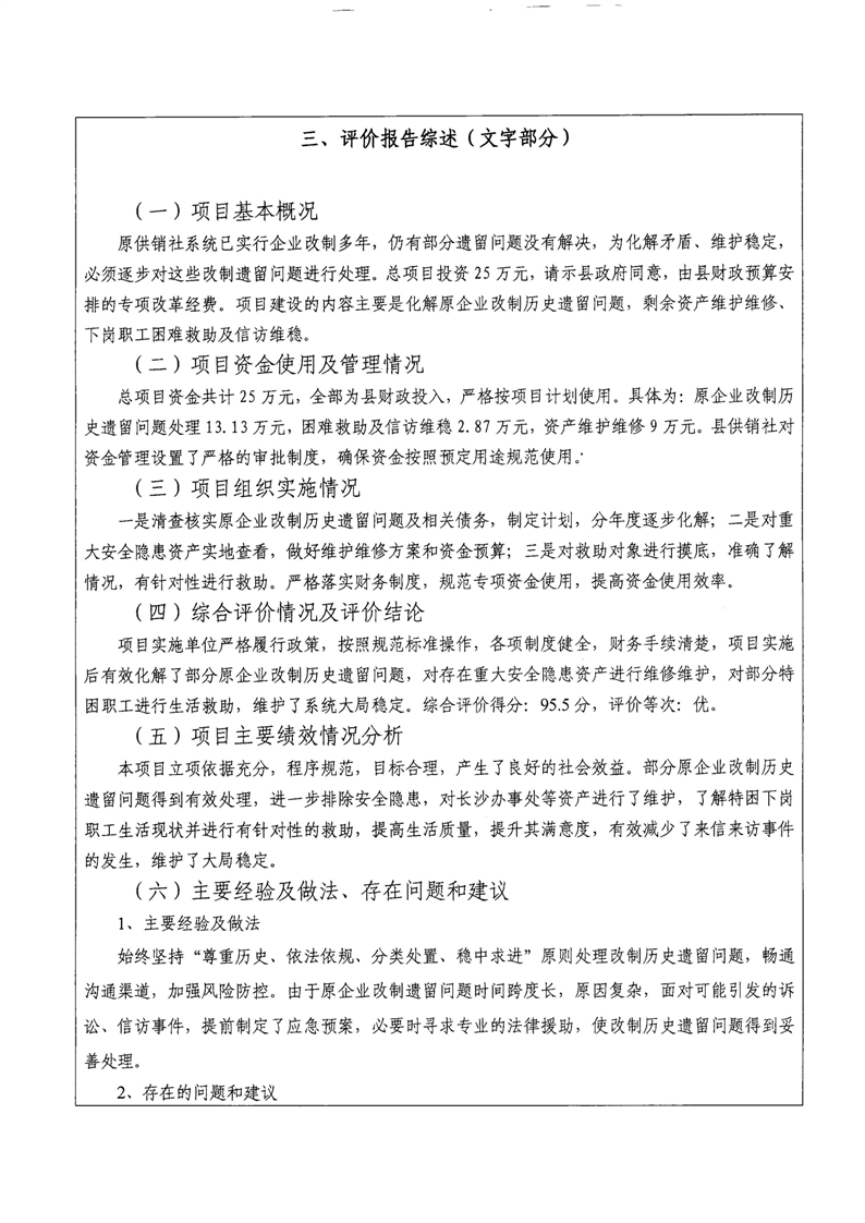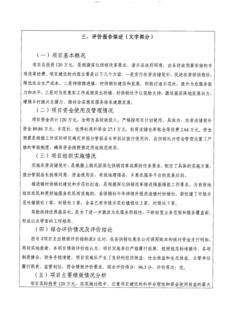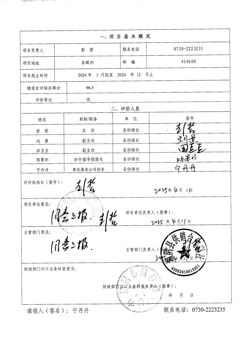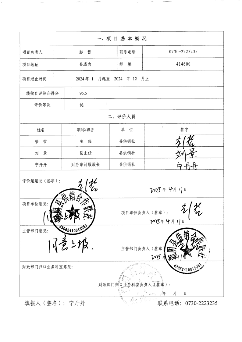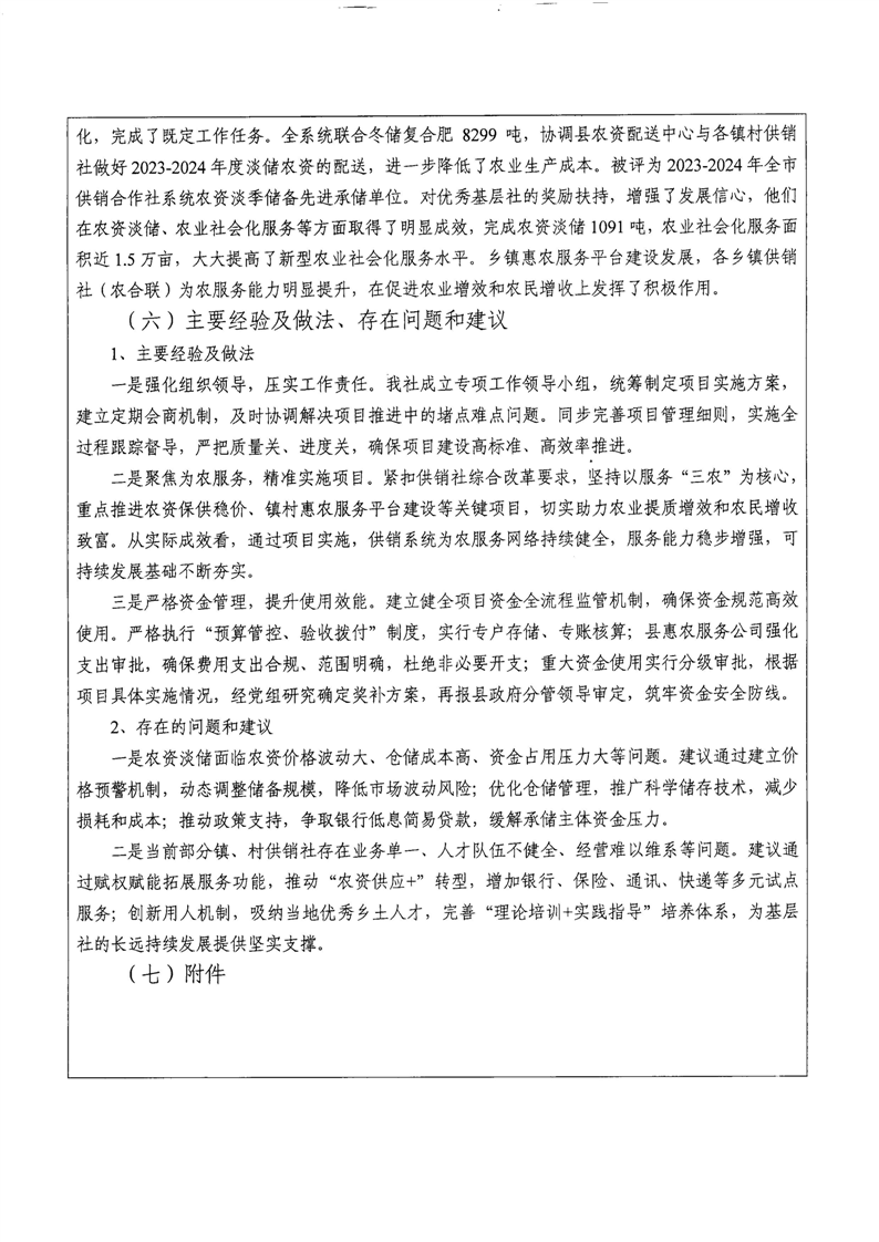 湘阴县供销合作联社2024年整体支出及项目支出绩效自评报告