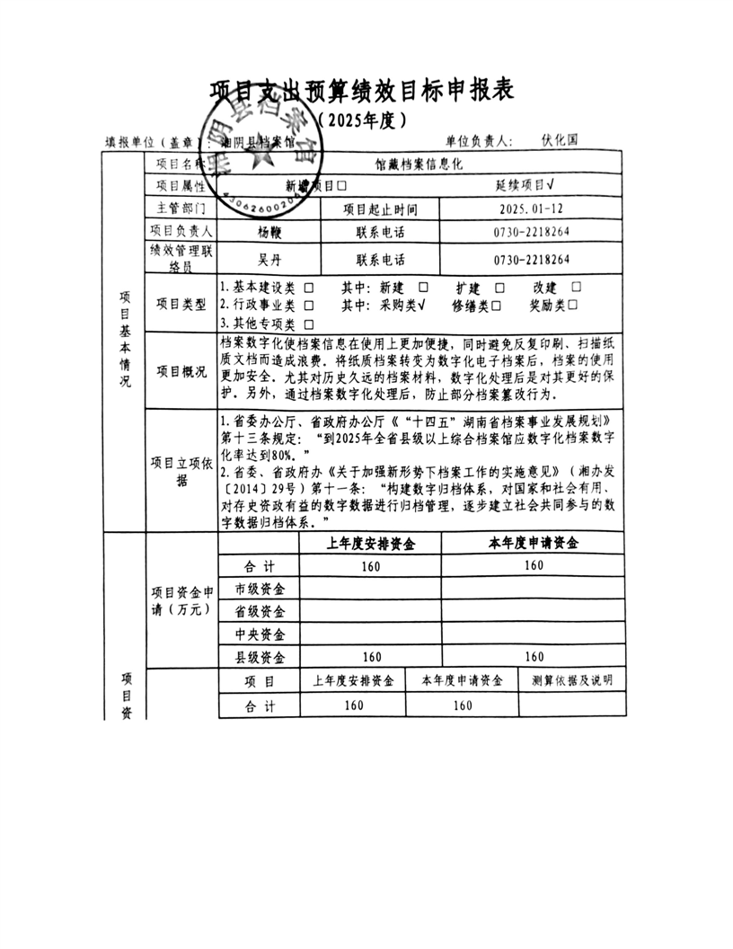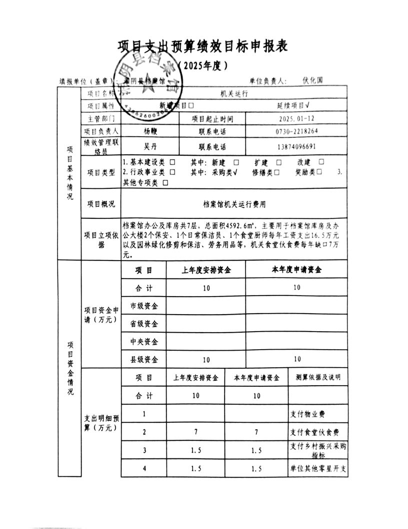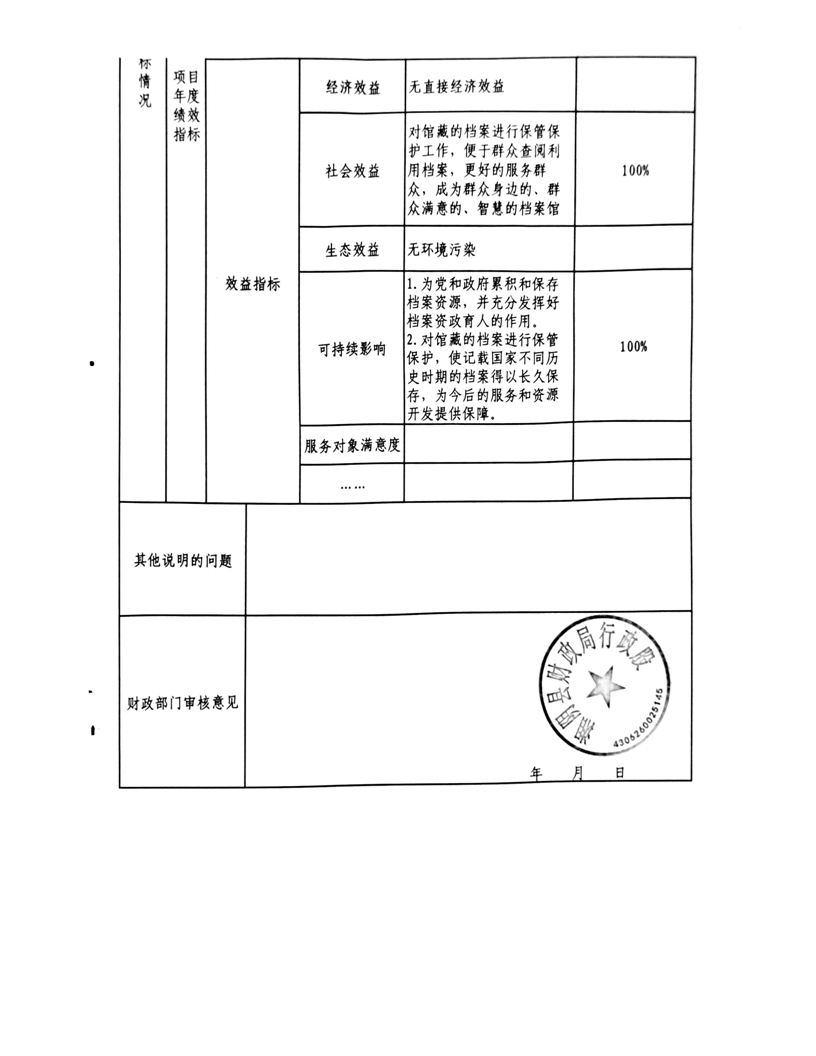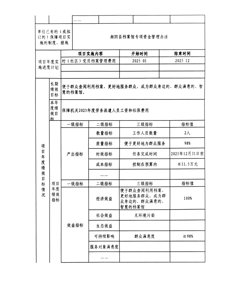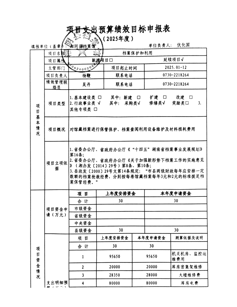 2025年-湘阴县档案馆-整体、项目支出预算绩效目标申报表