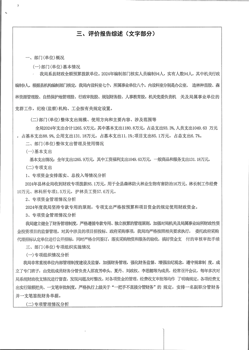 2024年度-湘阴县林业局-整体支出绩效评价自评报告