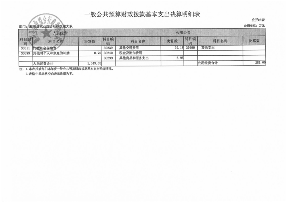 2024年度湘阴县农业综合行政执法大队-部门决算