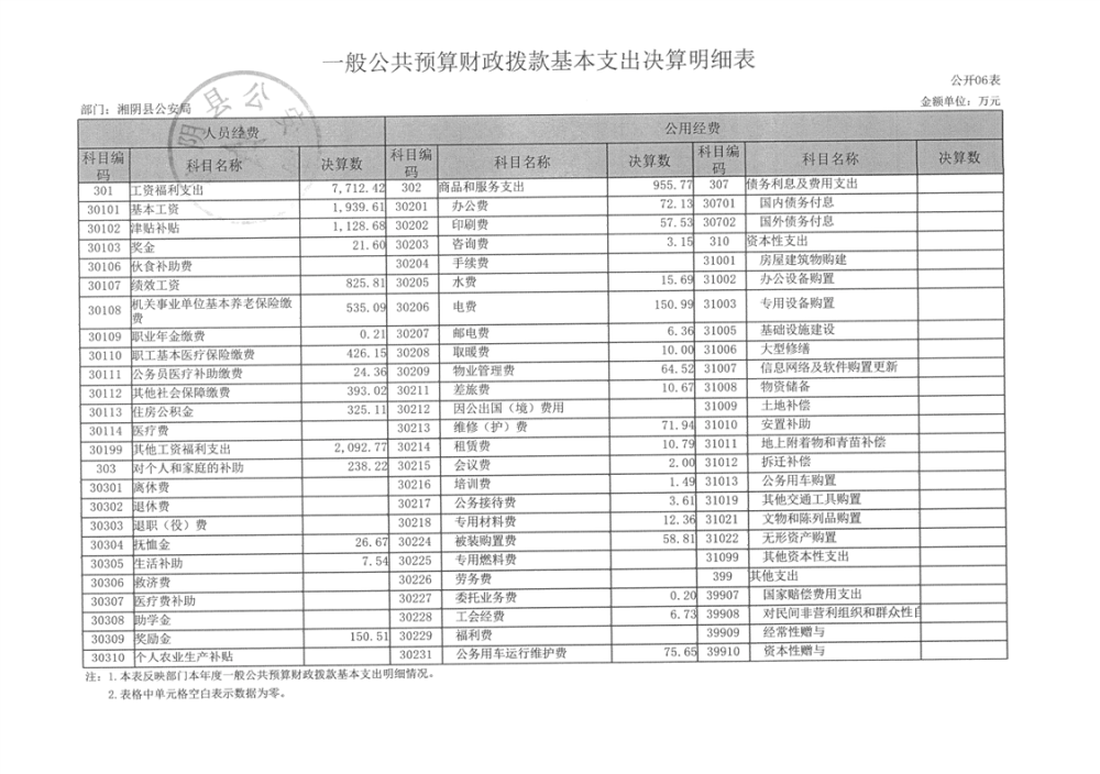 2024年度-湘阴县公安局-决算公开