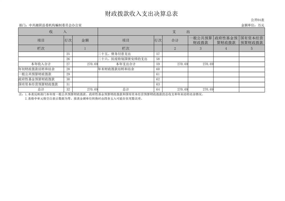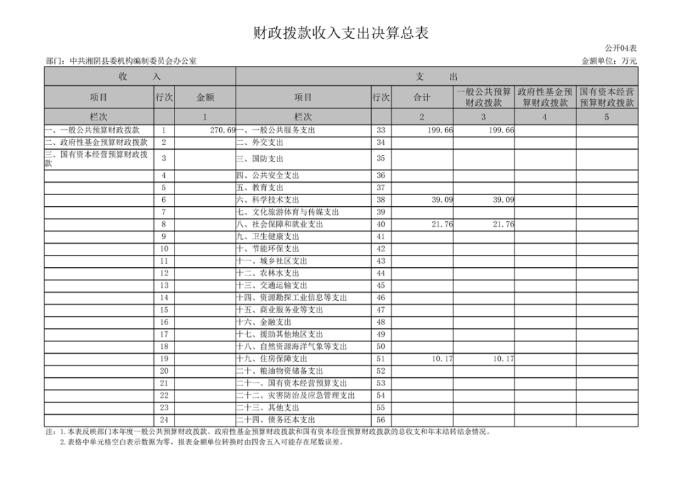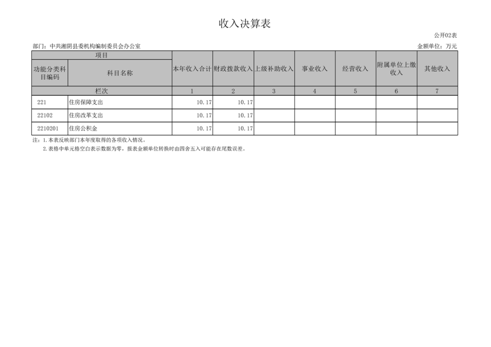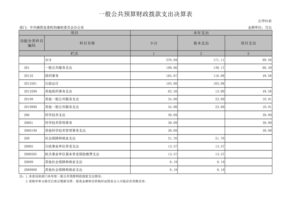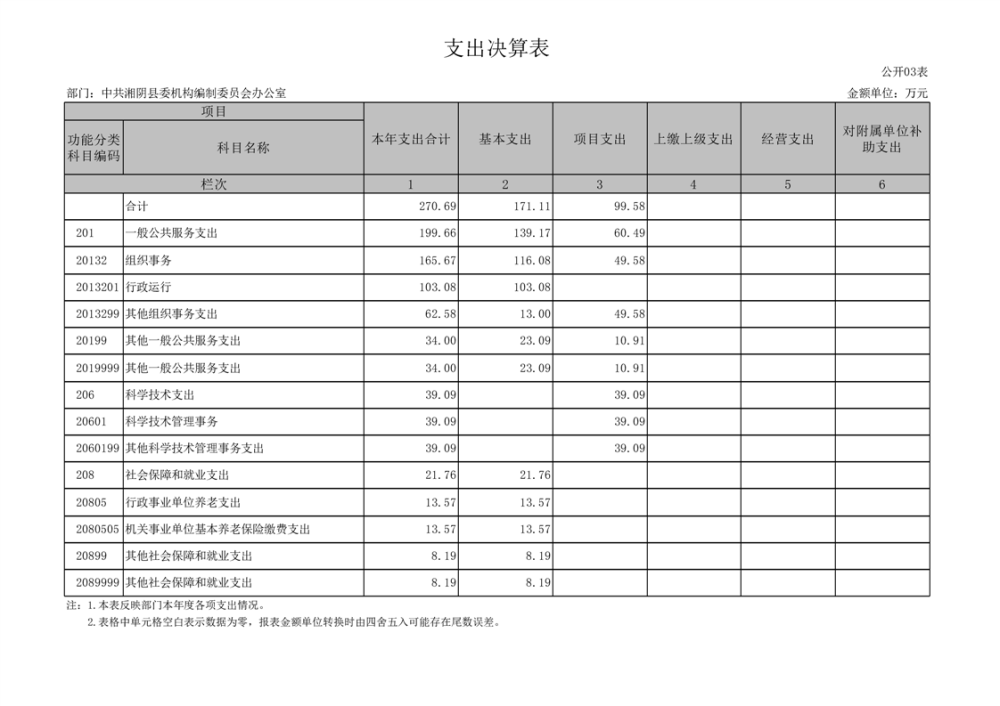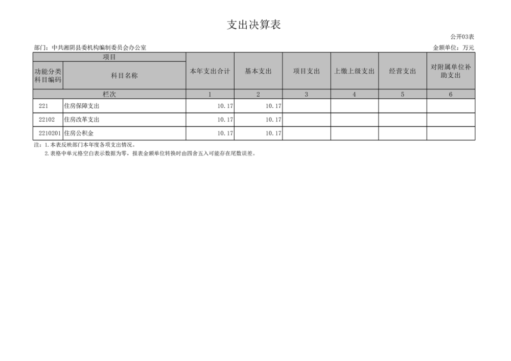 2023年-中共湘阴县委机构编制委员会办公室-部门决算公开