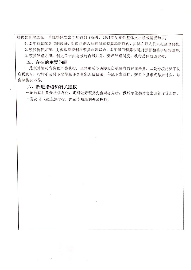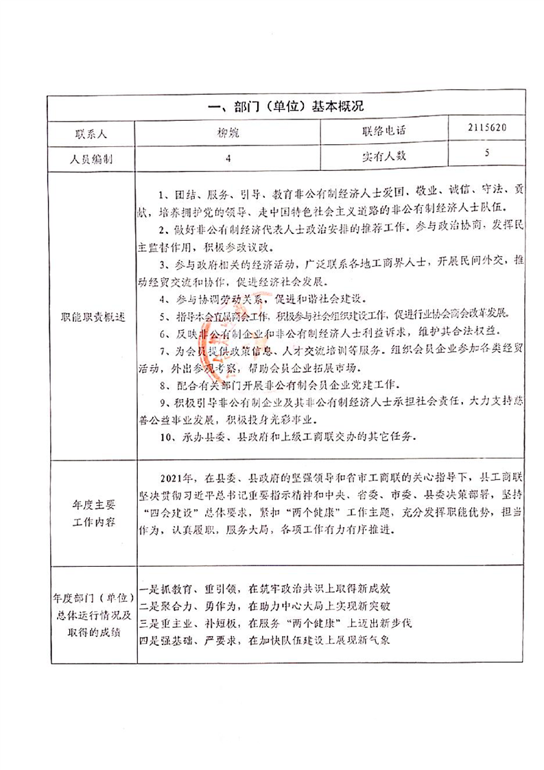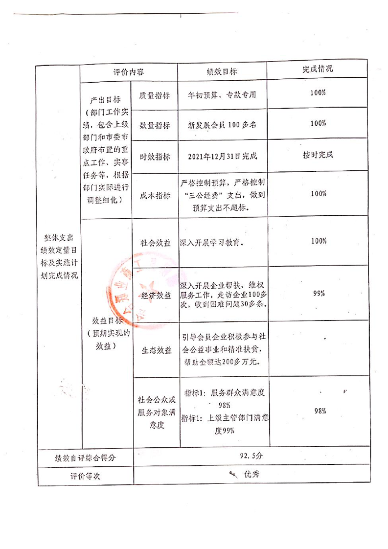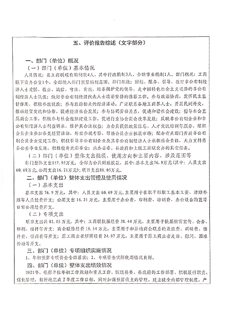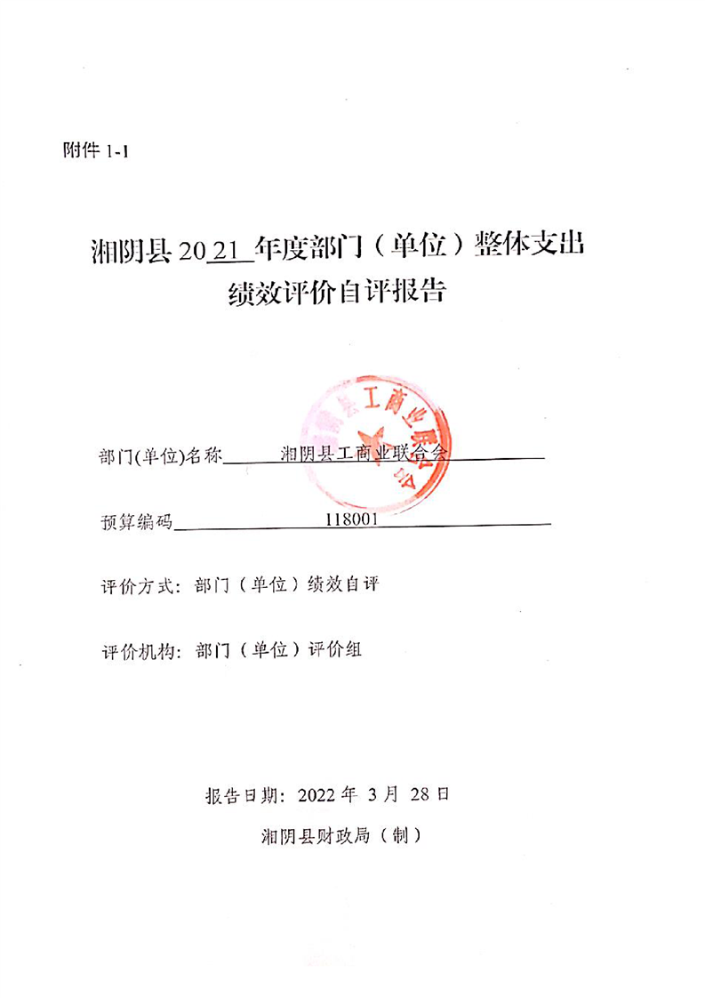 湘阴县工商联2021年度财政支出绩效评价自评报告