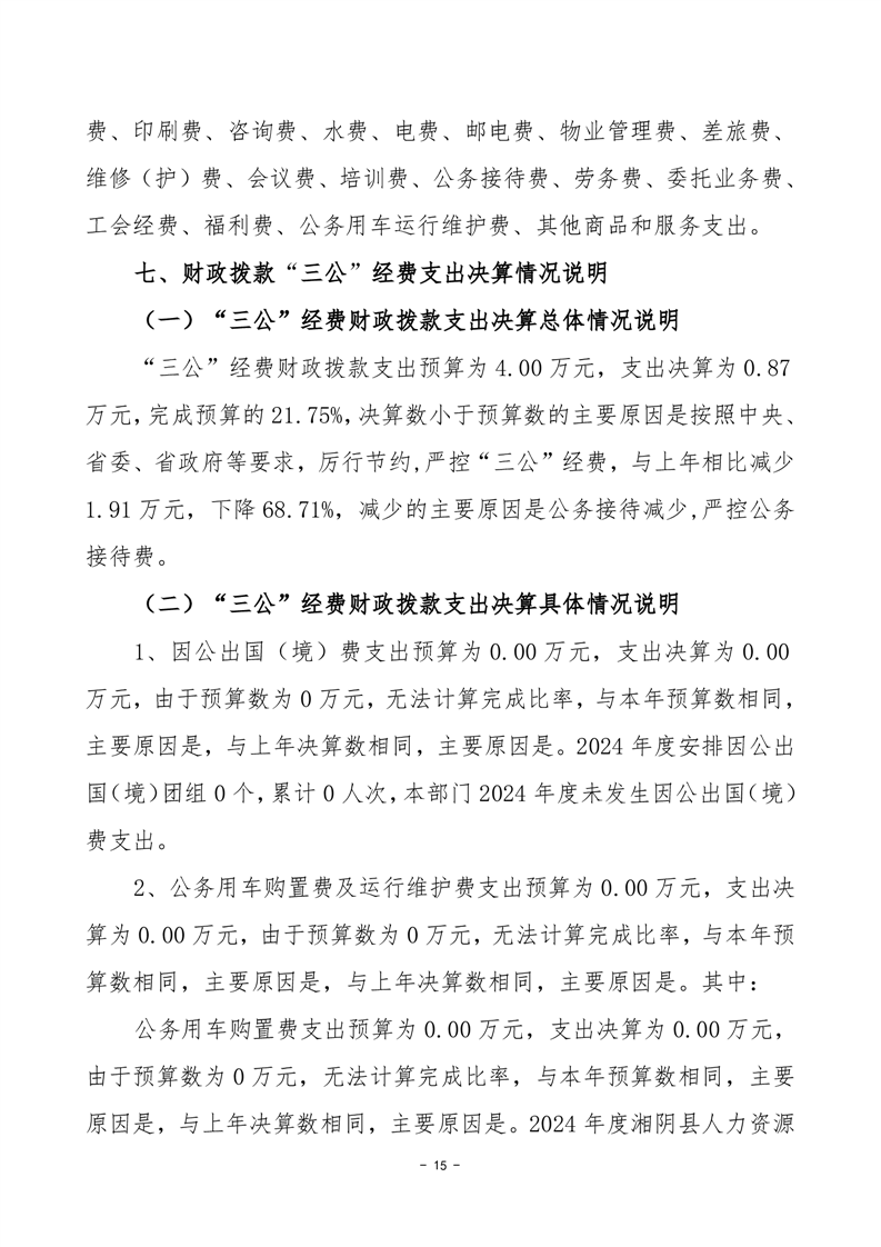 2024年度-湘阴县人力资源和社会保障局-决算公开