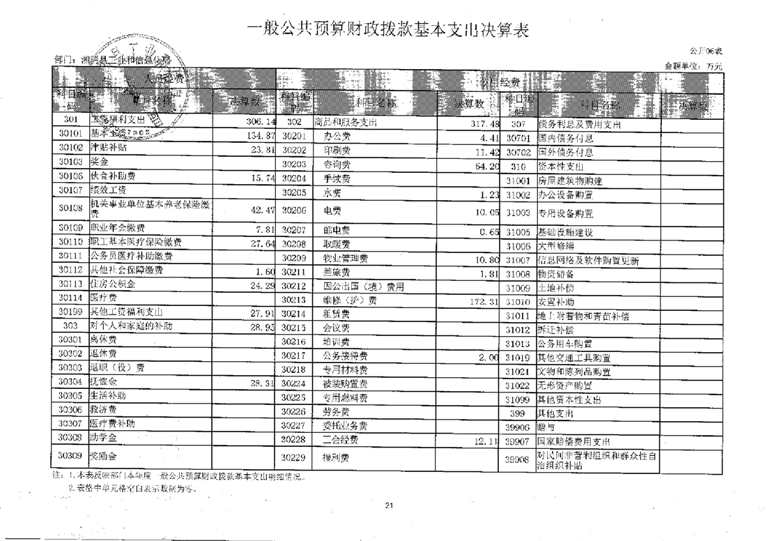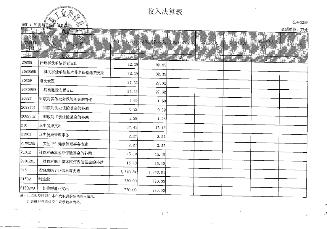 2021年度湘阴县工业和信息化局部门决算