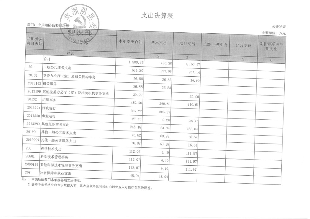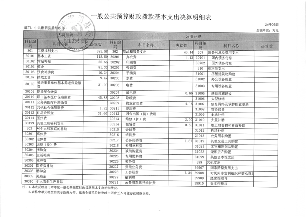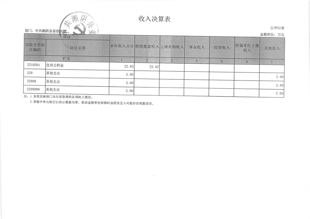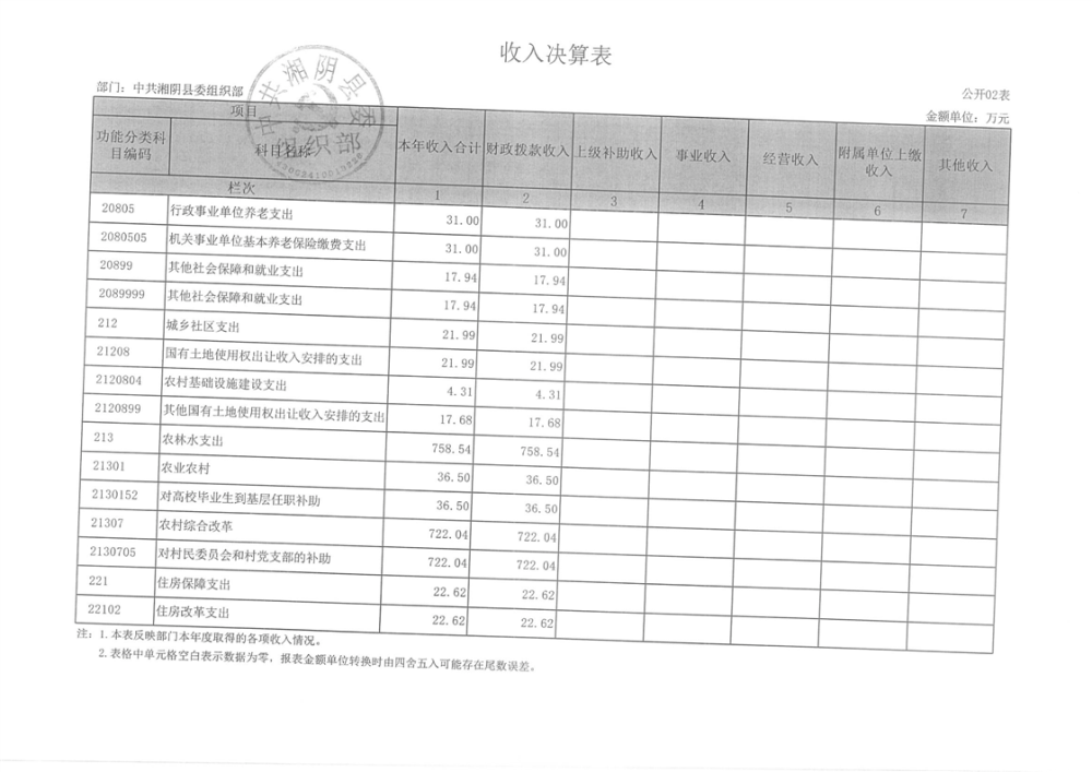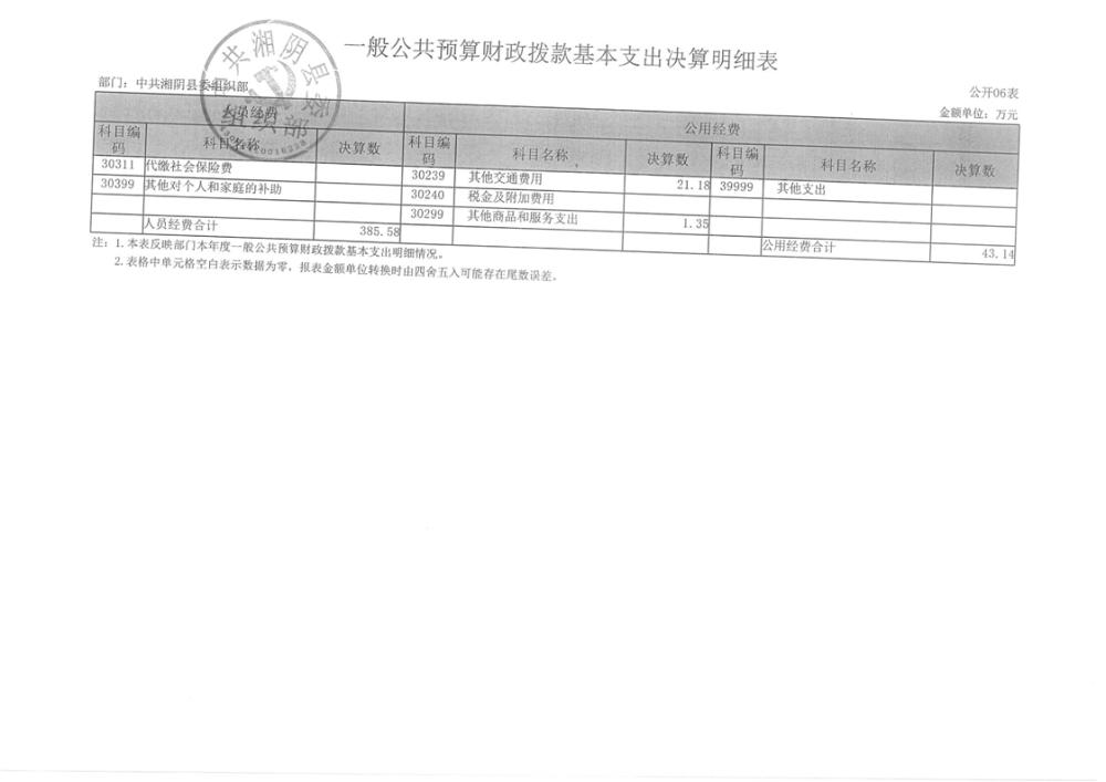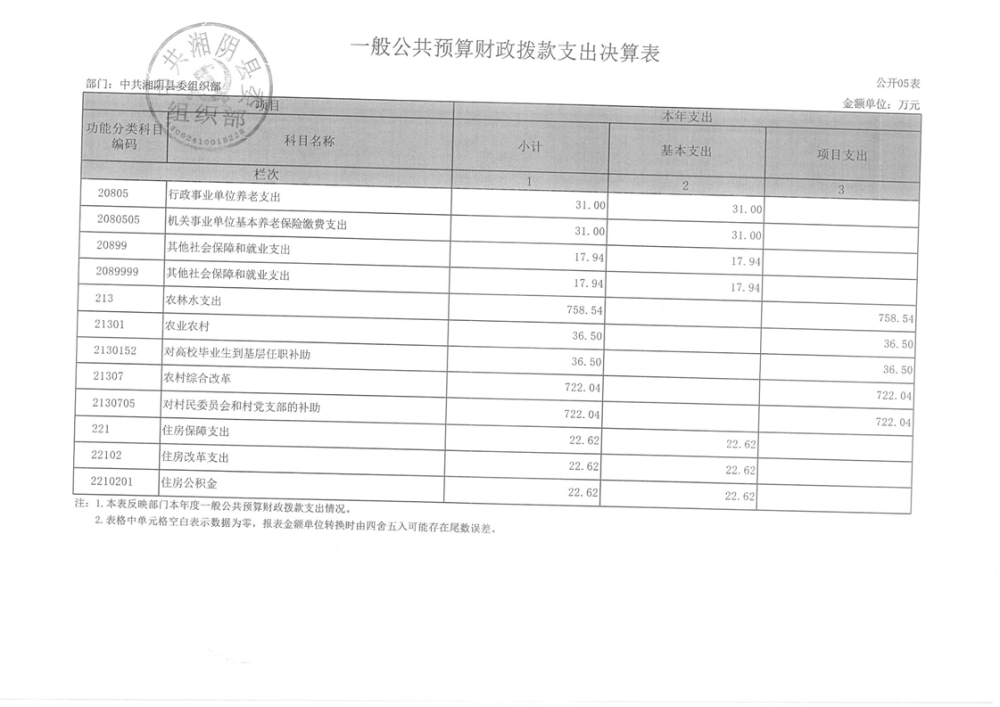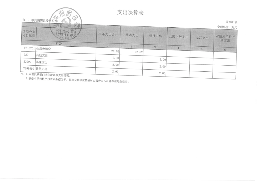 2023年-中共湘阴县委组织部-决算公开