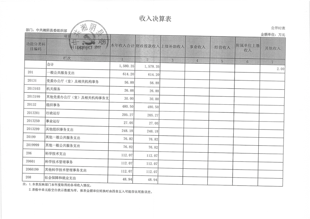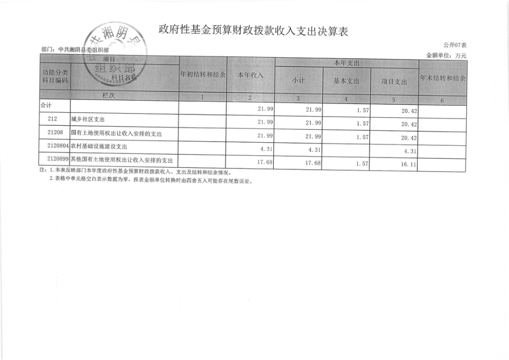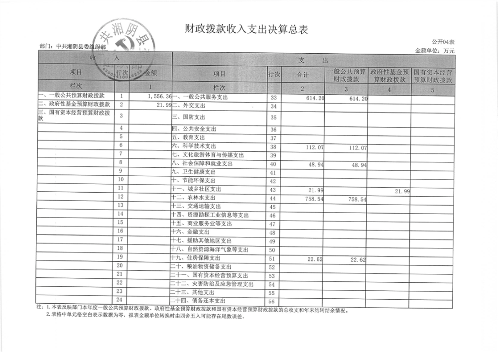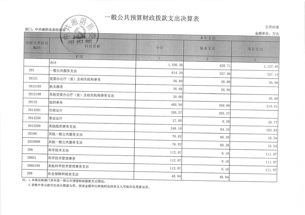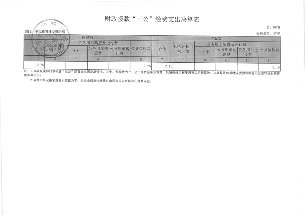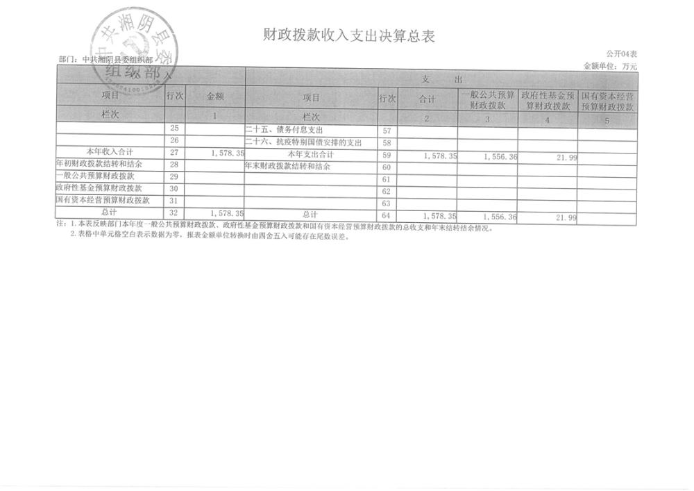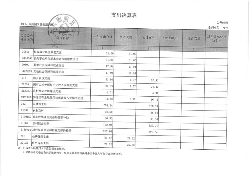 2023年-中共湘阴县委组织部-决算公开
