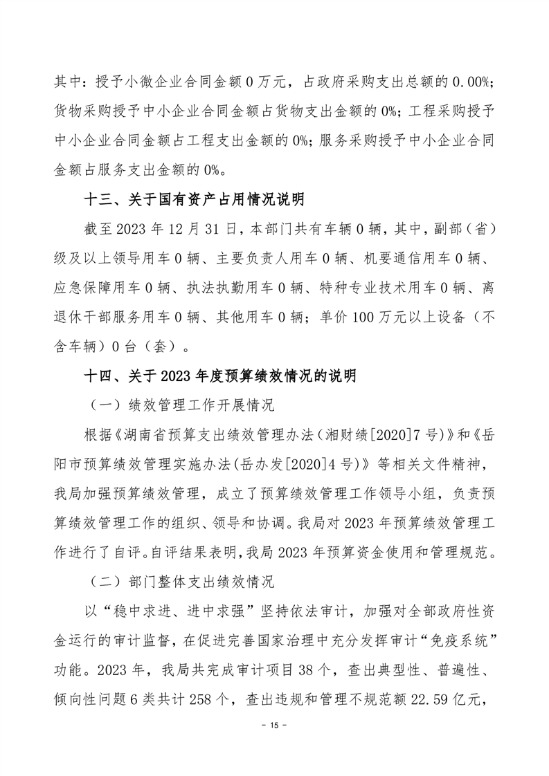 湘阴县审计局-2023年决算公开
