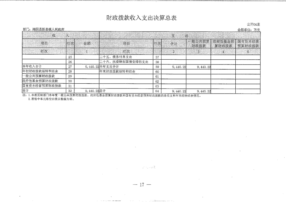 2024年度-湘阴县新泉镇人民政府-决算公开
